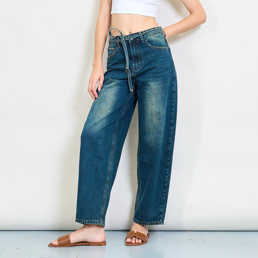 Paperas taille tie-up ontspannen spijkerbroek groothandel