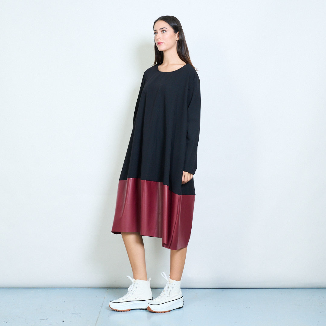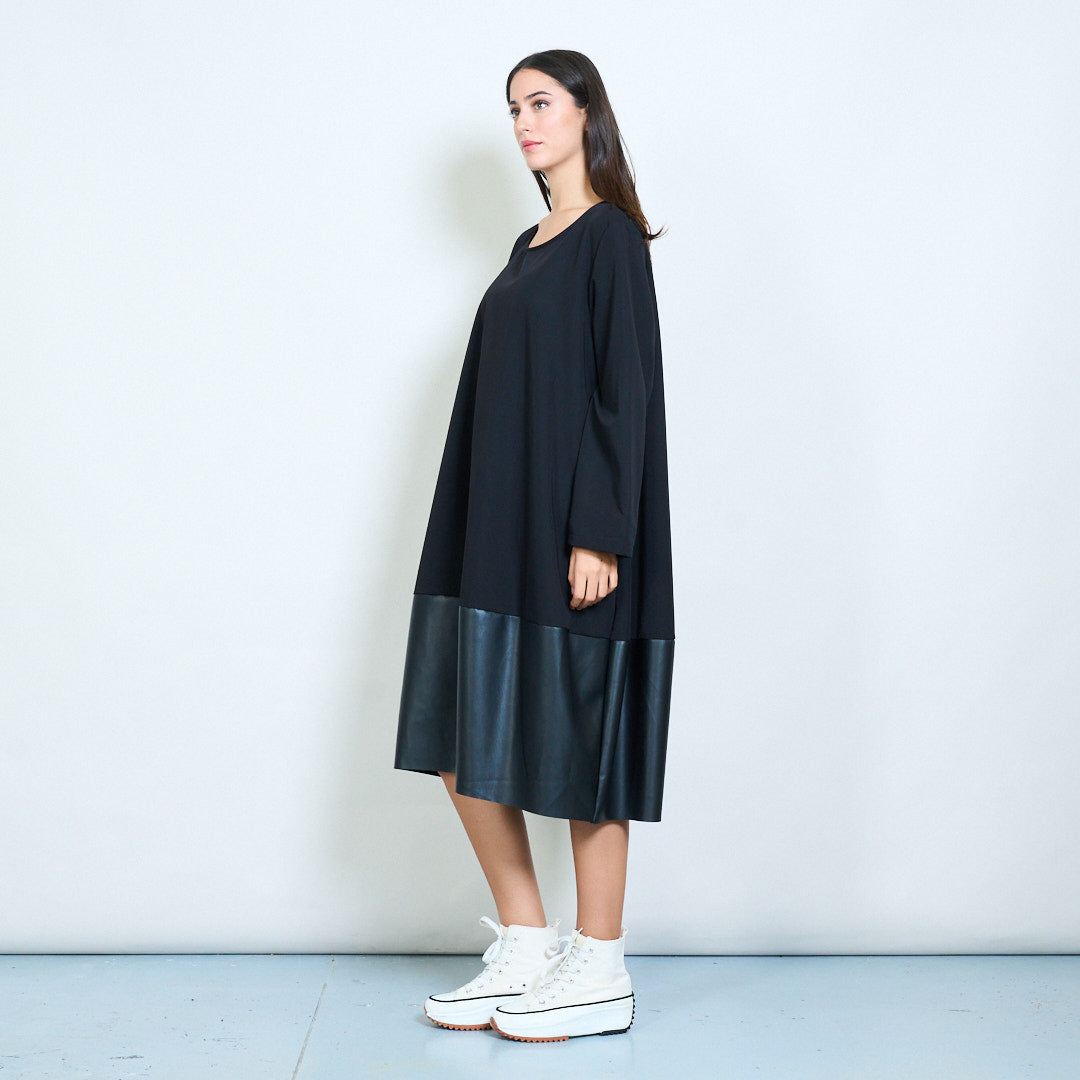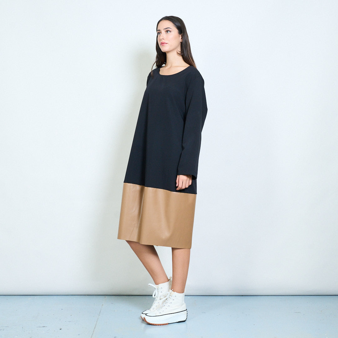 Groothandel losvallende jurk met golvende zoom en contrasterend paneel