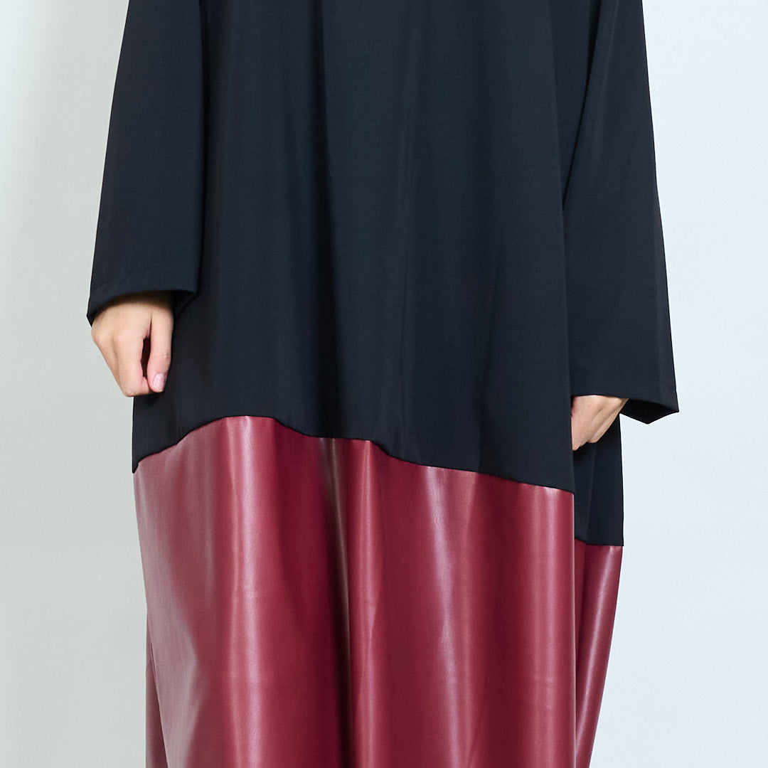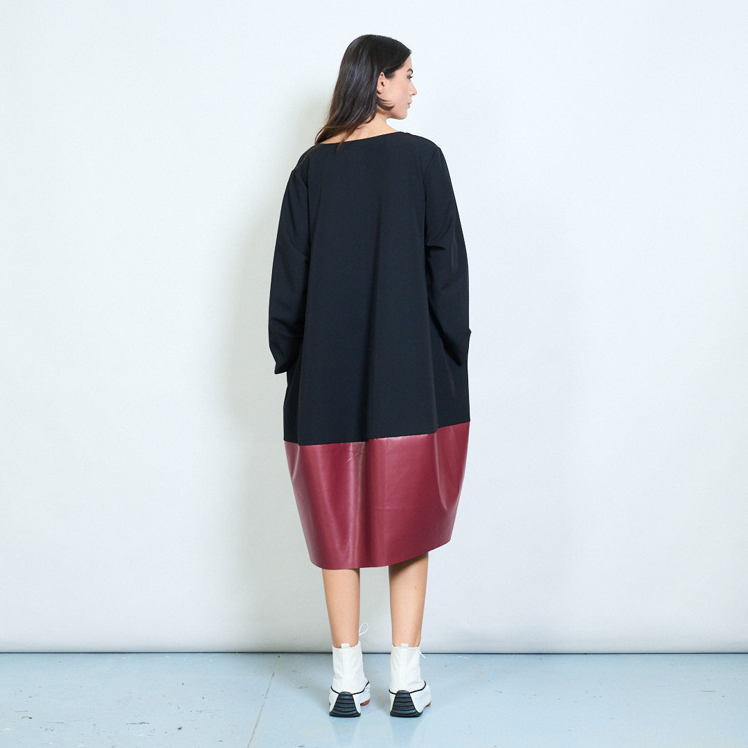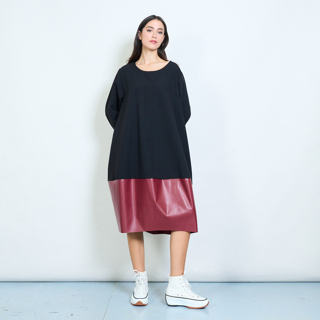 Groothandel losvallende jurk met golvende zoom en contrasterend paneel