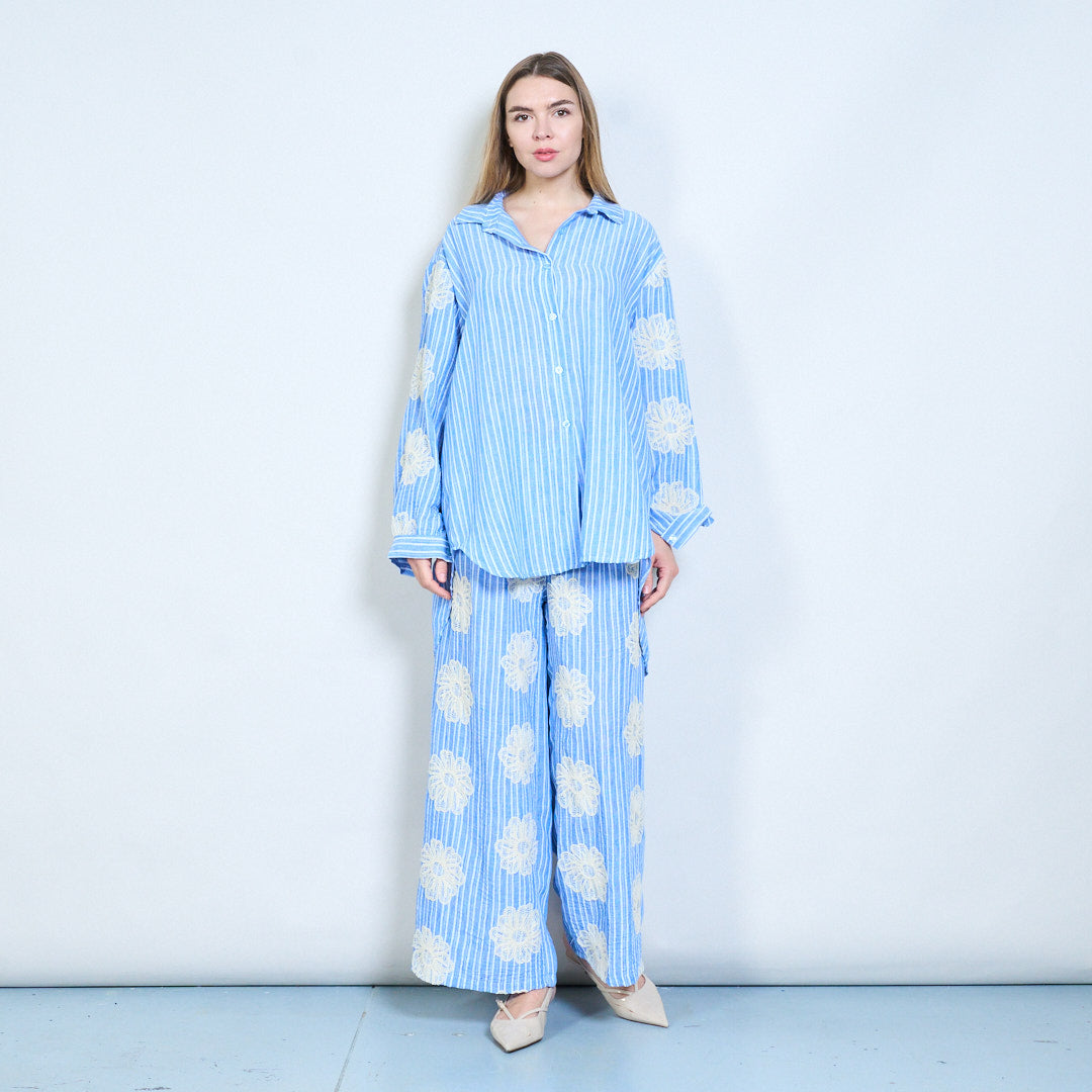 - All-over gestreept patroon, aangevuld met delicaat bloemenborduurwerk voor extra detail