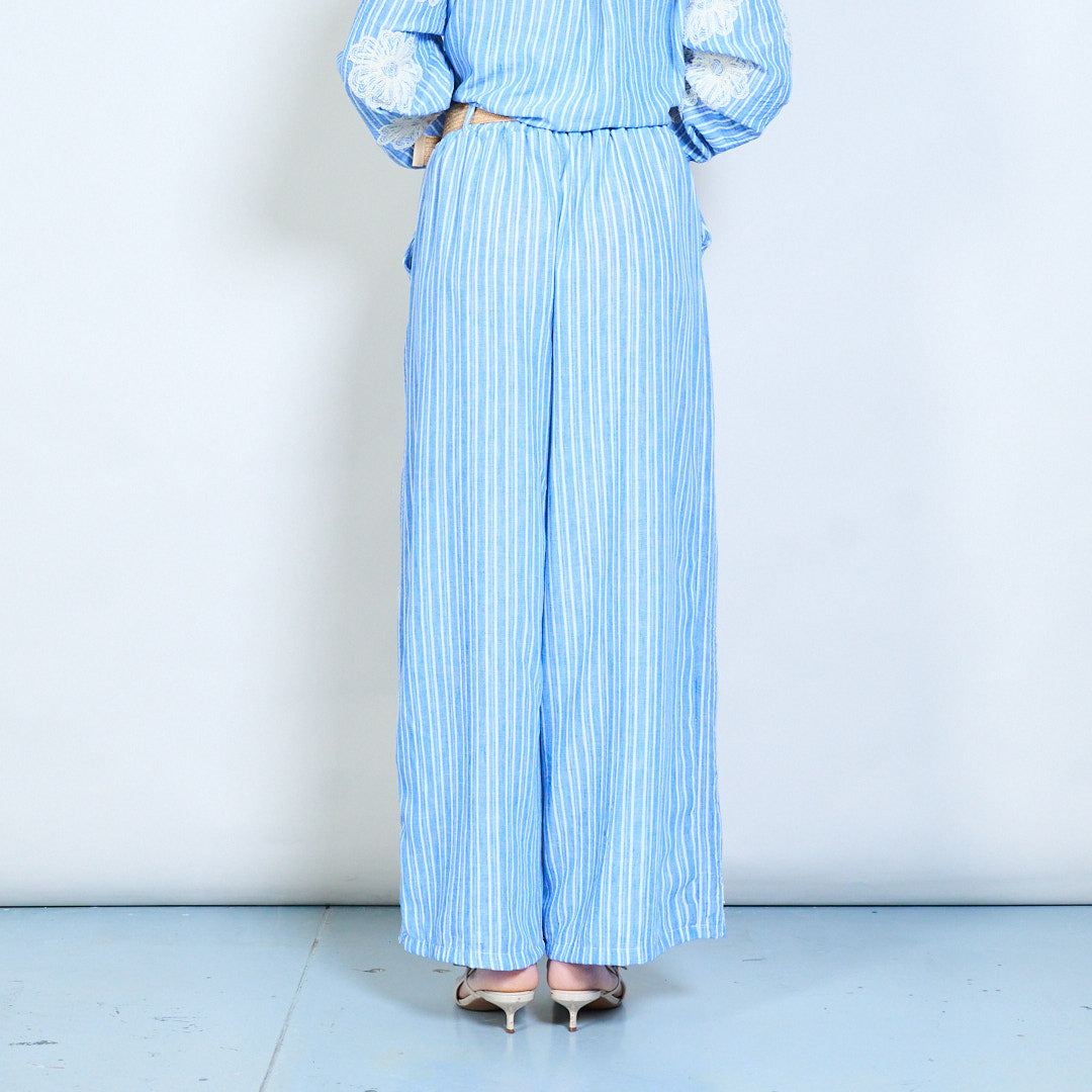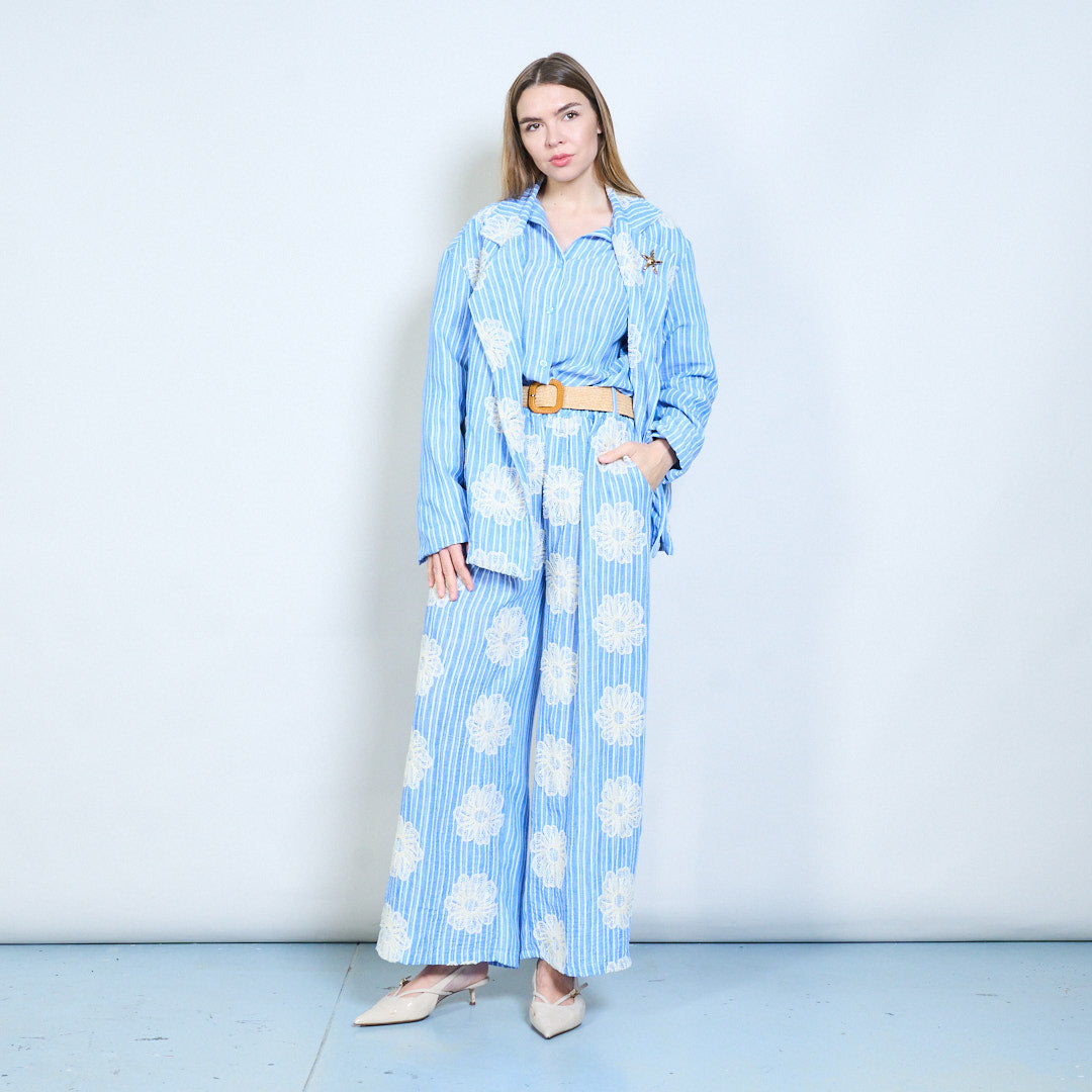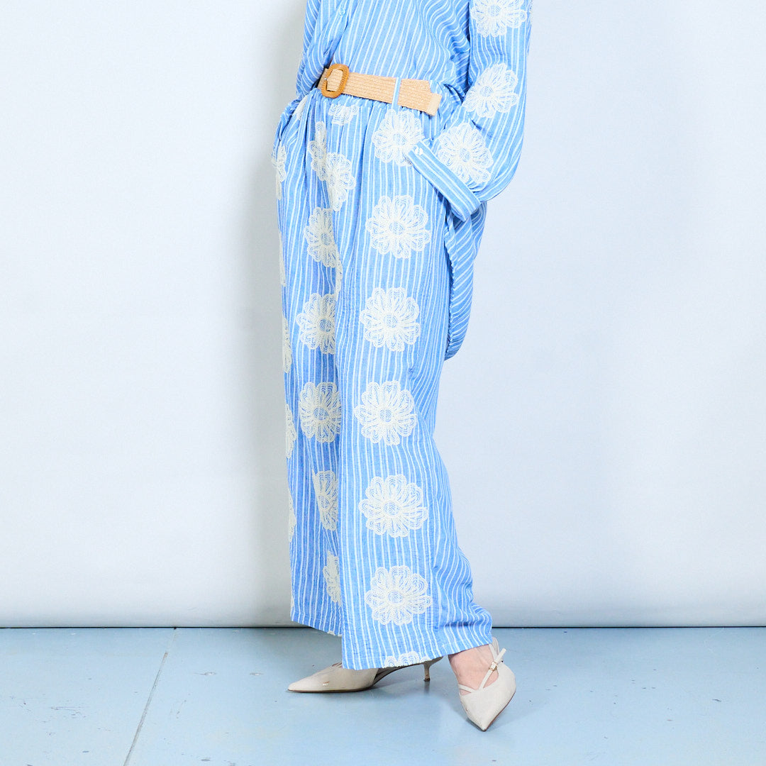 Gestreepte bloemen geborduurde zwierige broeken met wijde pijpen groothandel