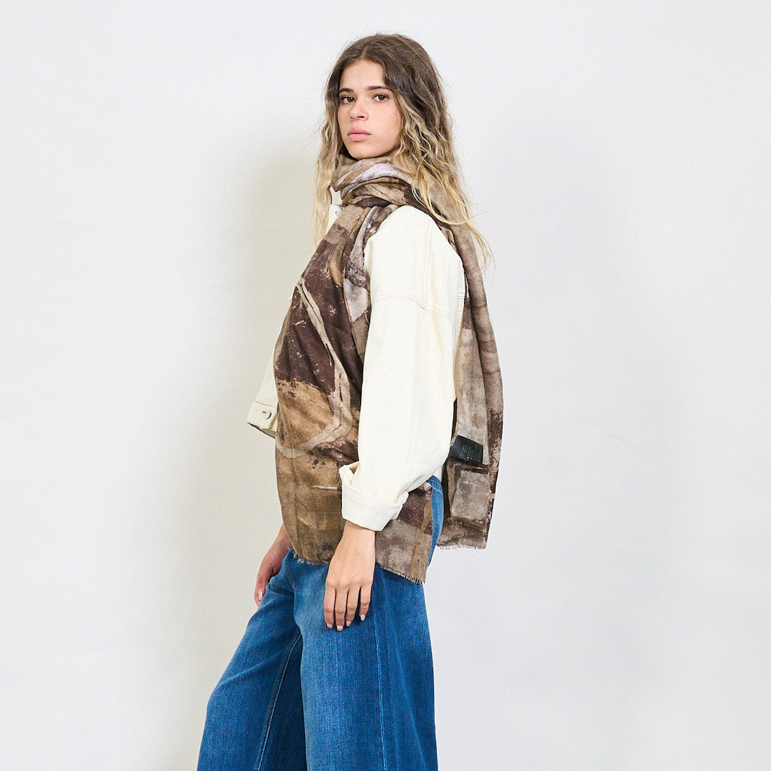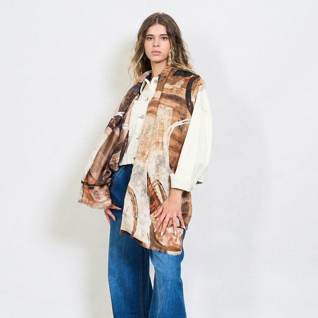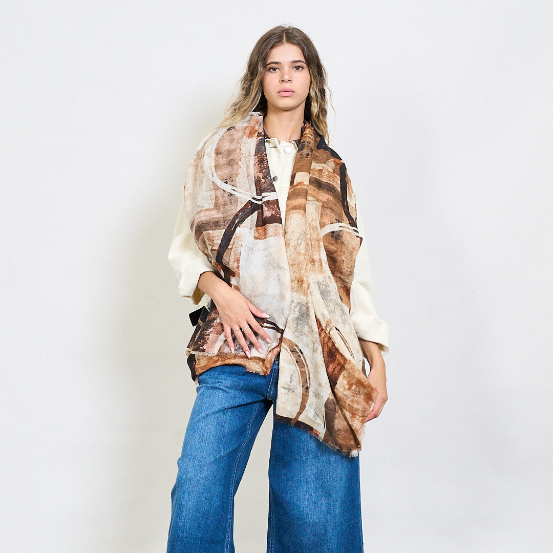 Aarde toon abstracte wasafdruk sjaalgroothandel