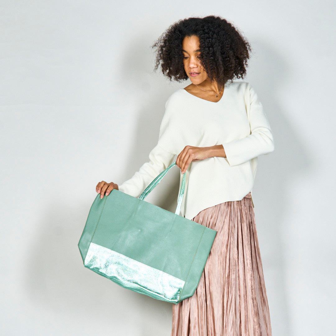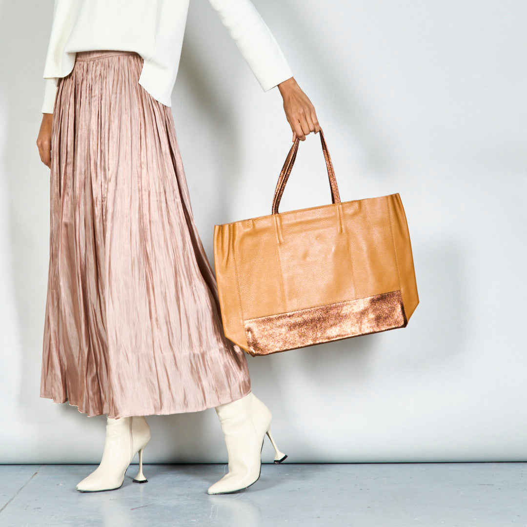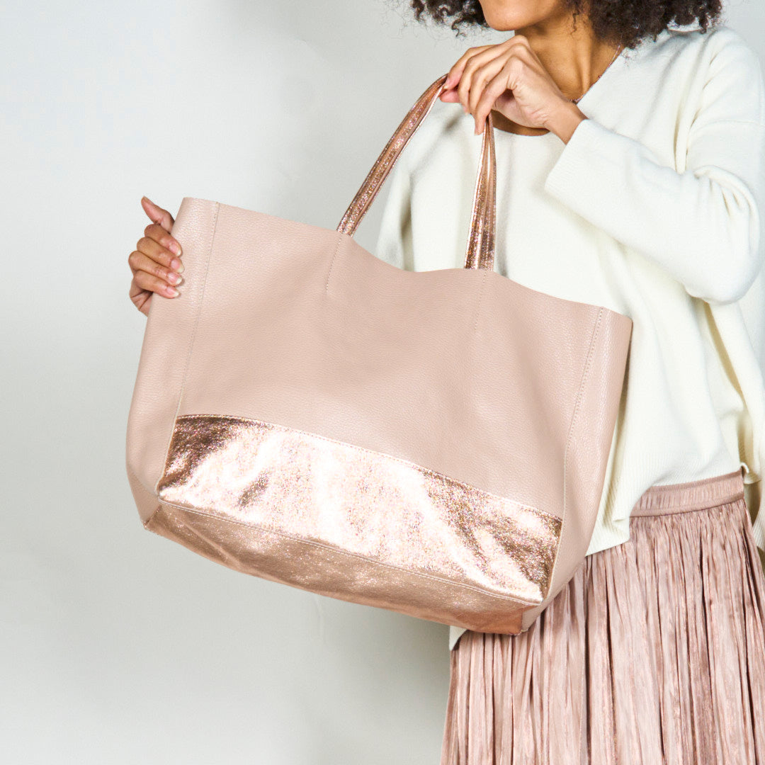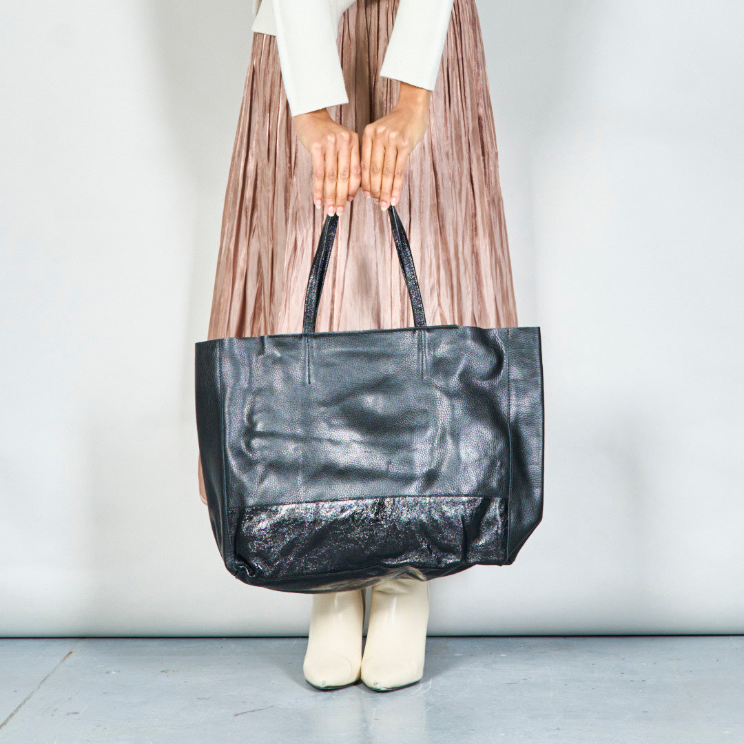 Elegante tweekleurig draagtas met metalen accenten groothandel