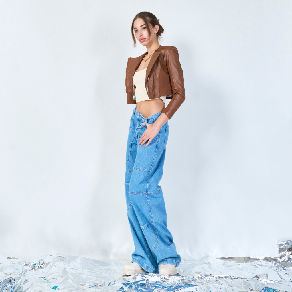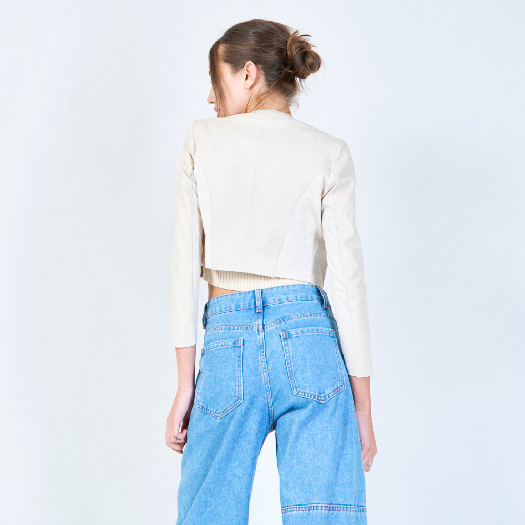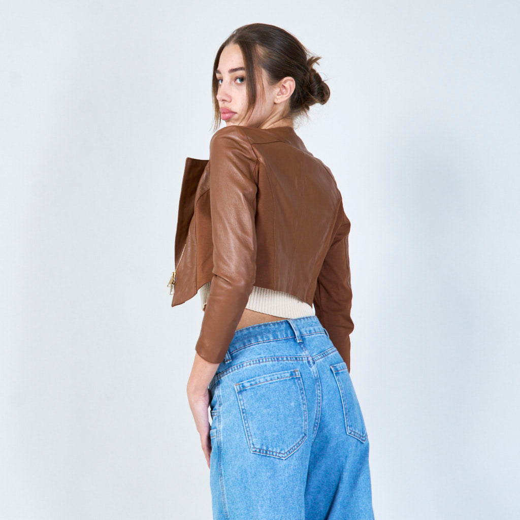 Asymmetrisch bijgesneden lederen jasgroothandel