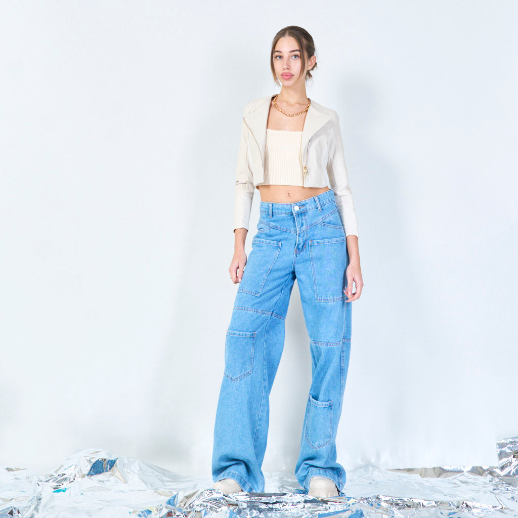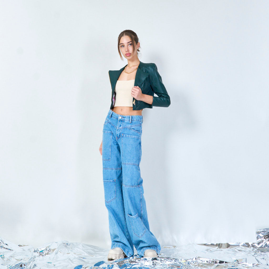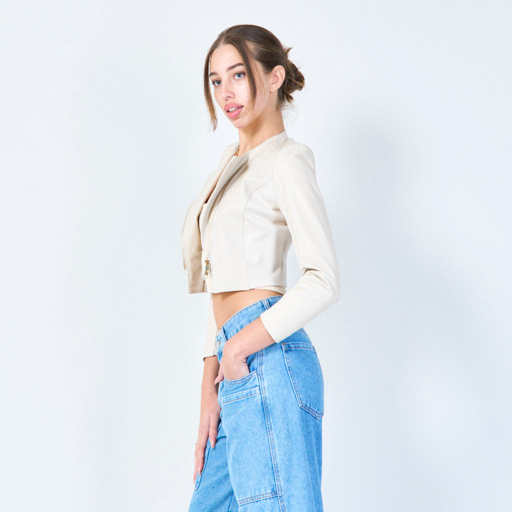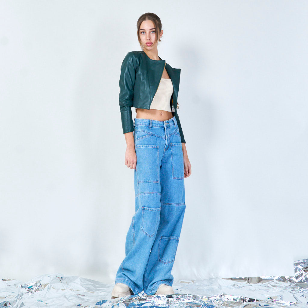Asymmetrisch bijgesneden lederen jasgroothandel