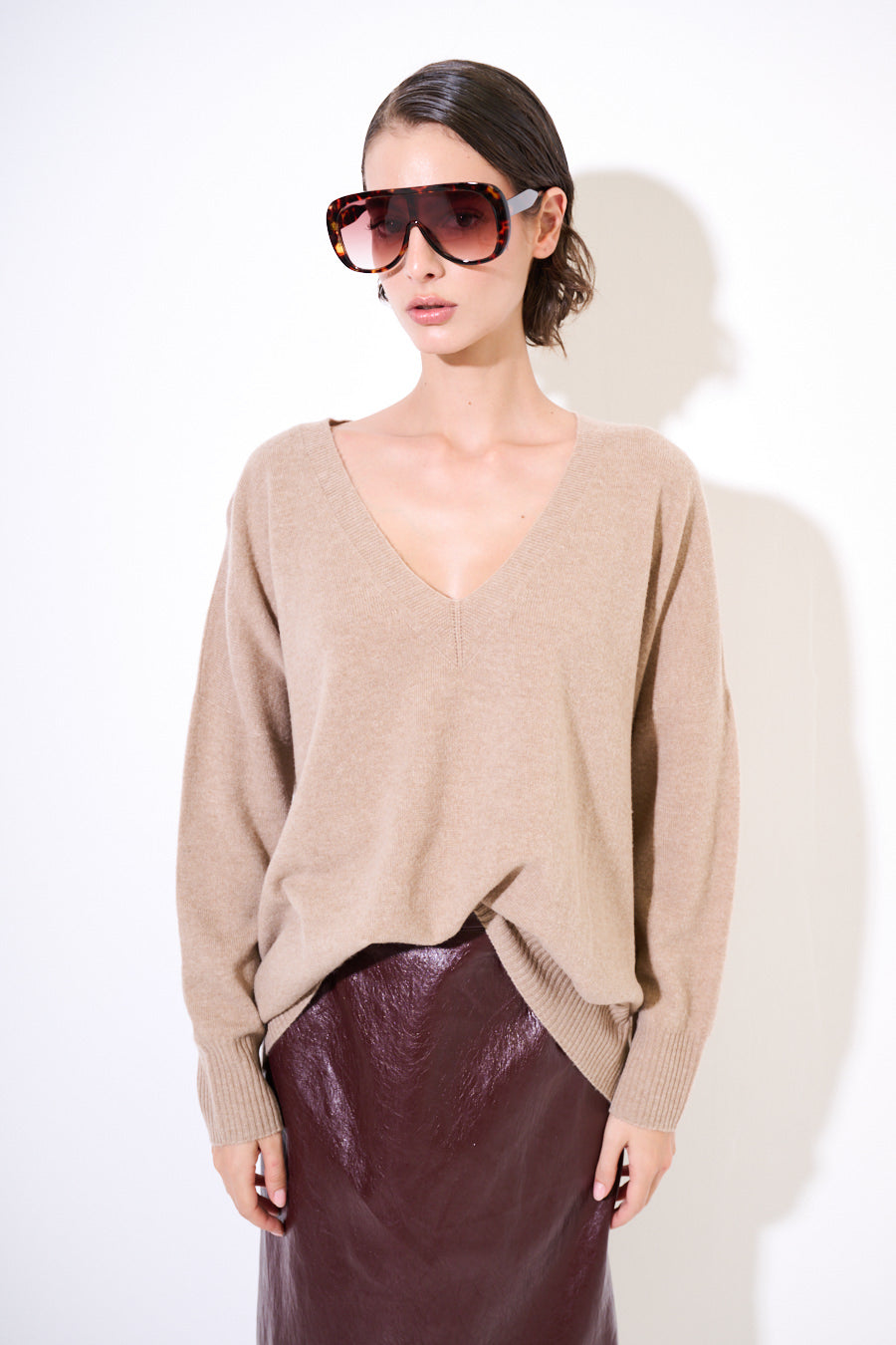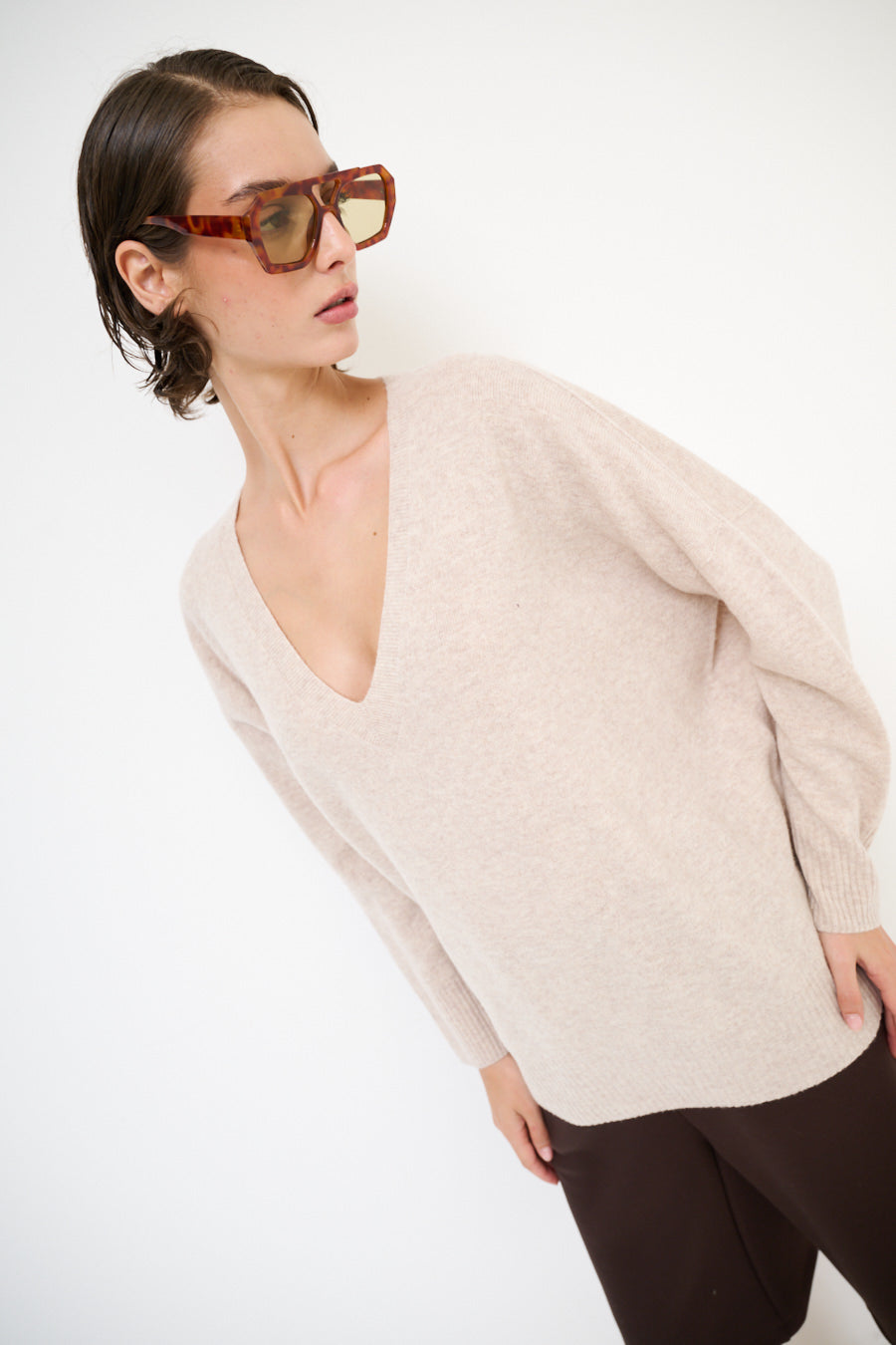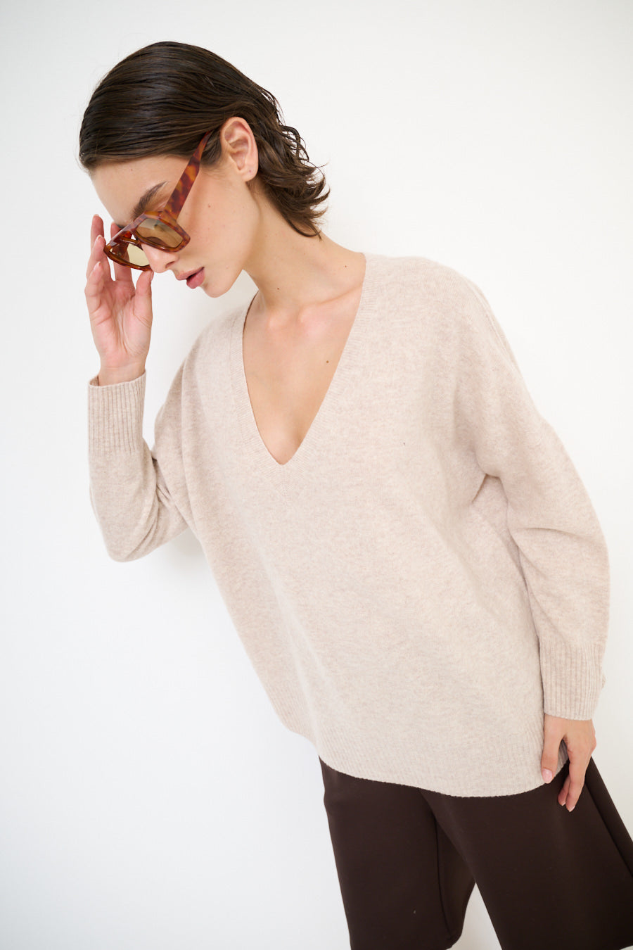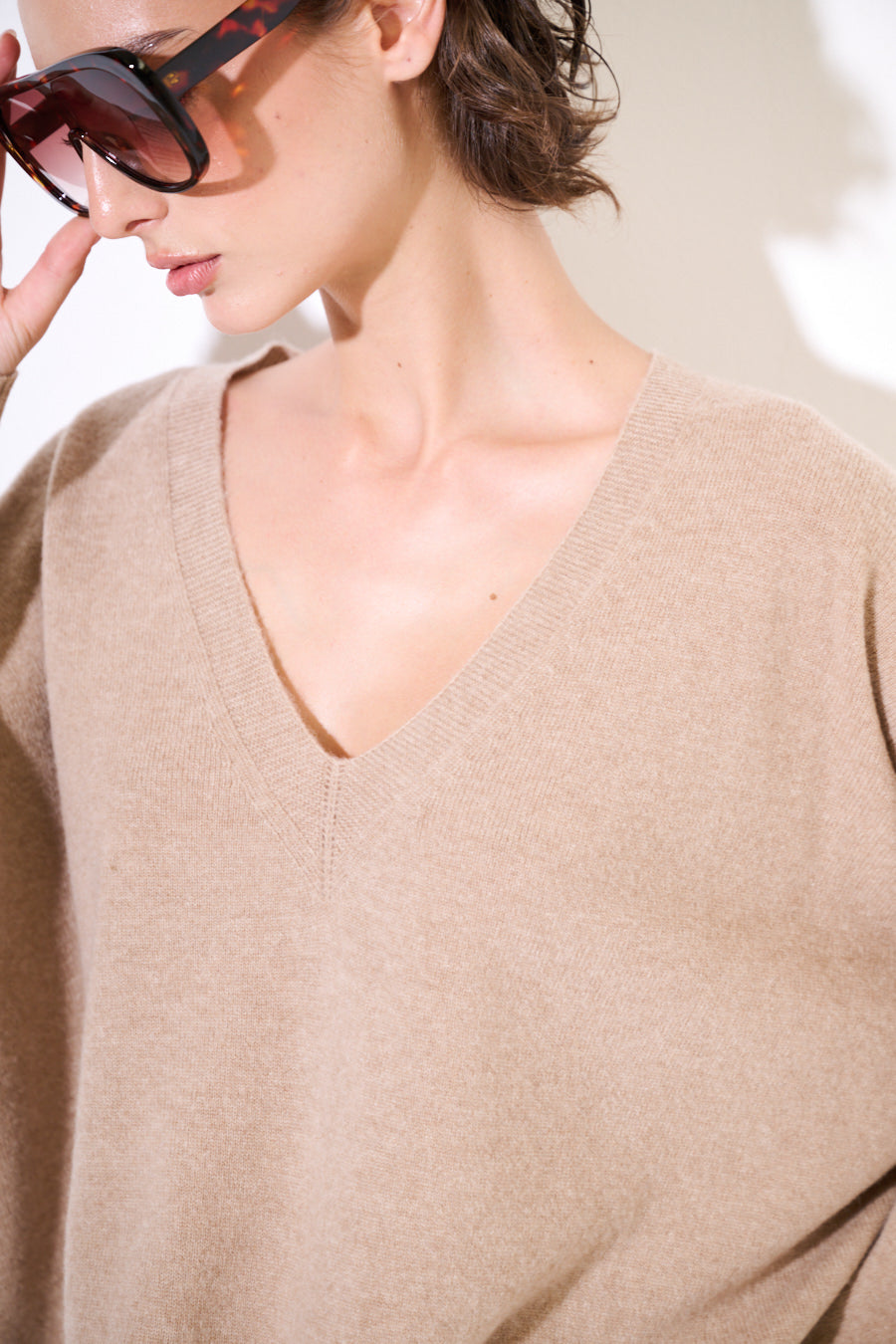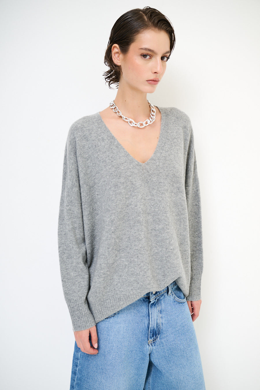 Cashmere Deep V-hals ontspannen trui groothandel