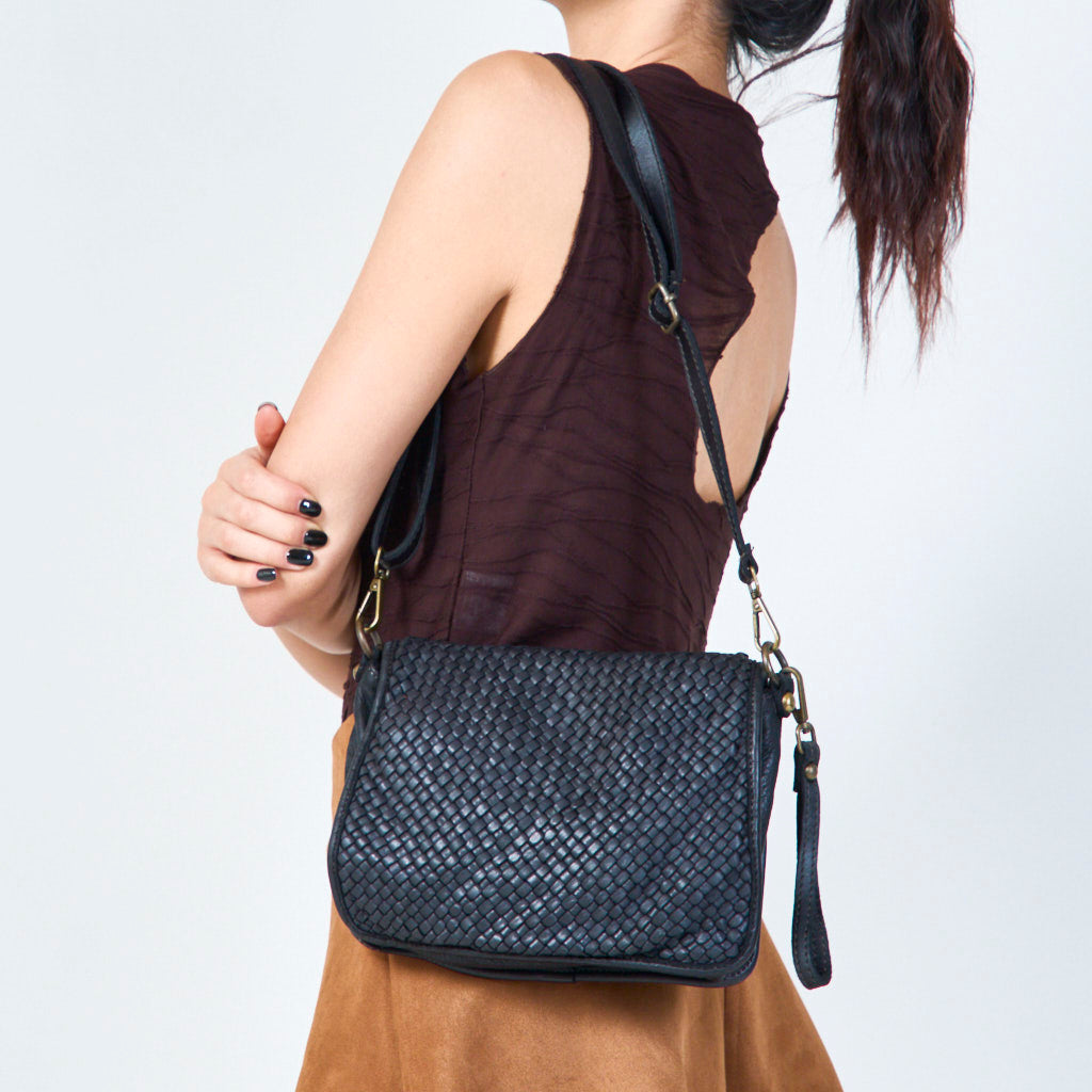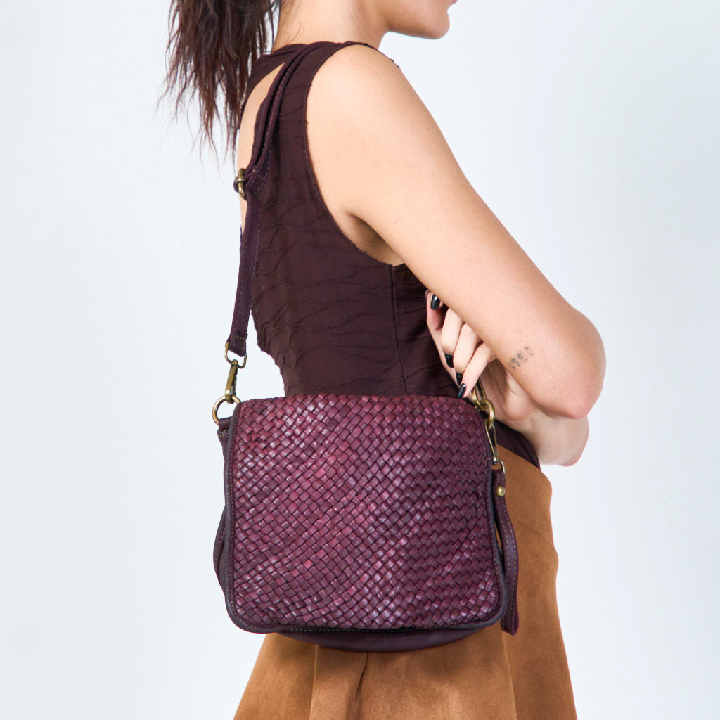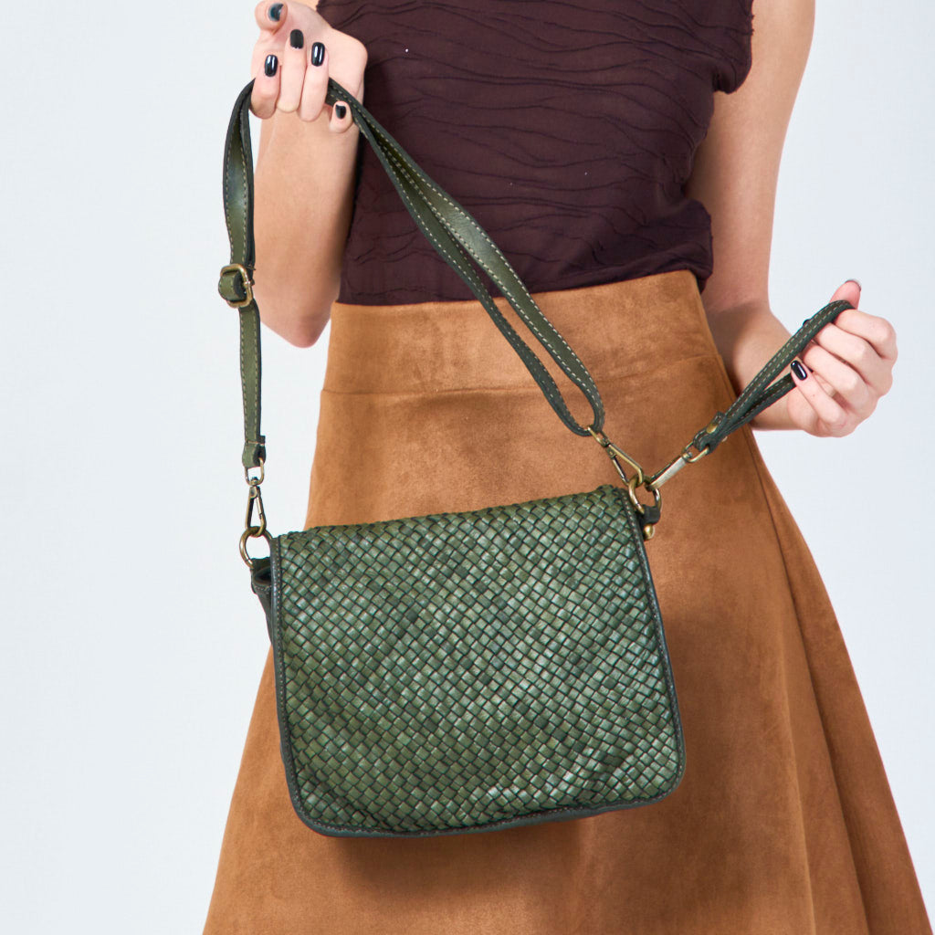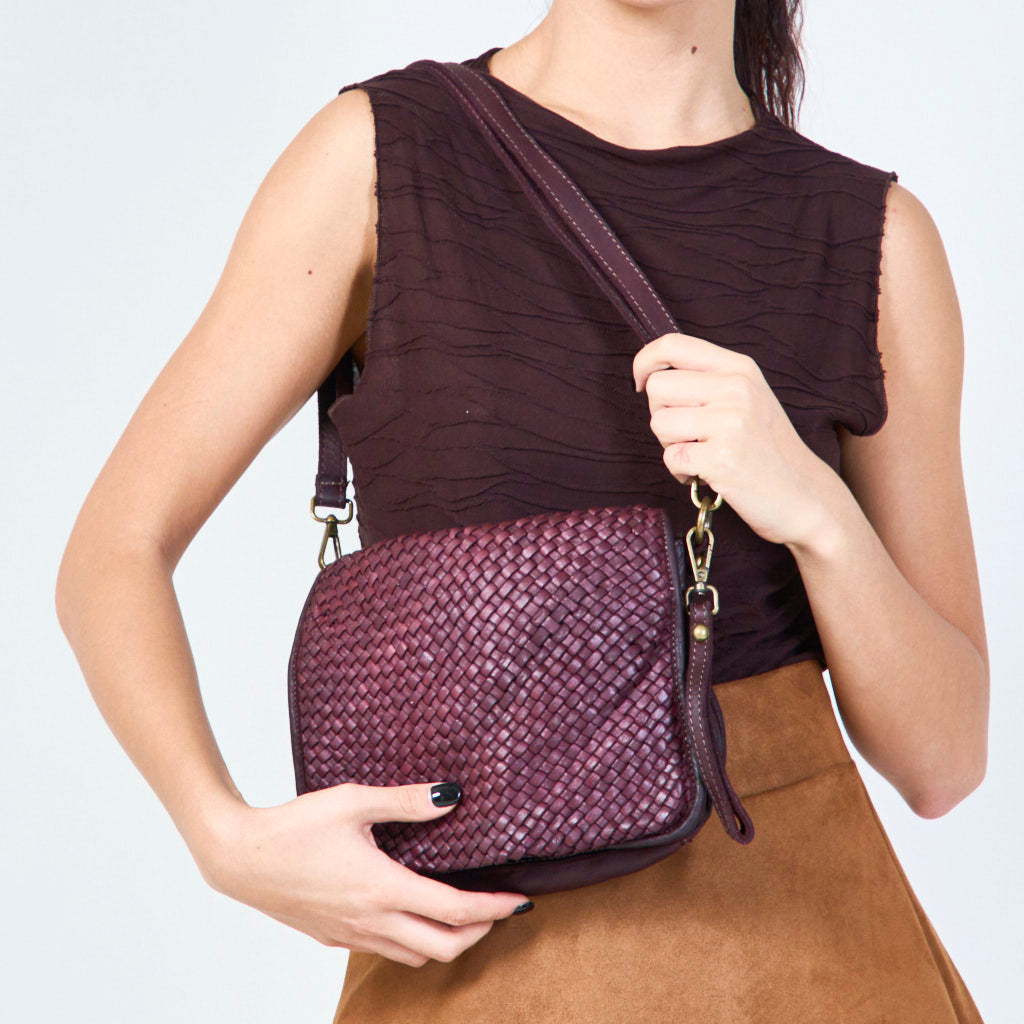 Compact geweven lederen crossbody tas groothandel