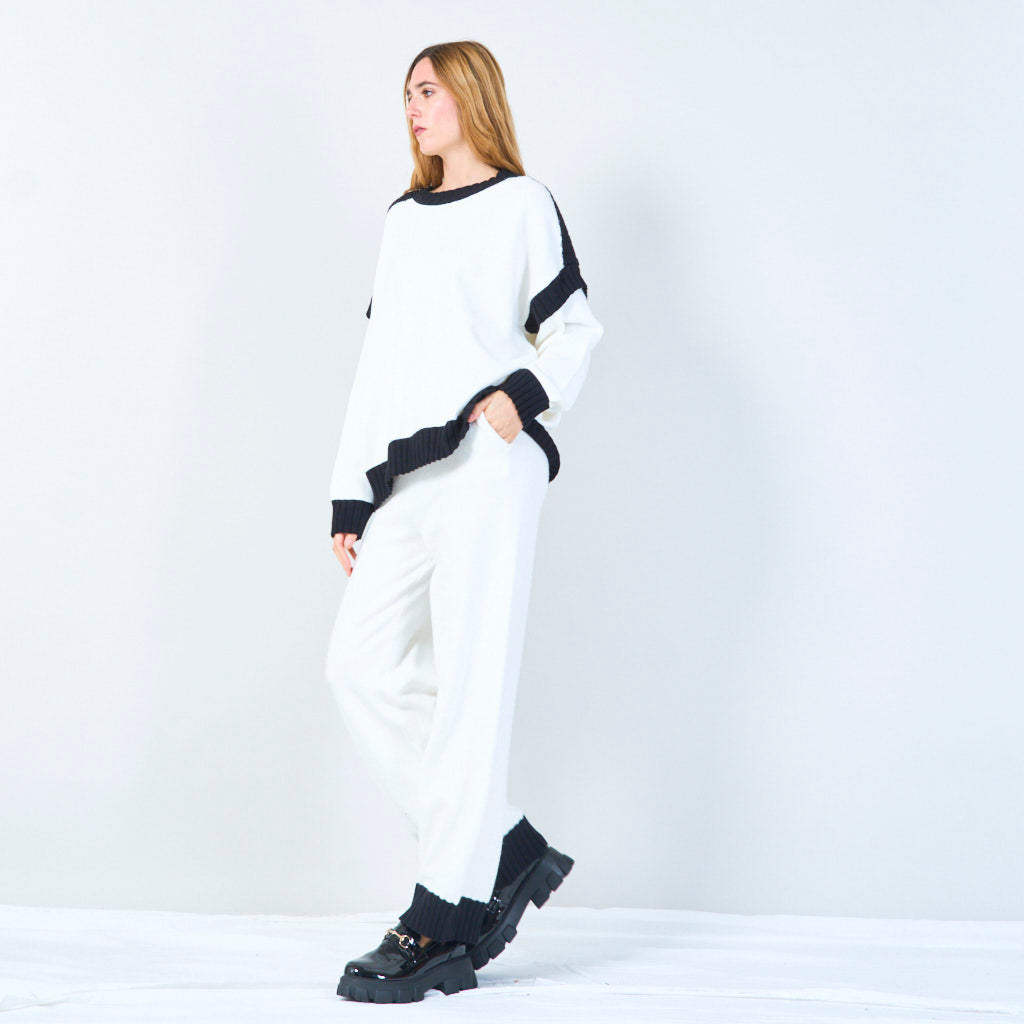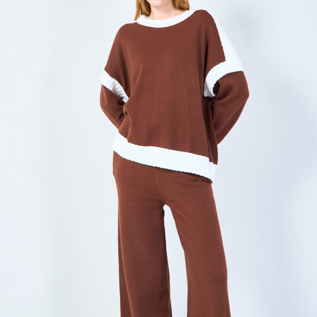 Crewneck-trui en brede pijtenbroeken worden groothandel