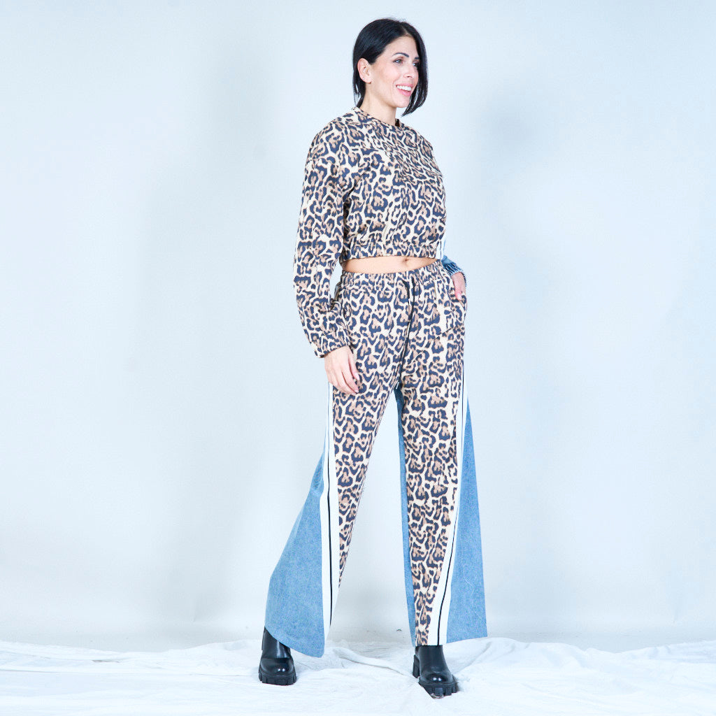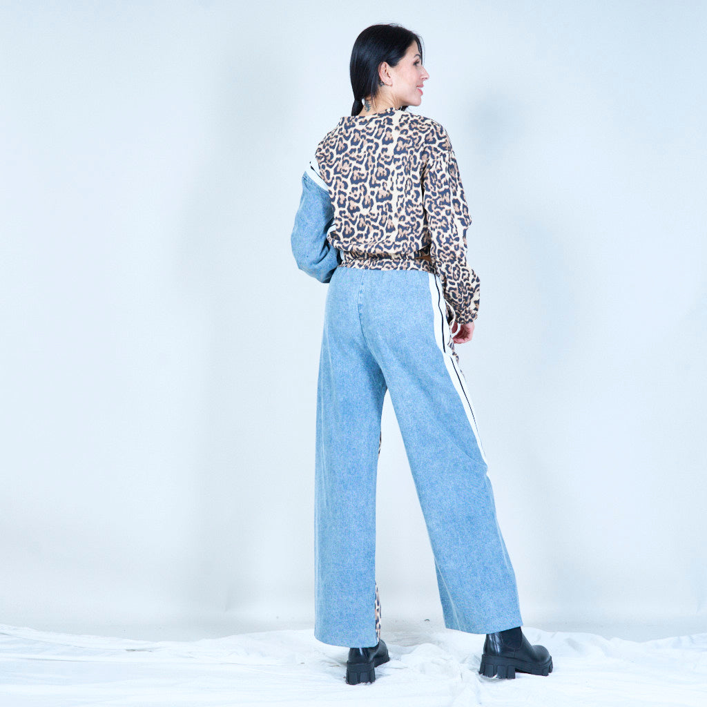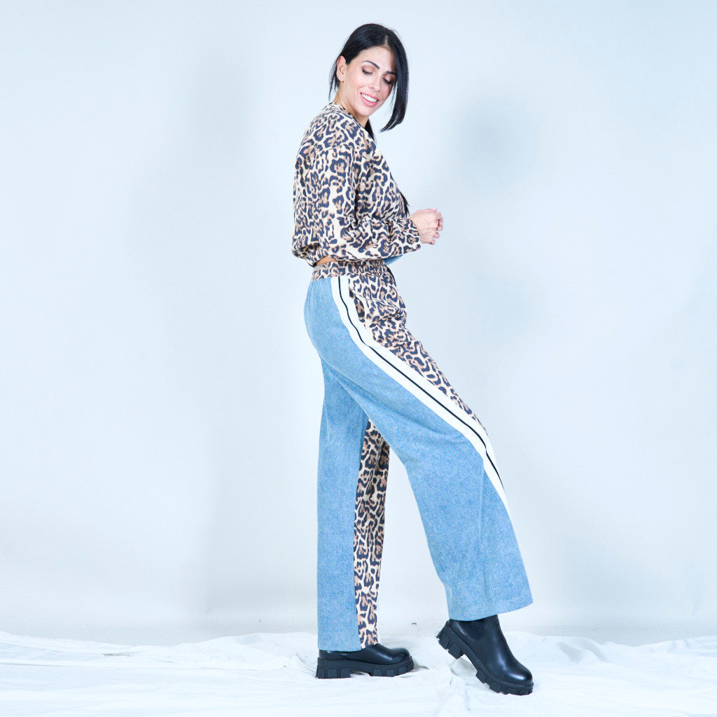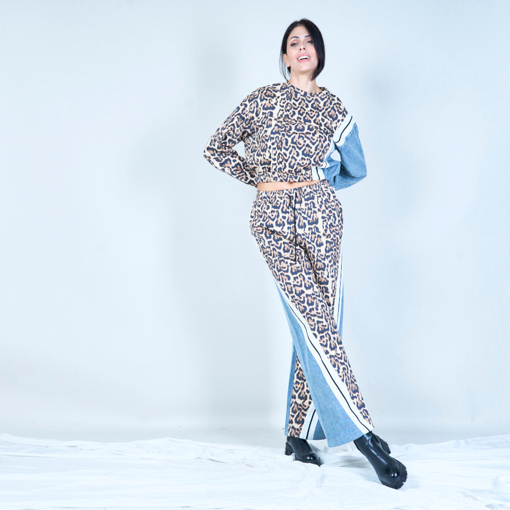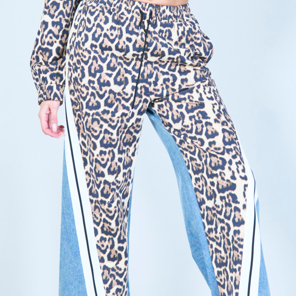- Bold Animal Print met contrasterende denimpaneelaccenten
