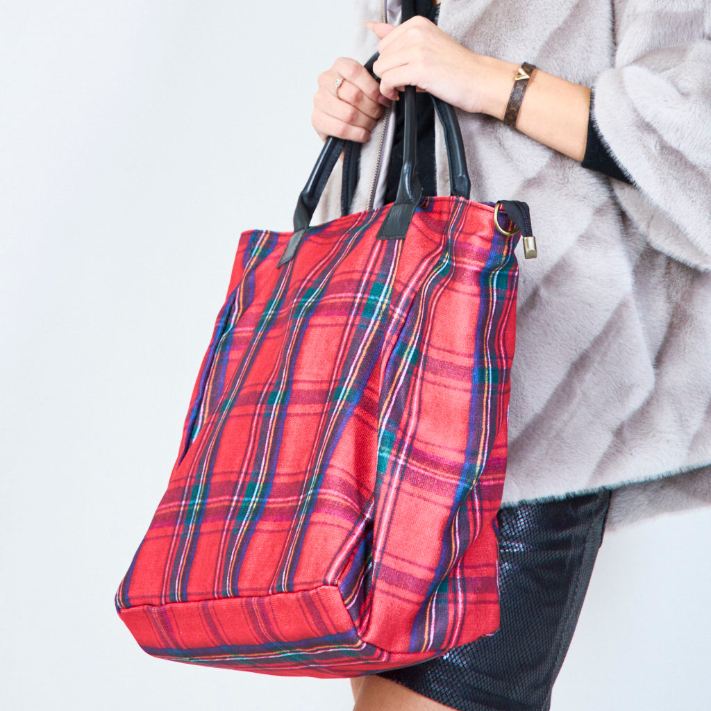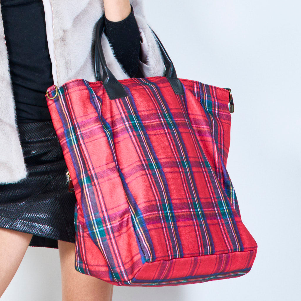 Geruite draagtas met gestructureerde handgrepen groothandel