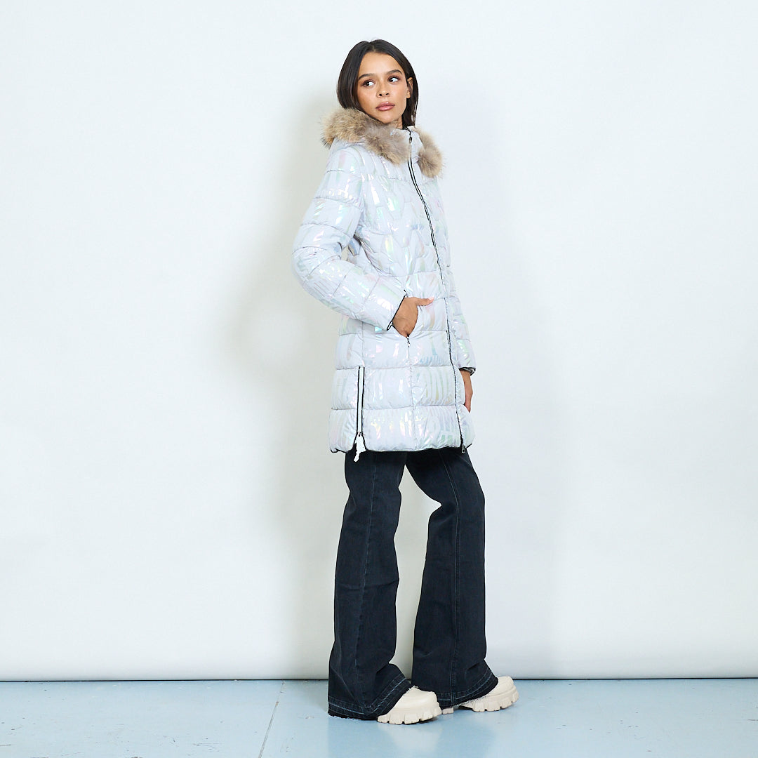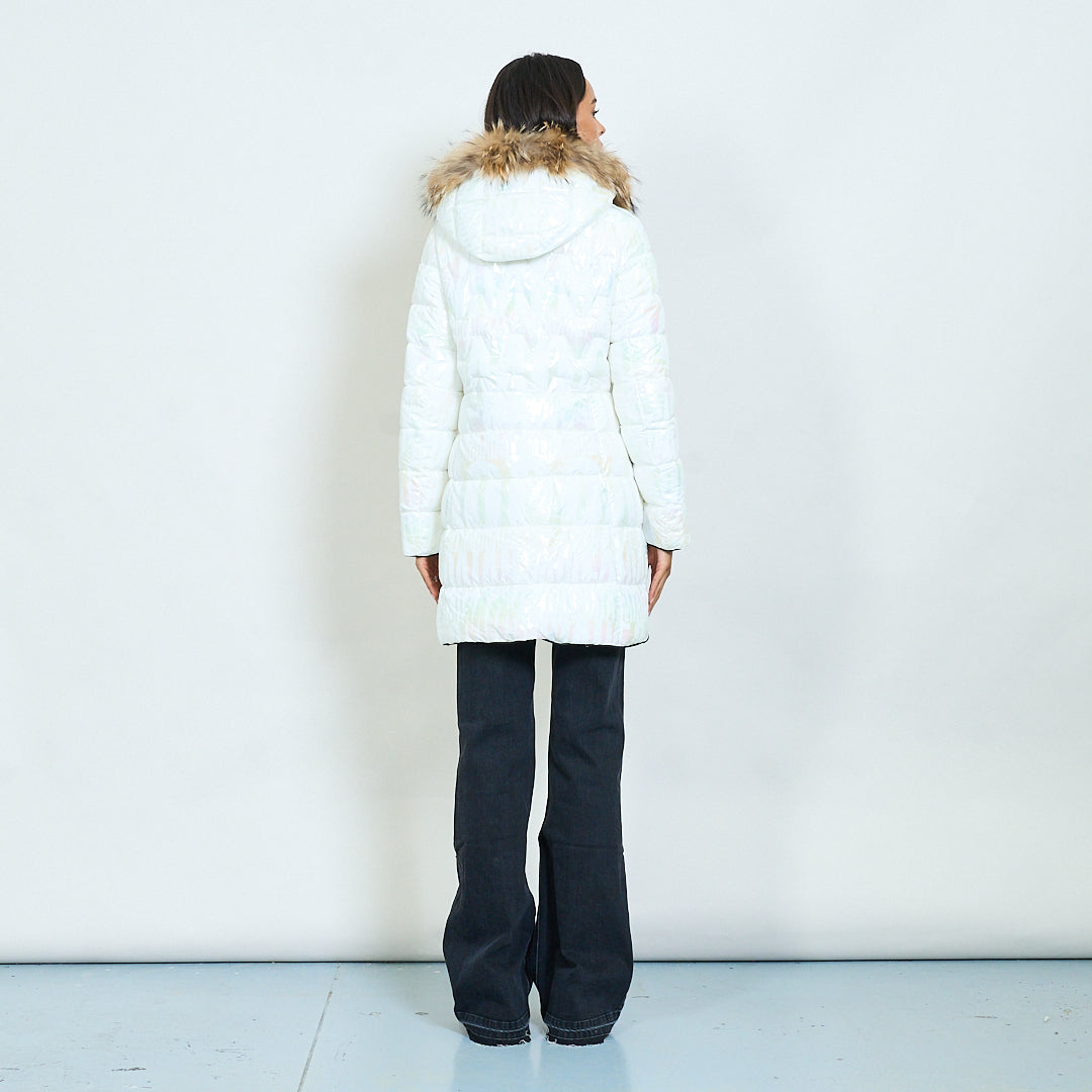 Iriserende gewatteerde laag met faux bontkapgroothandel