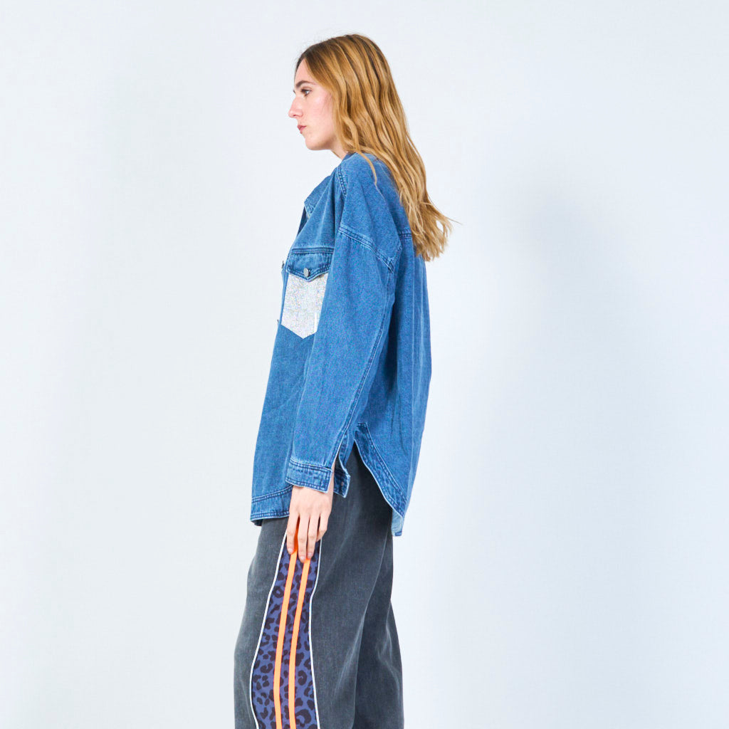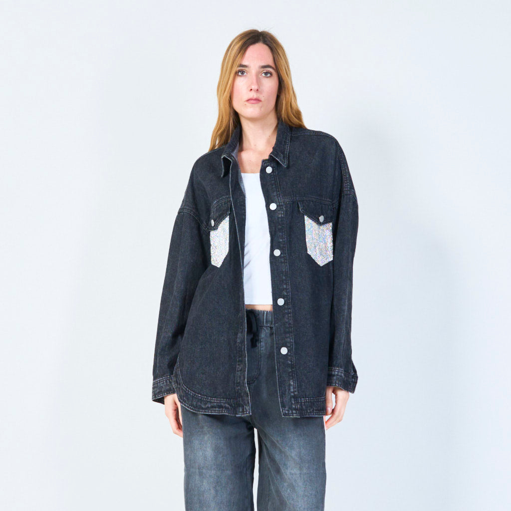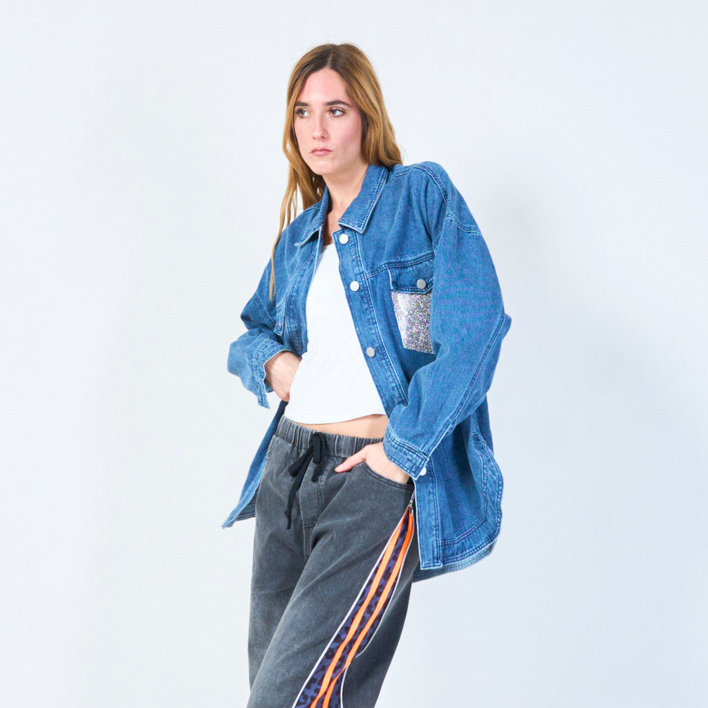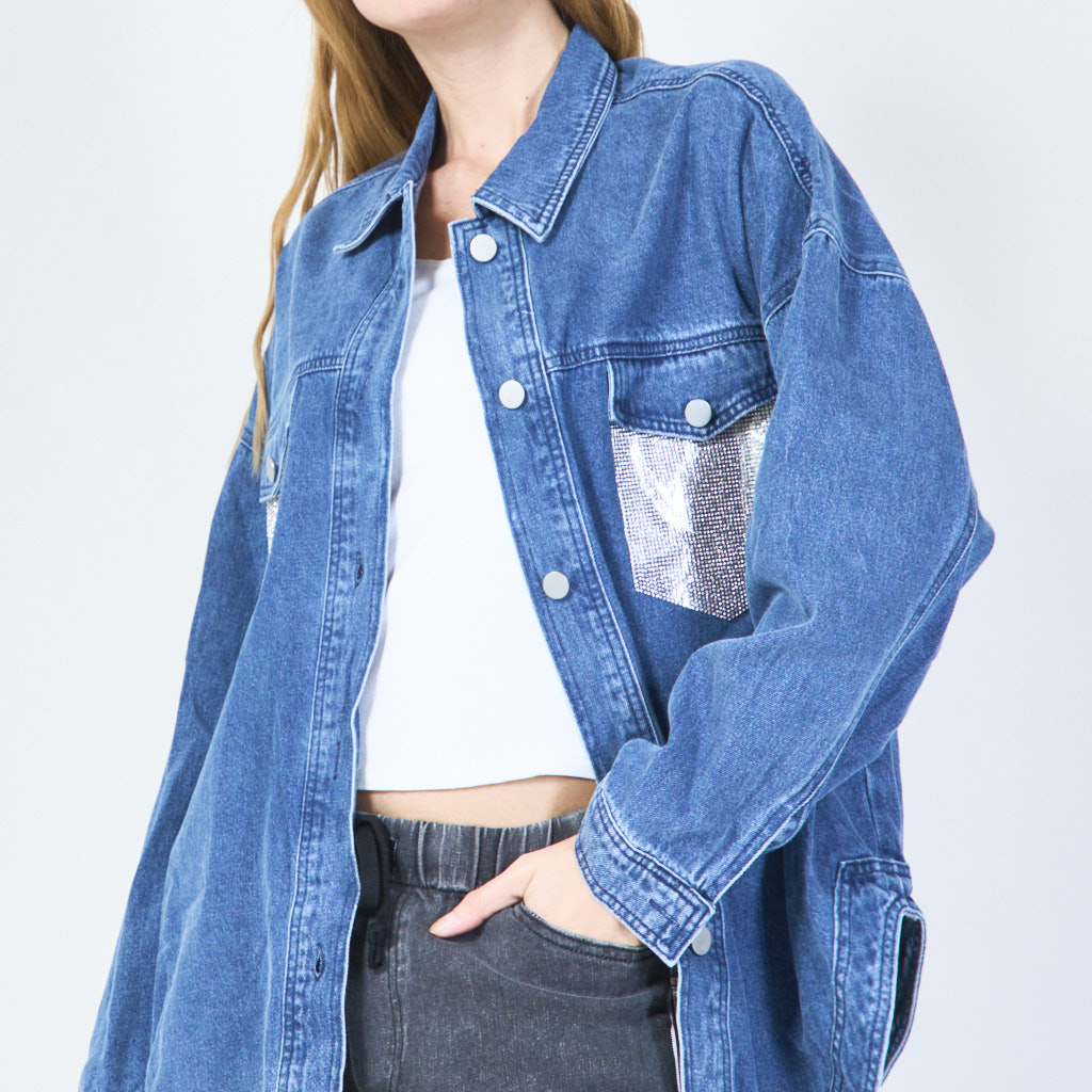 Kristal zakdetail denim jas groothandel