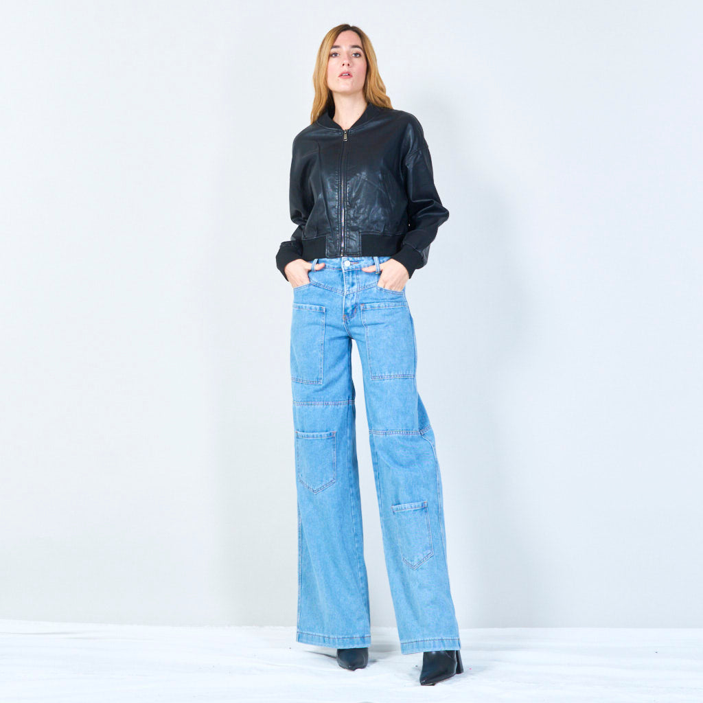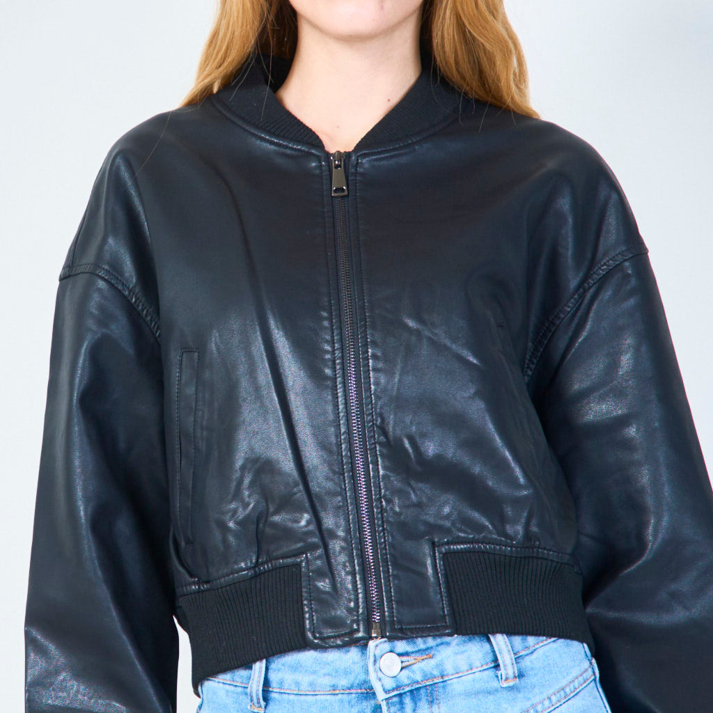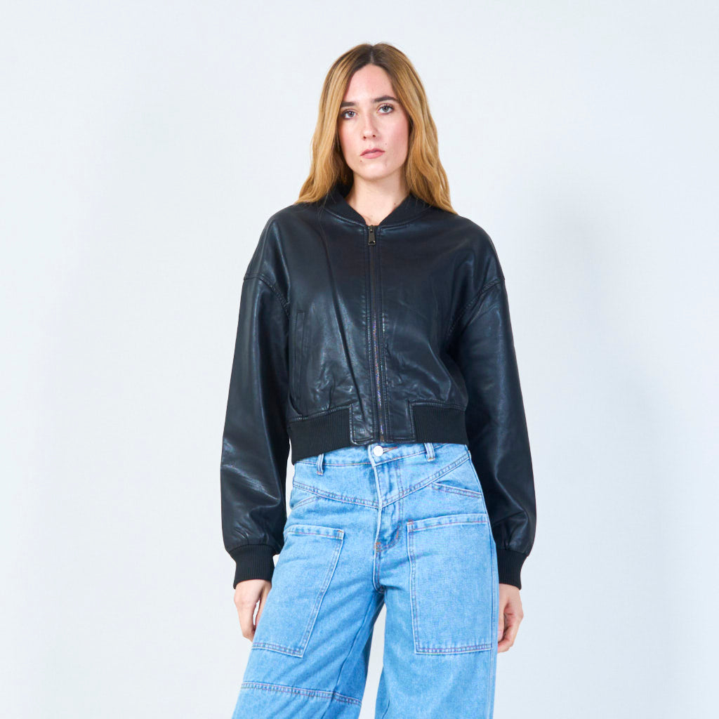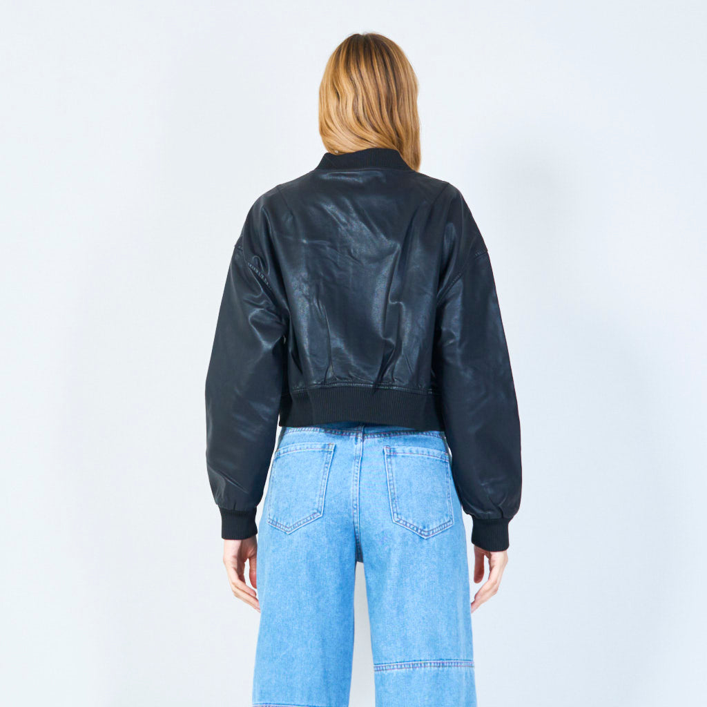 - Geribbelde kraag, manchetten en zoom voor een klassieke bommenwerperfit