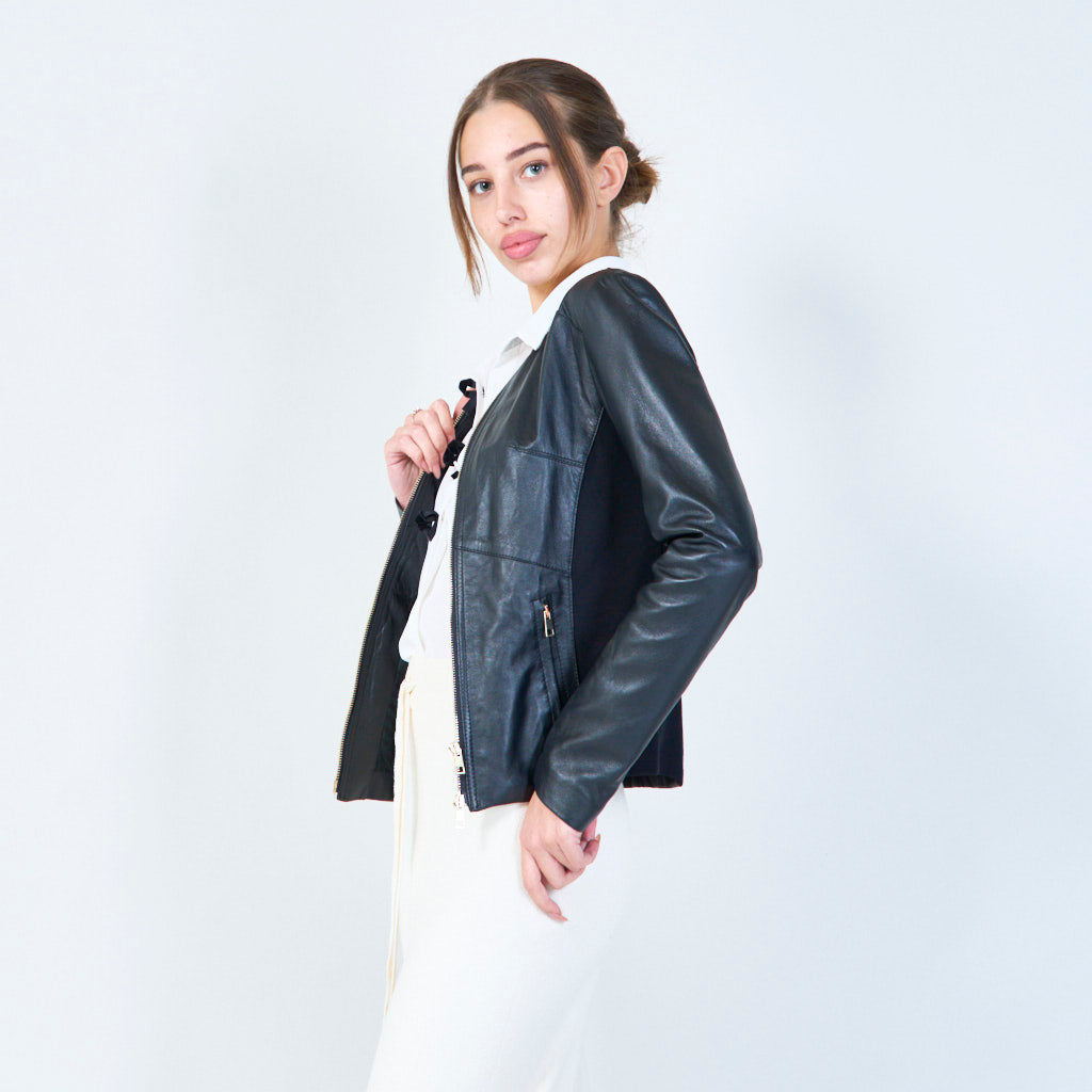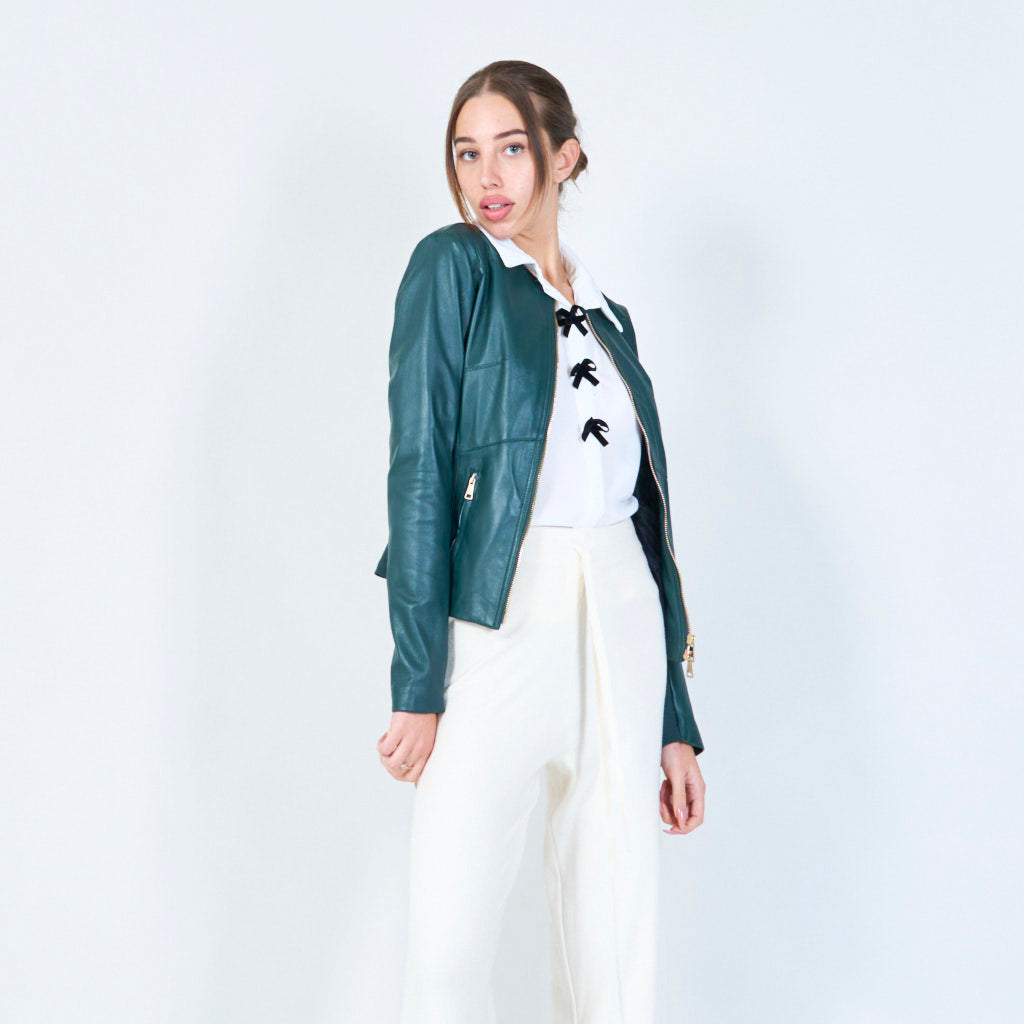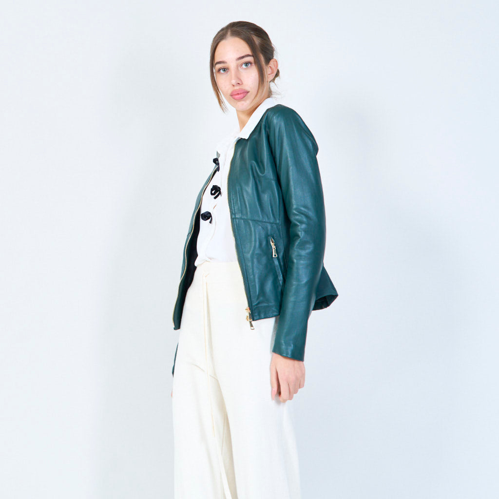 Slanke zip-front lederen jasgroothandel