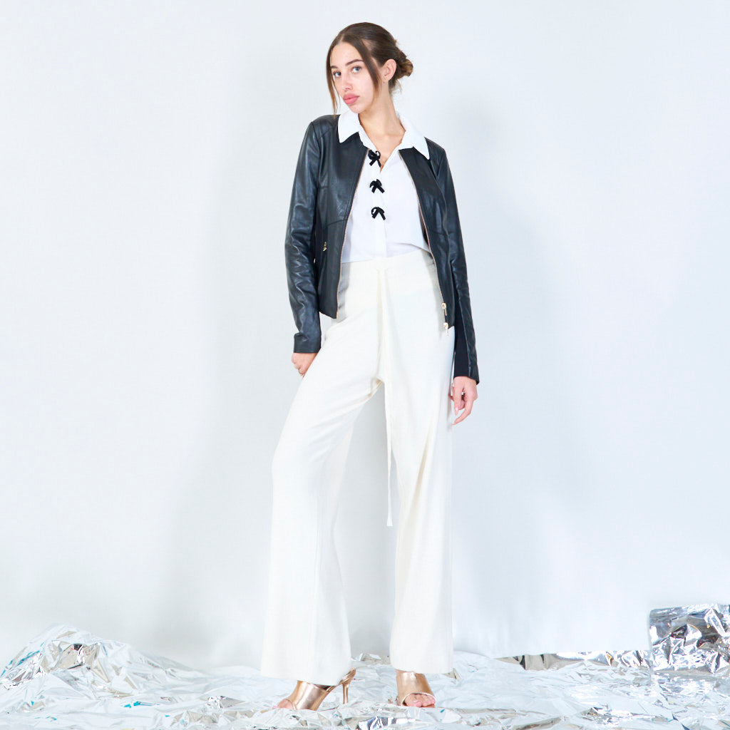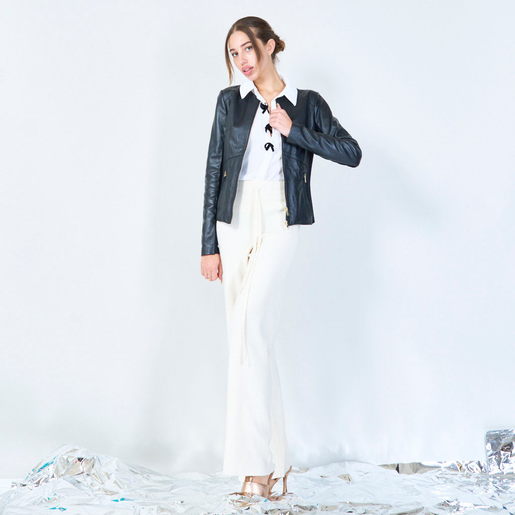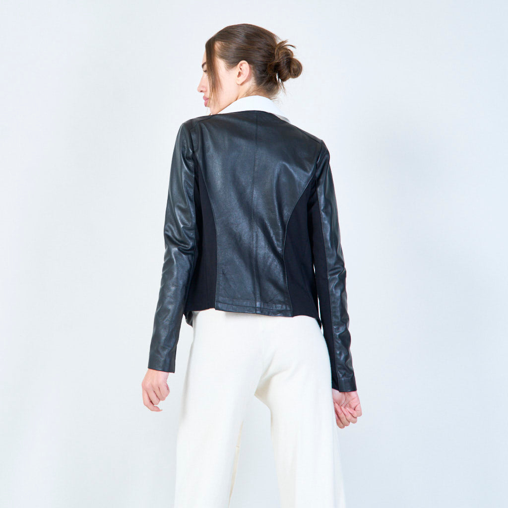 Slanke zip-front lederen jasgroothandel