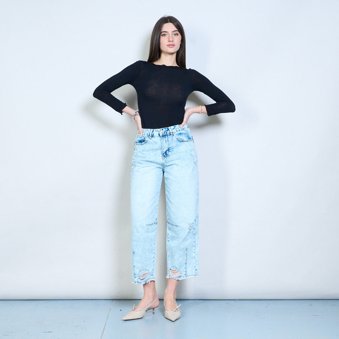 - Licht verweerde details creëren een moderne en casual uitstraling
