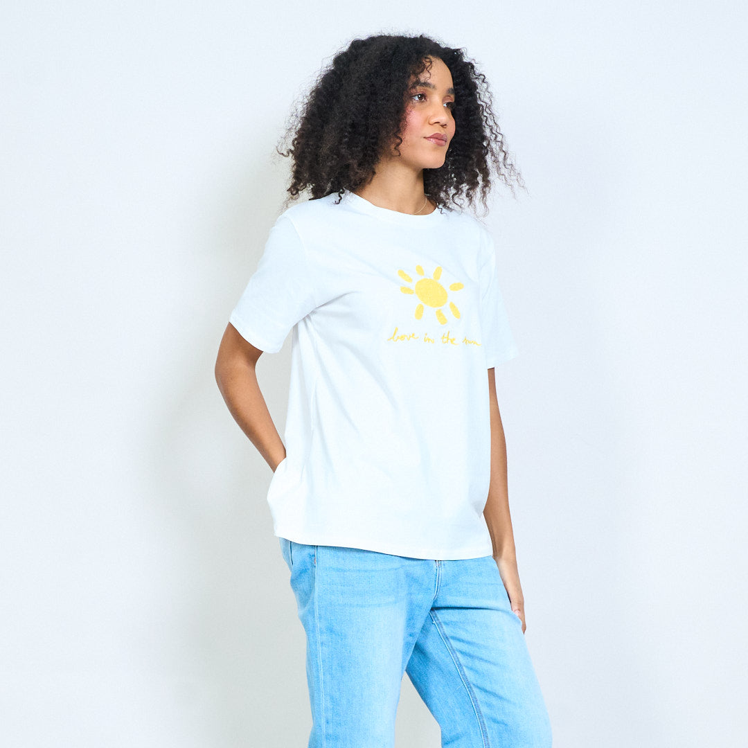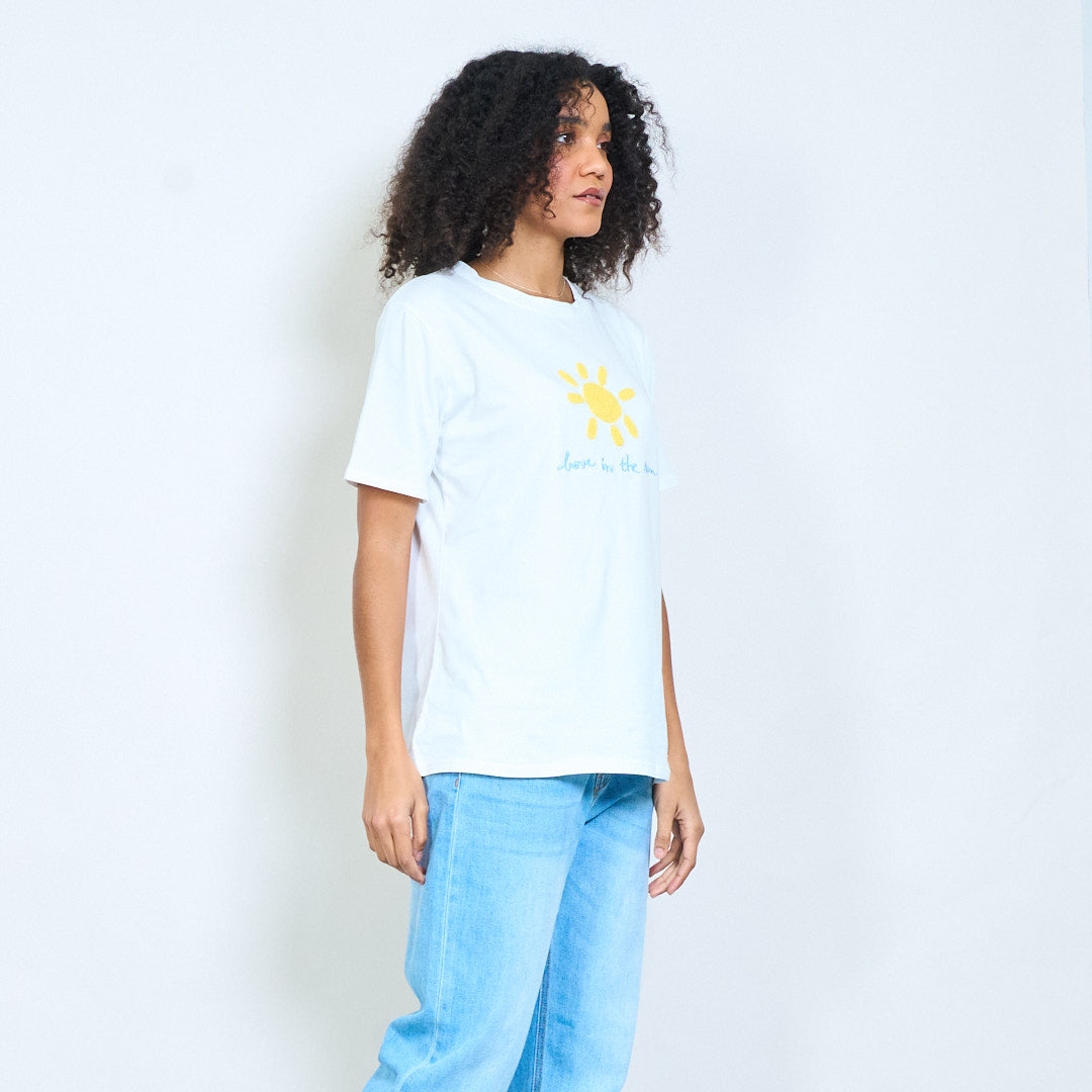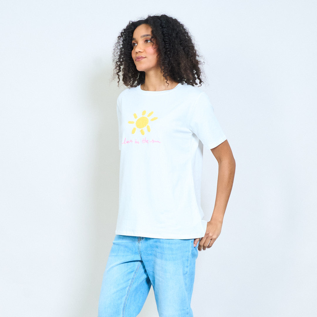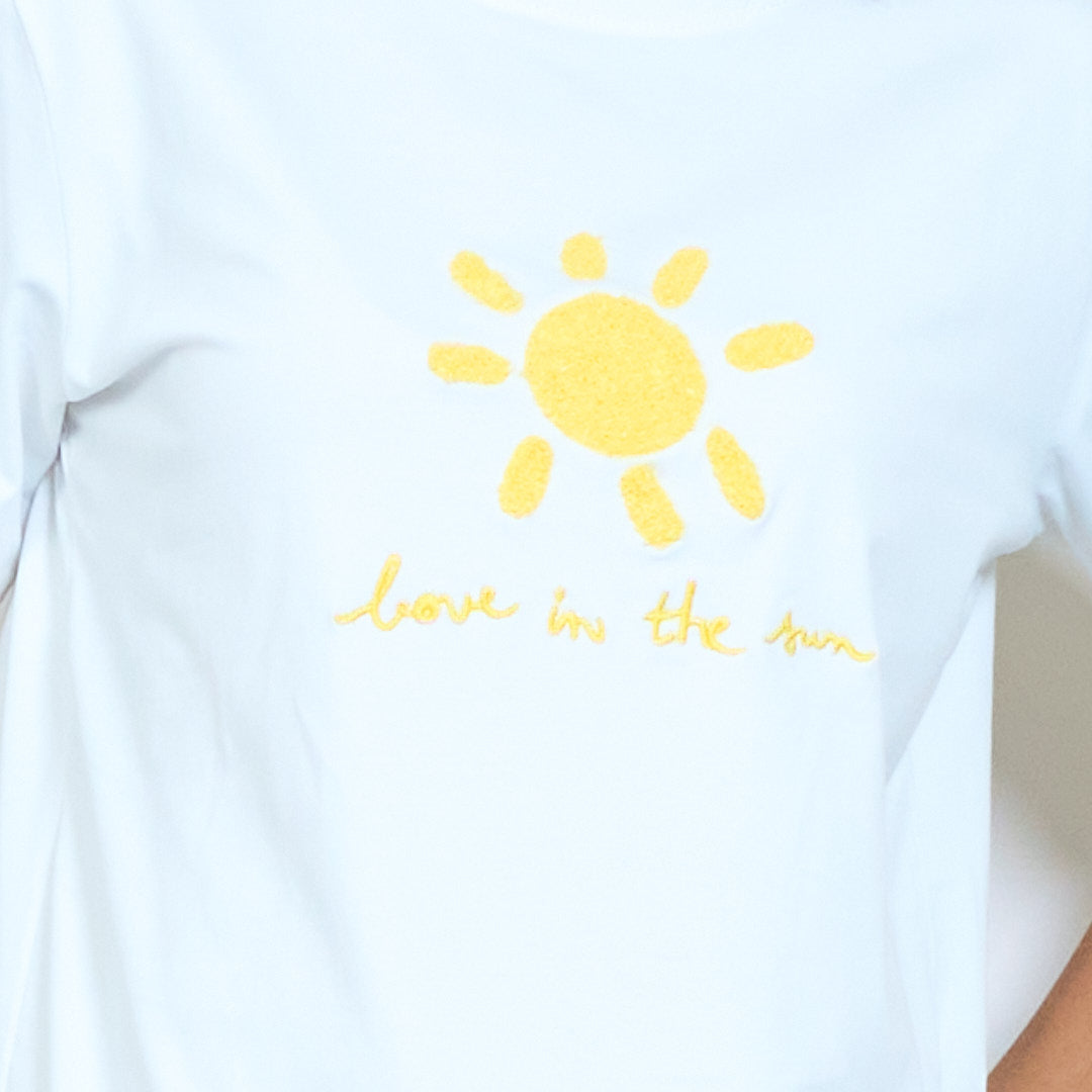 Zonnige chenille zon "Love in the sun" geborduurde katoenen t-shirts groothandel