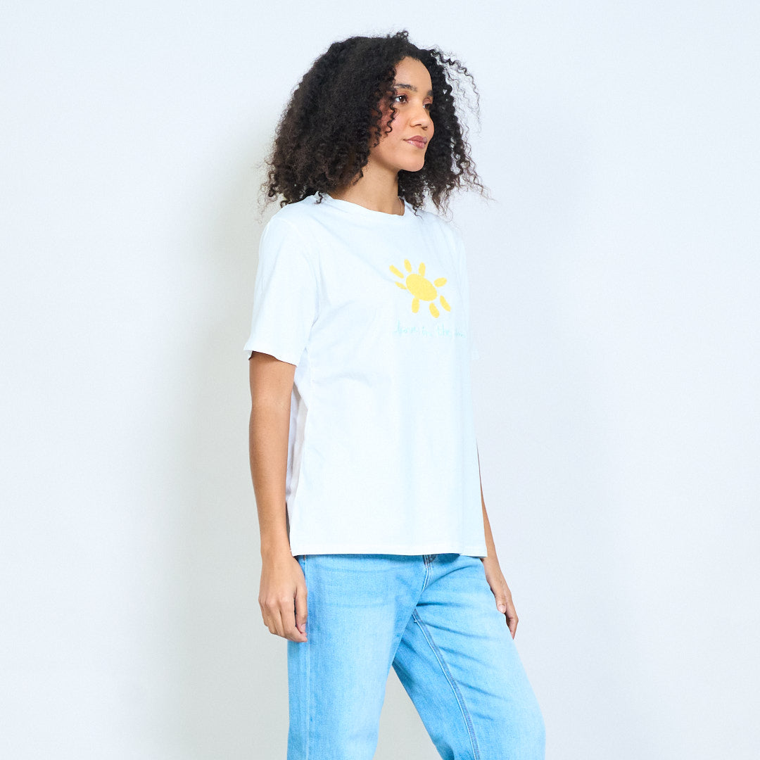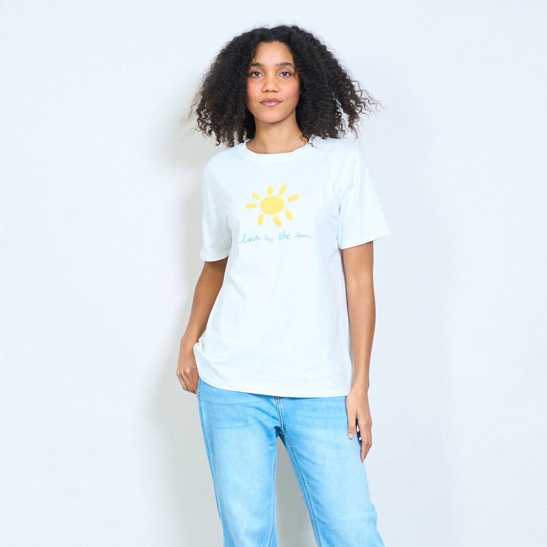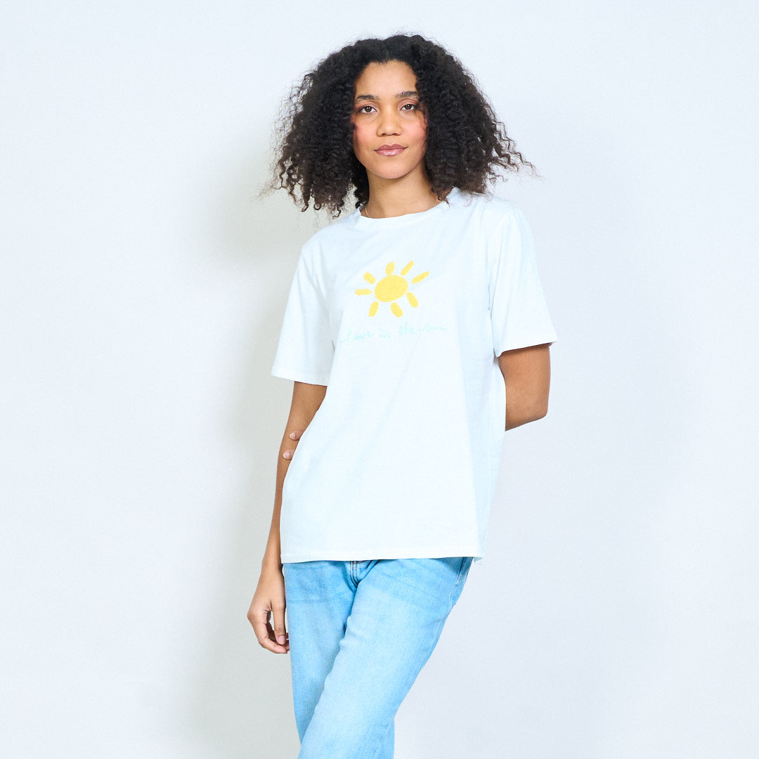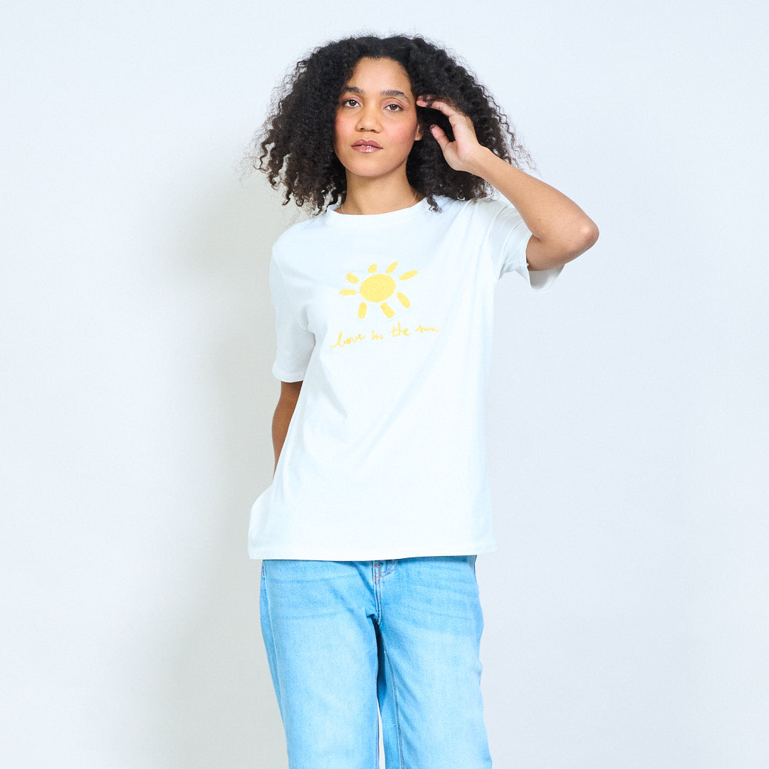 Zonnige chenille zon "Love in the sun" geborduurde katoenen t-shirts groothandel