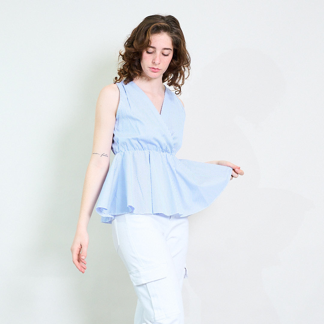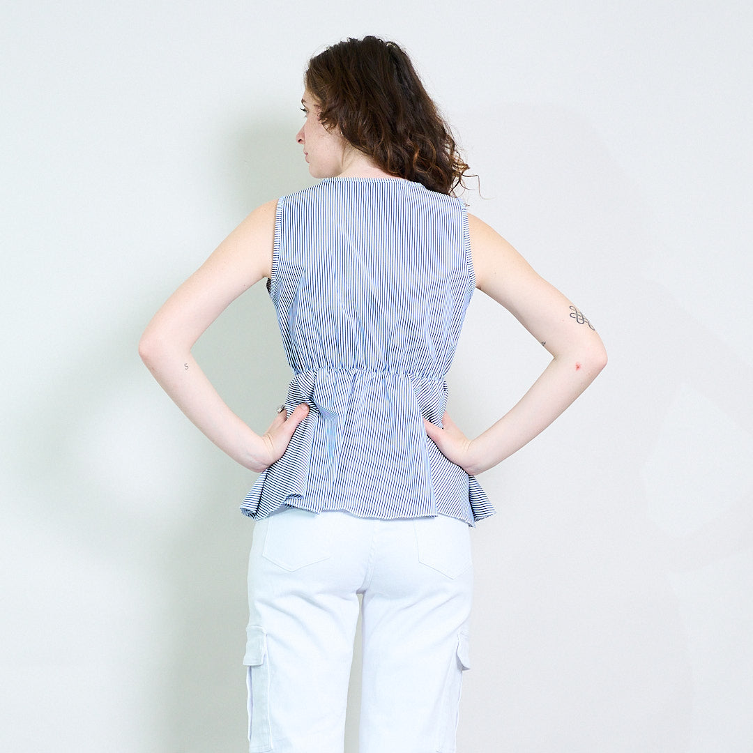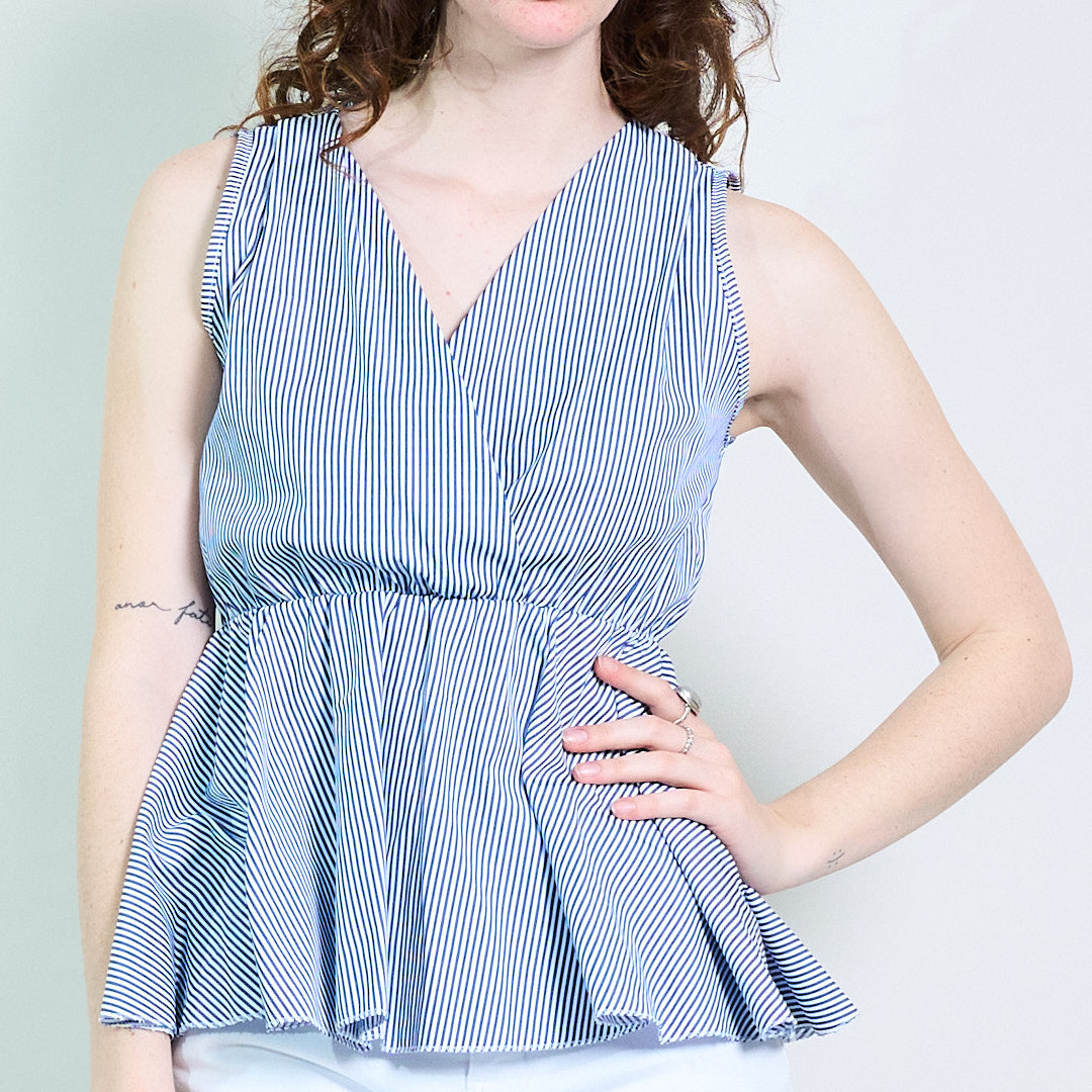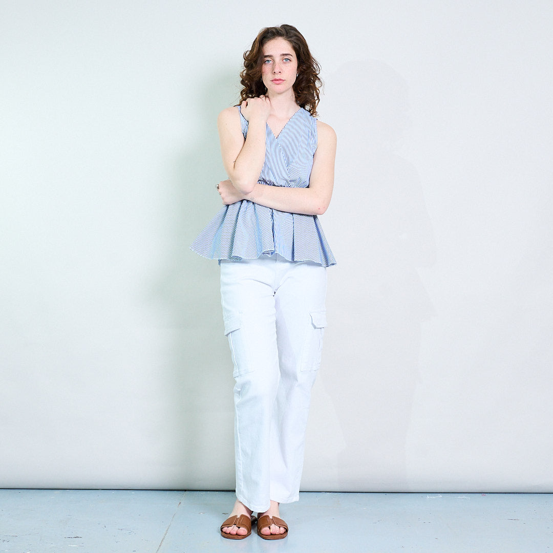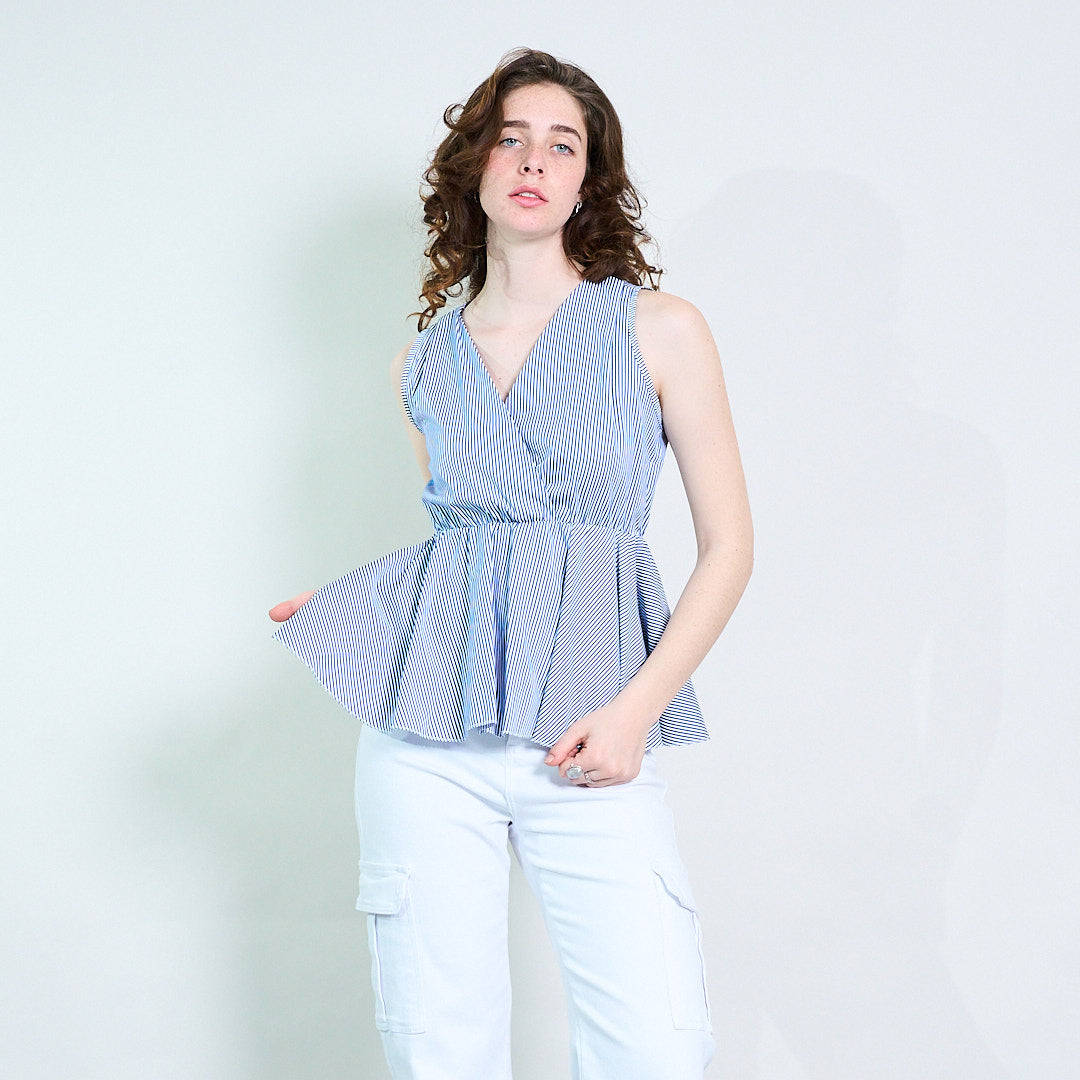 Gestreepte v-hals mouwloze peplum topgroothandel