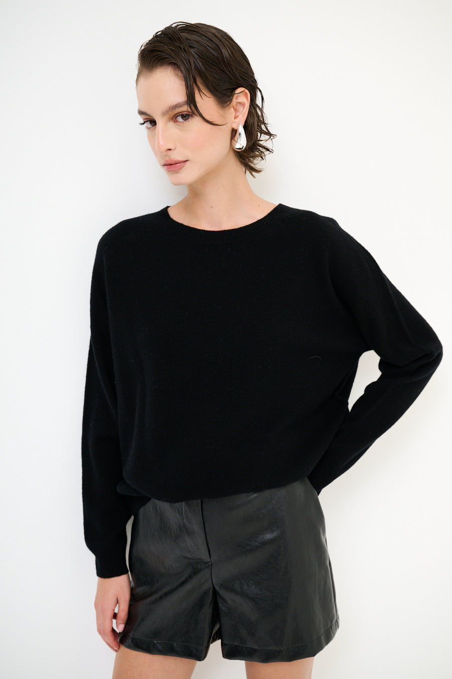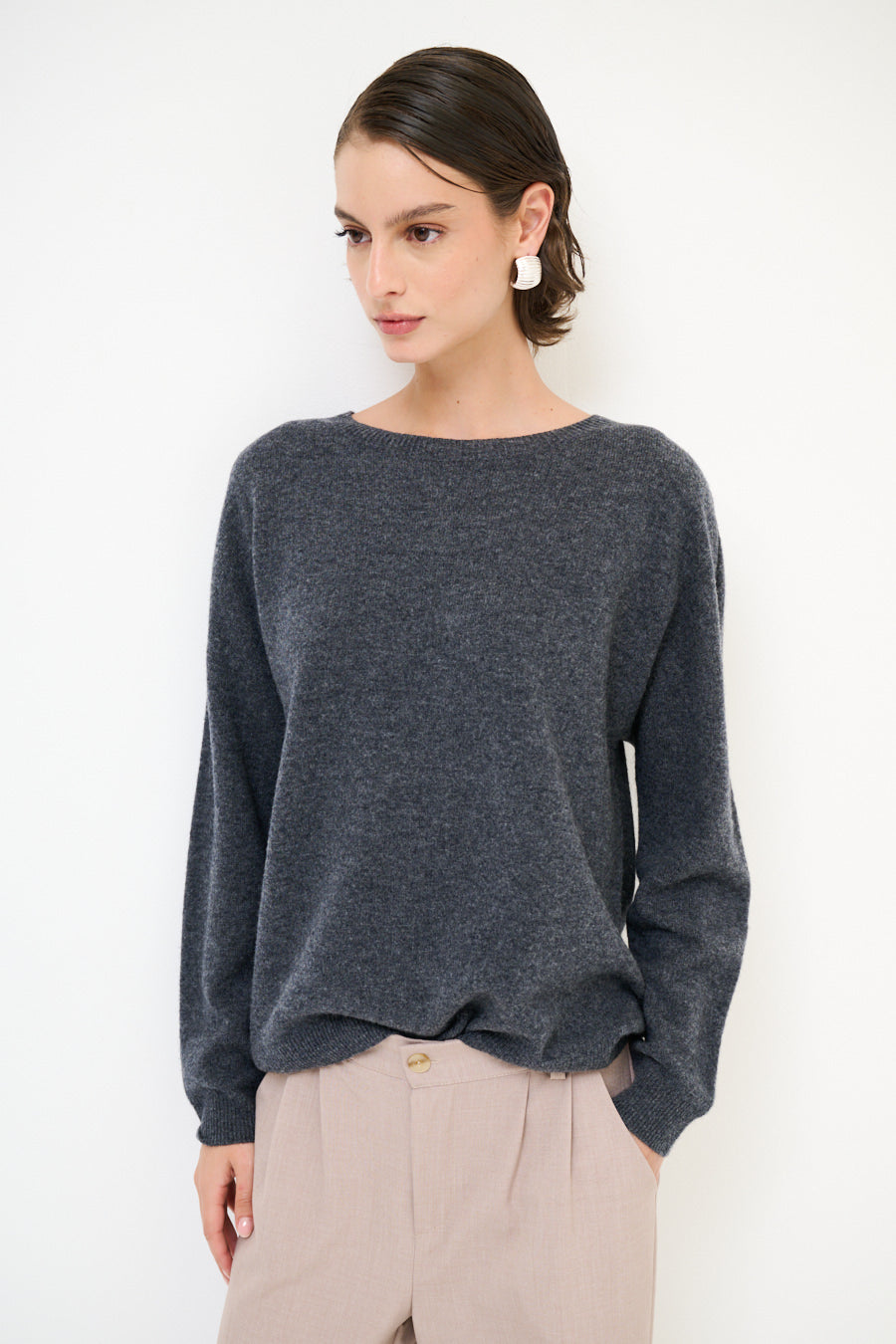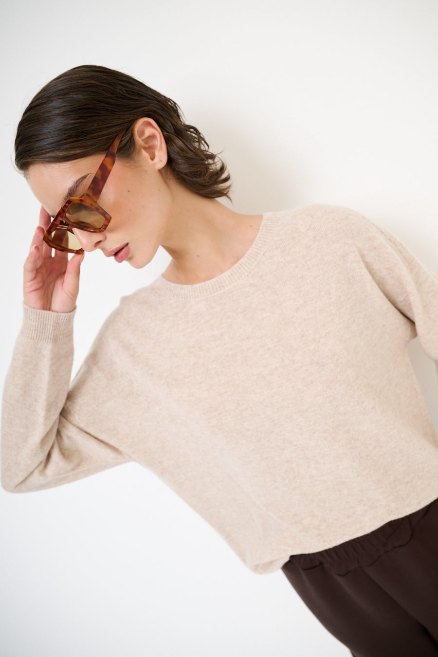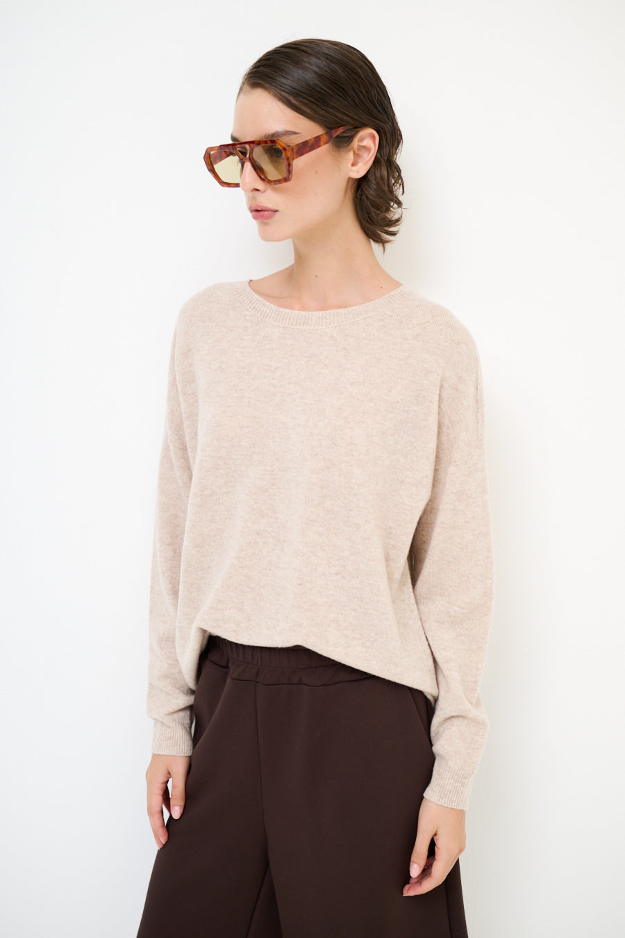 Ontspannen ronde nek kasjmier blend trui groothandel