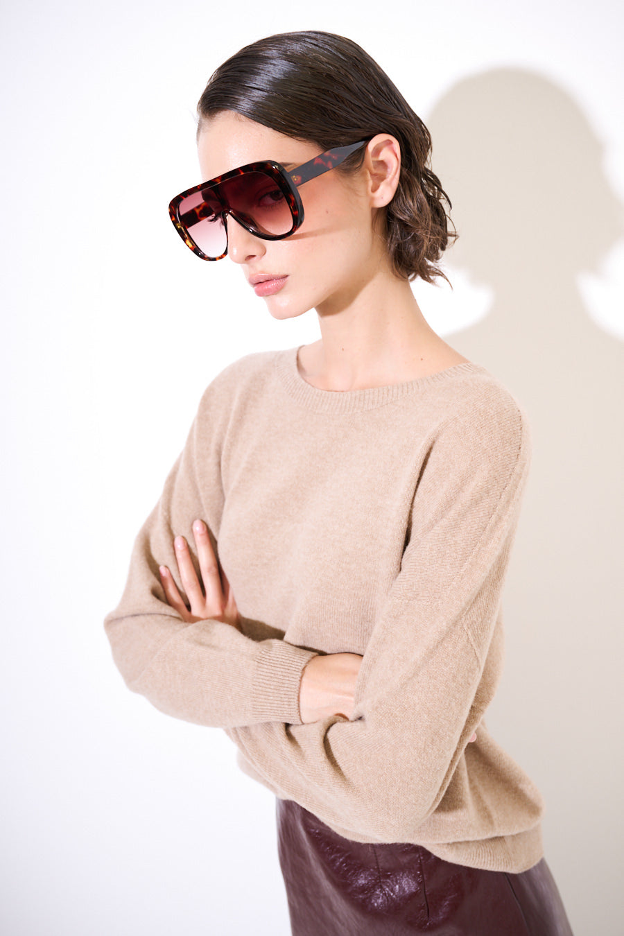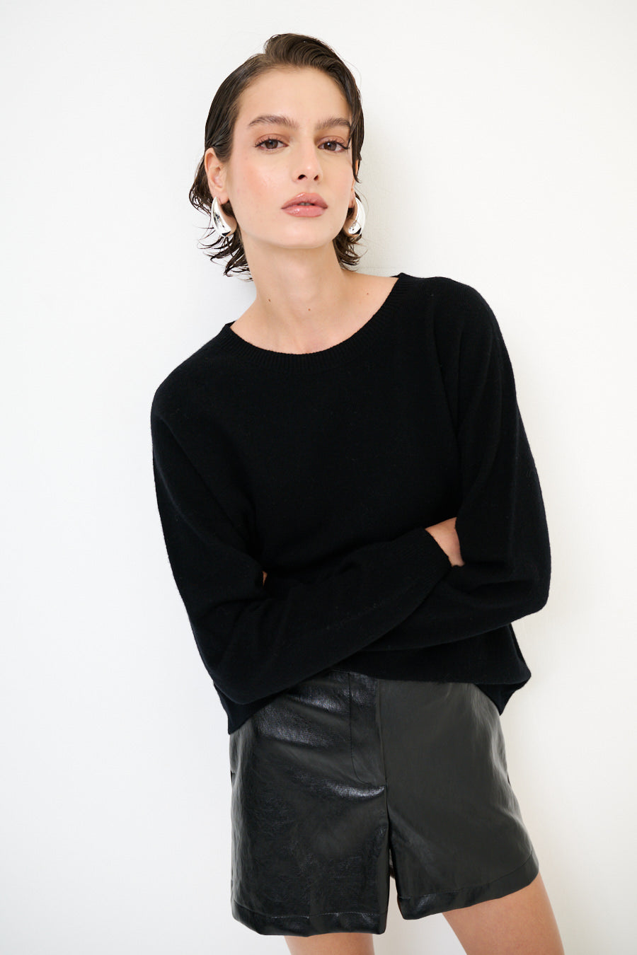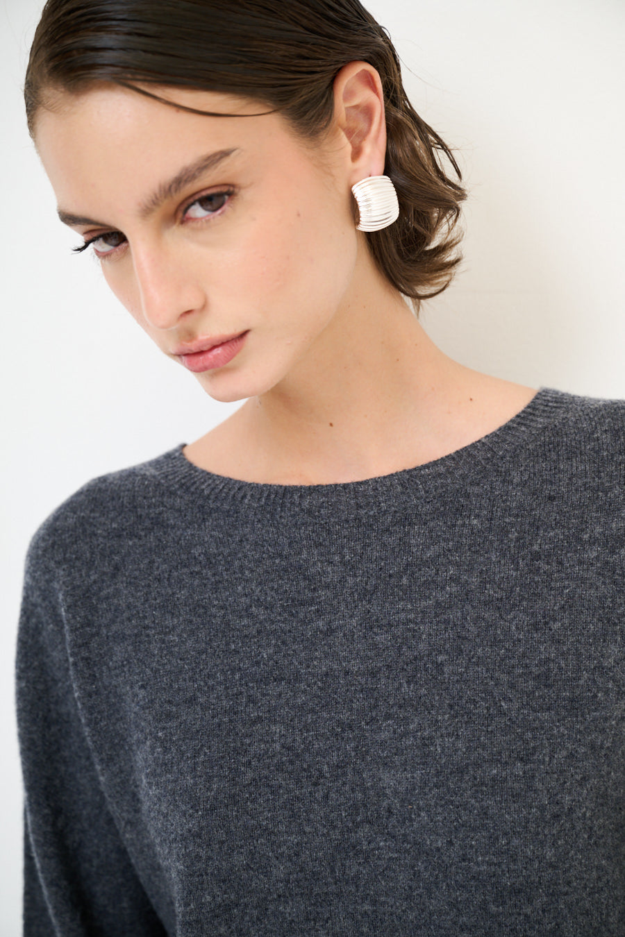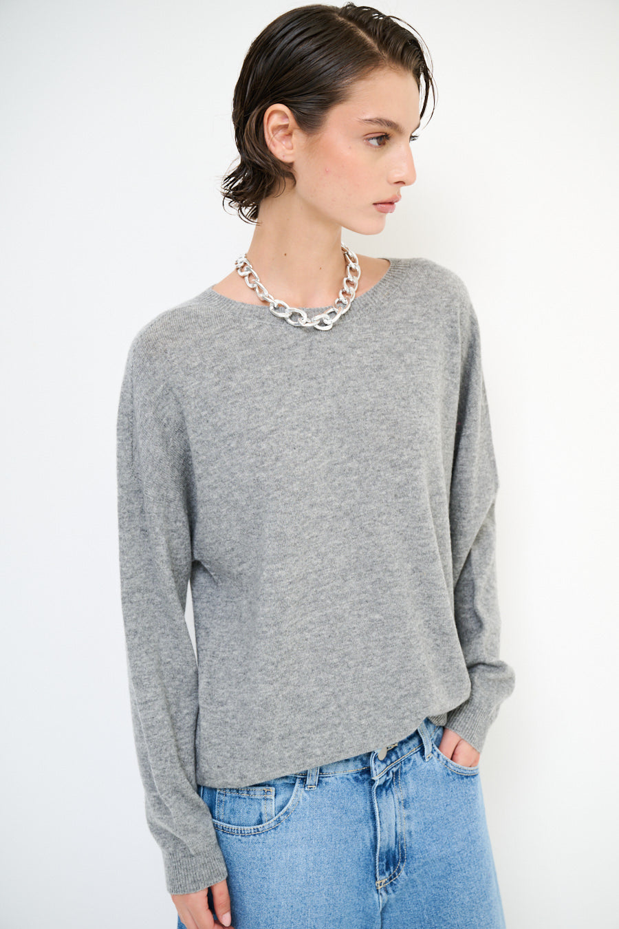 Ontspannen ronde nek kasjmier blend trui groothandel