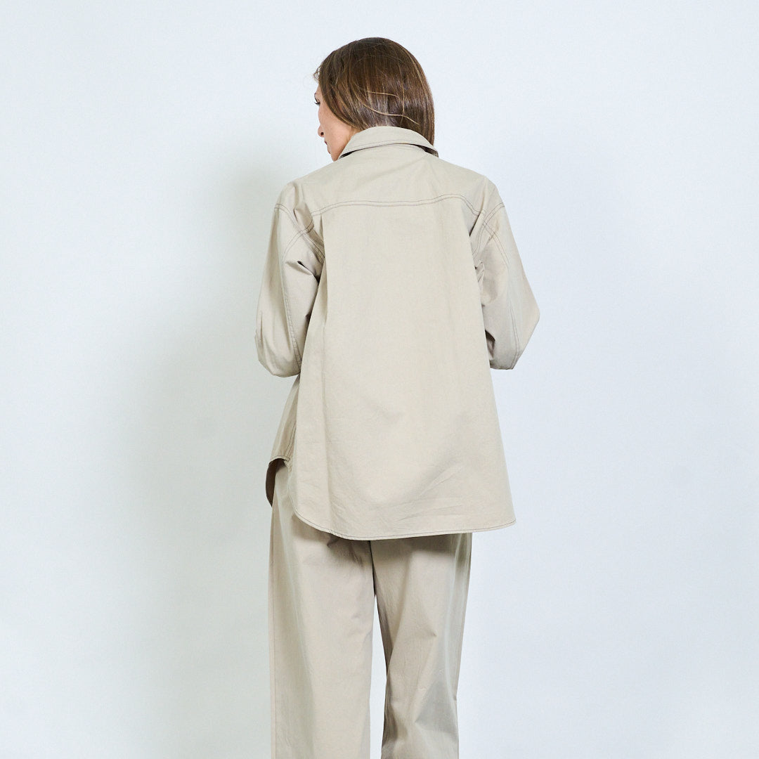 Oversized shirt met gestikte manchetten en verborgen placket groothandel