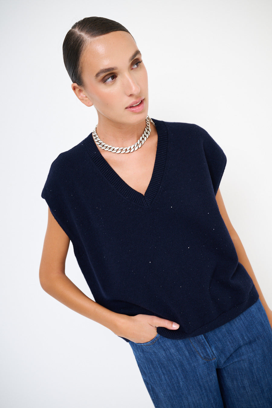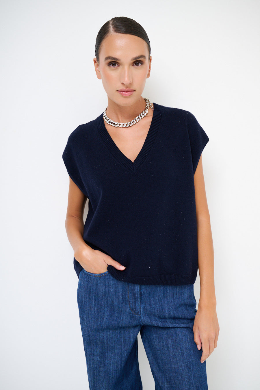 - Klassiek mouwloos vest met v-neckline