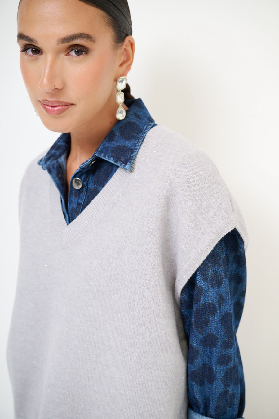 Sparkle Detail V-hals gebreide Vest Groothandel