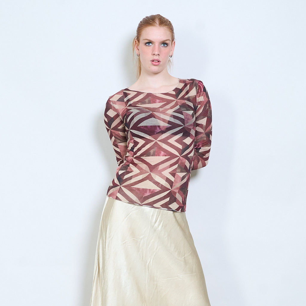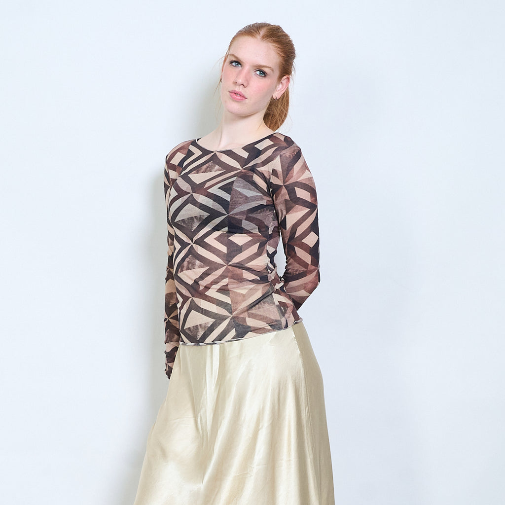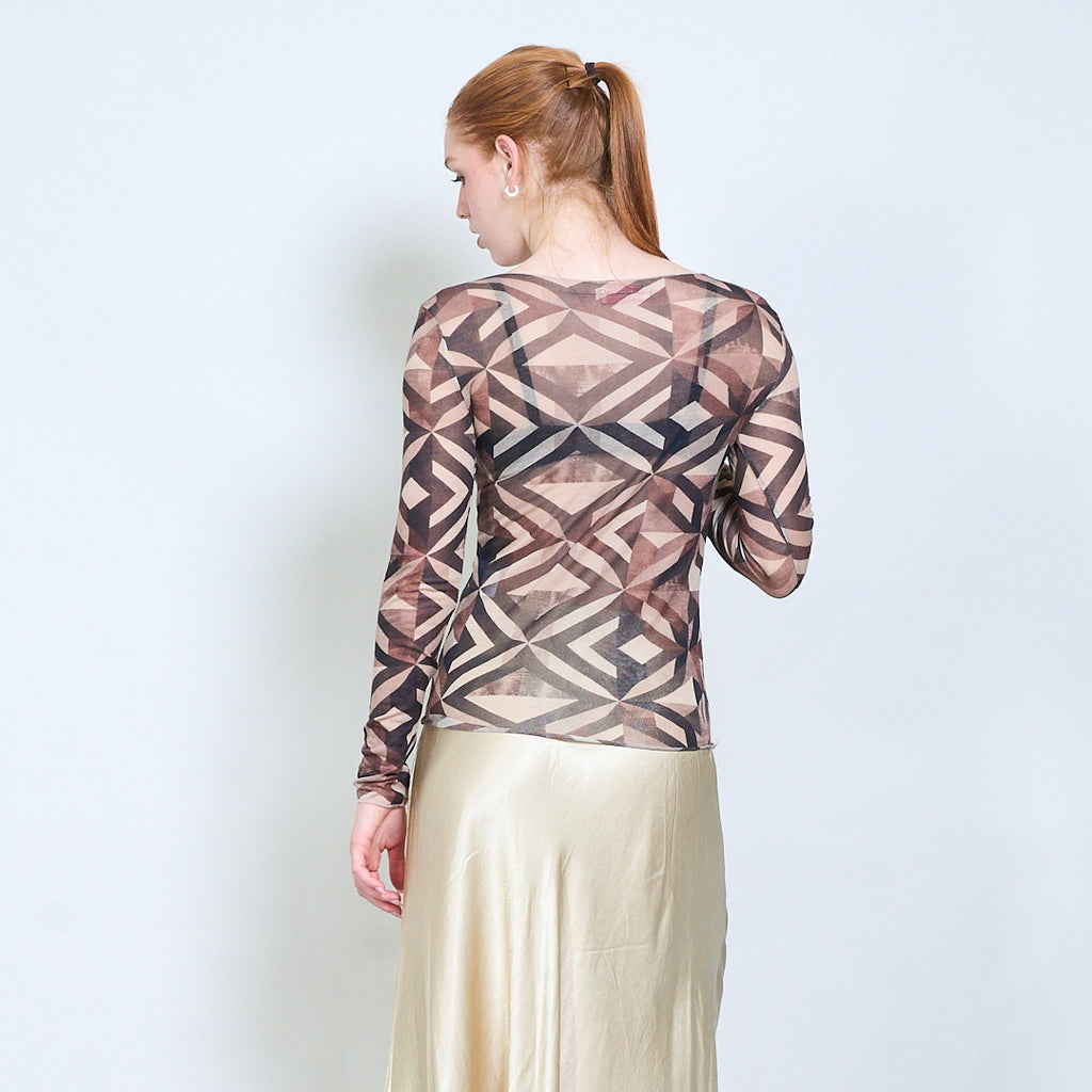 Doorschijnende getailleerde top met lange mouwen en geometrisch abstract patroon groothandel