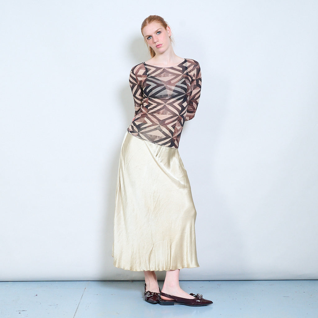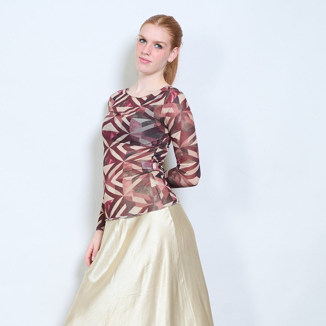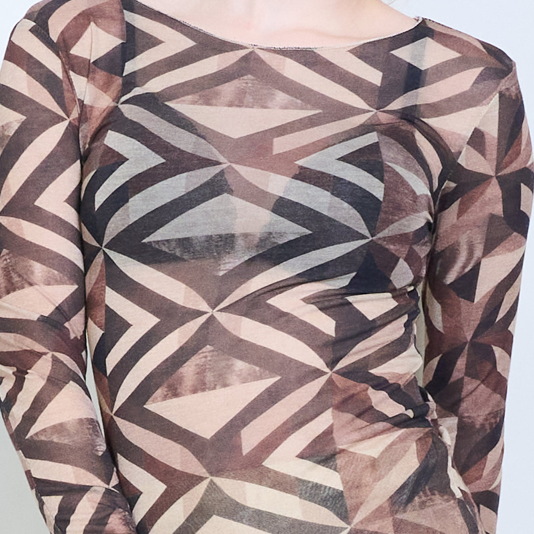 Doorschijnende getailleerde top met lange mouwen en geometrisch abstract patroon groothandel