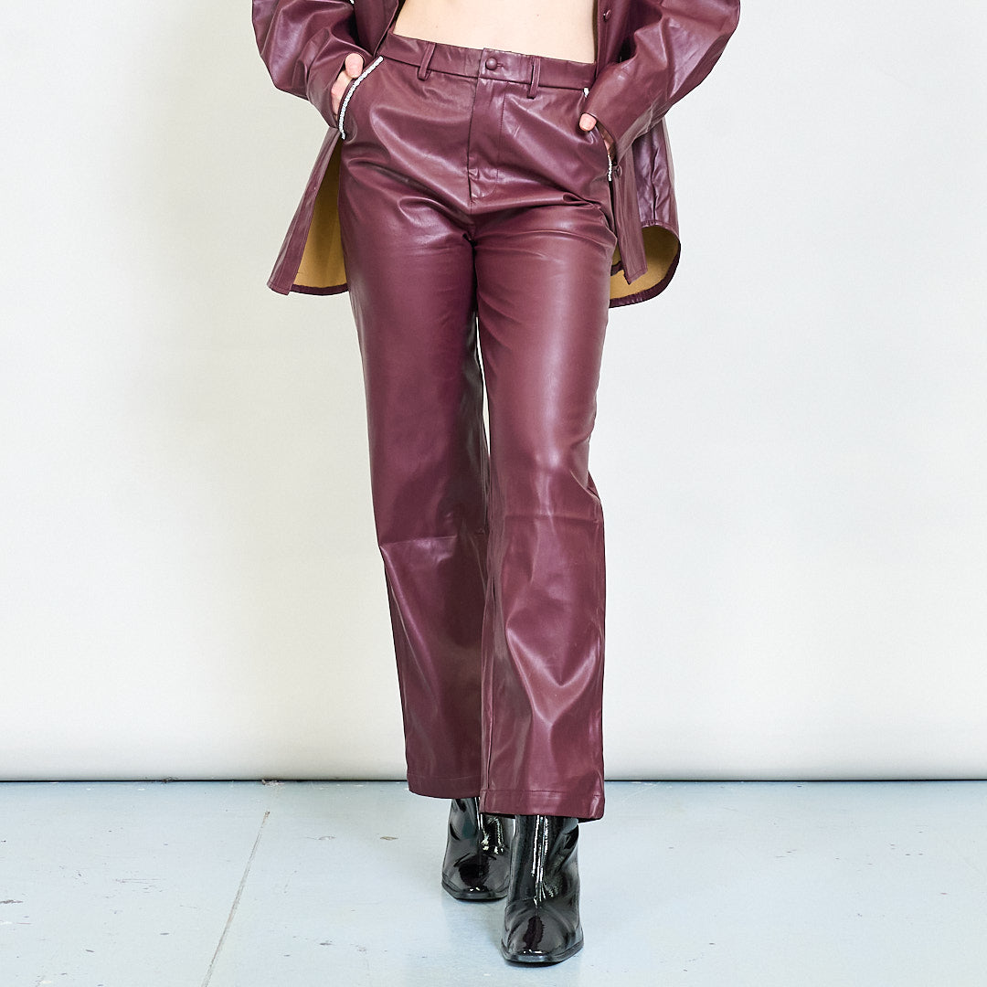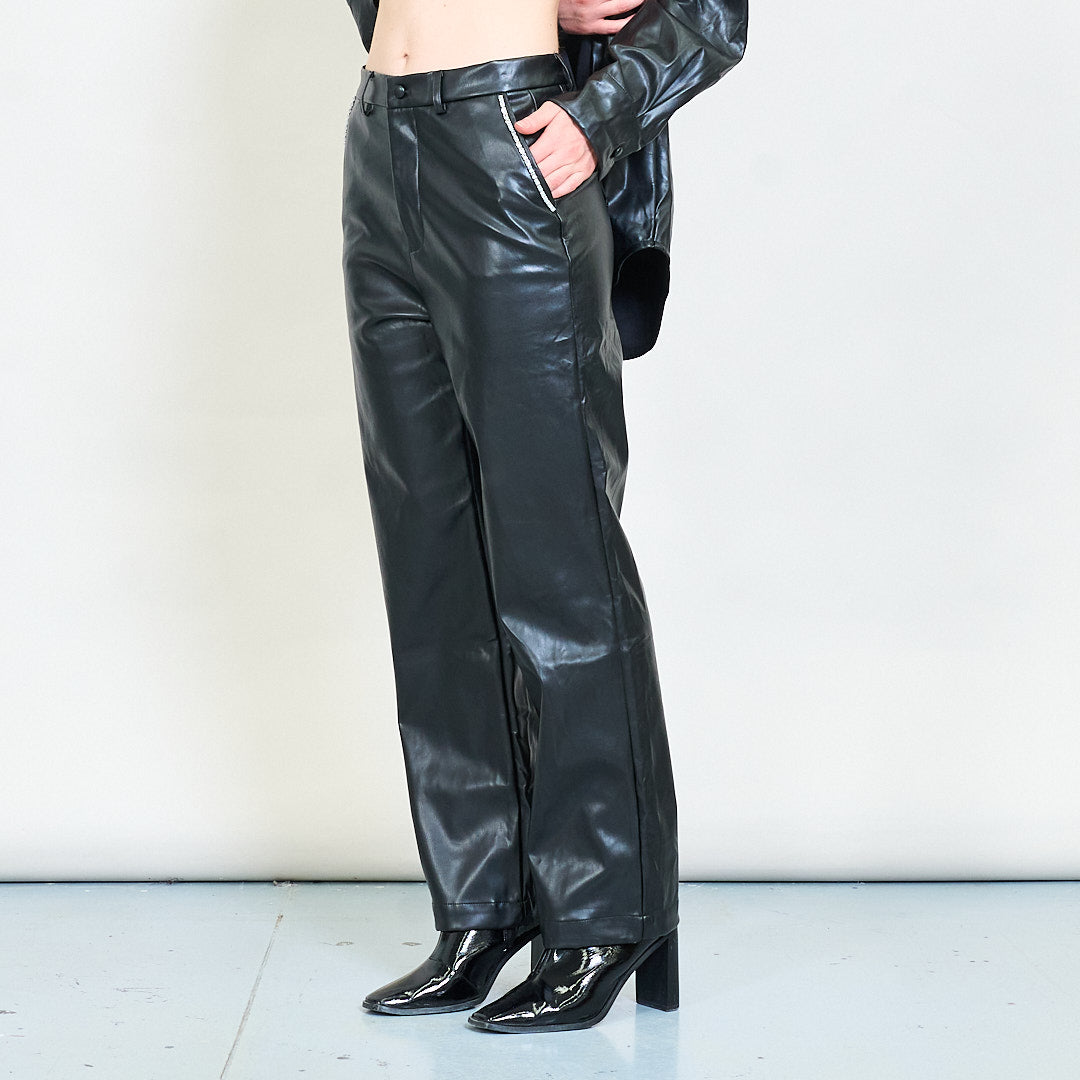 Faux lederen rechte pijbroek met strass pocket trim groothandel