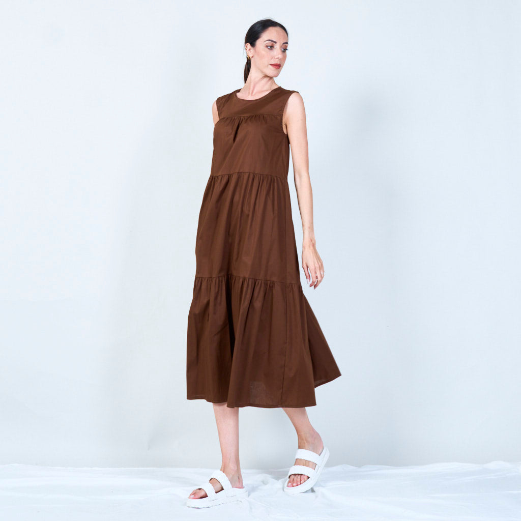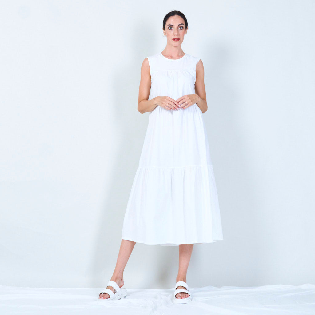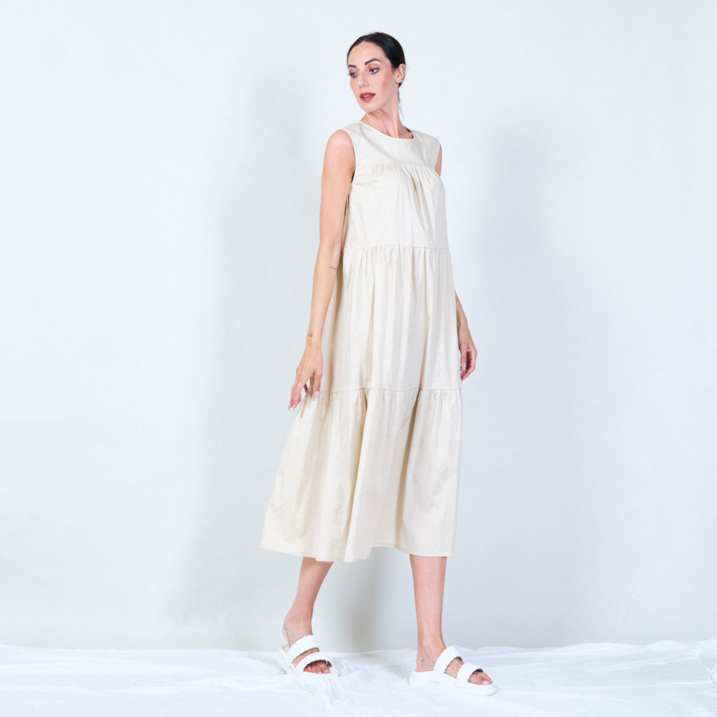 Mouwloze gelaagde jurk met achterhandel achter knop
