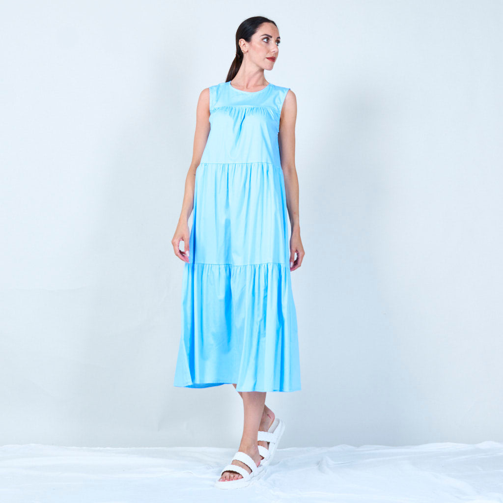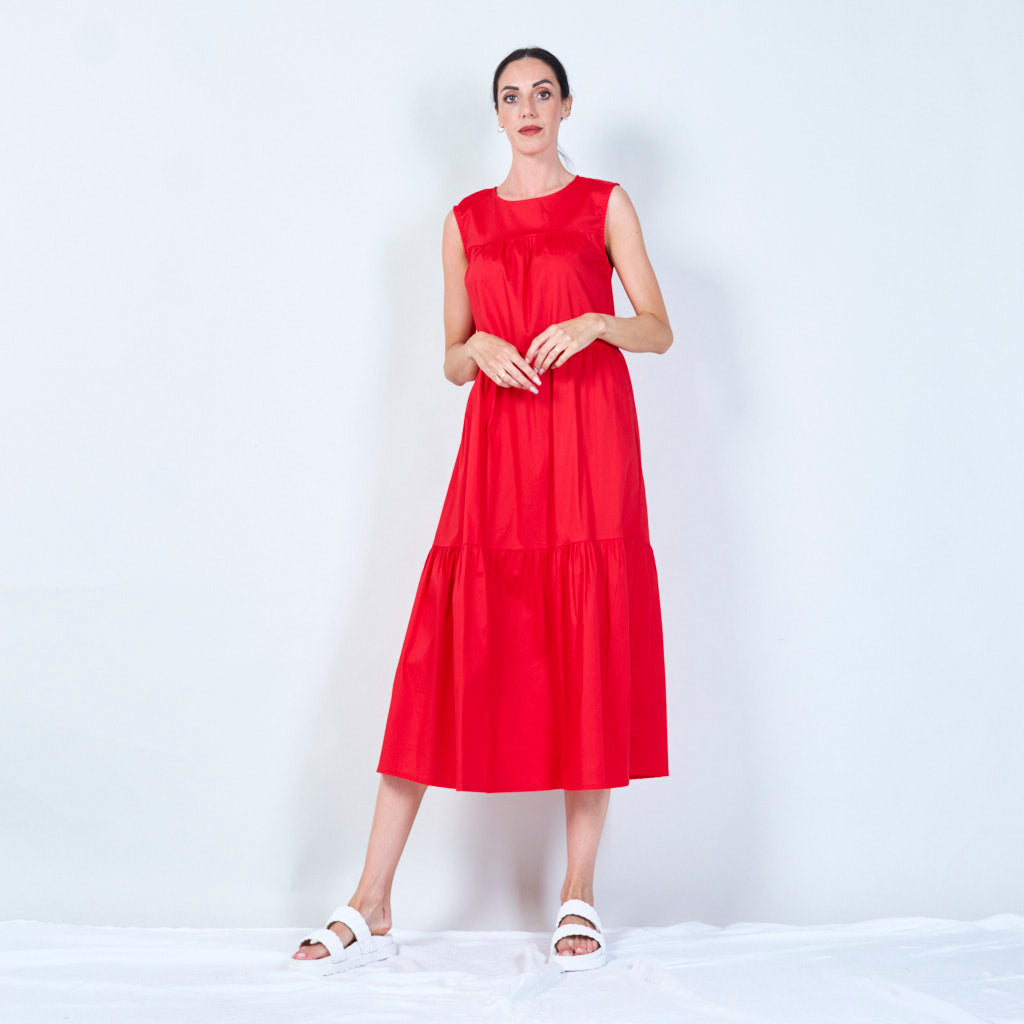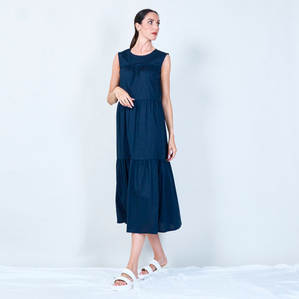 Mouwloze gelaagde jurk met achterhandel achter knop