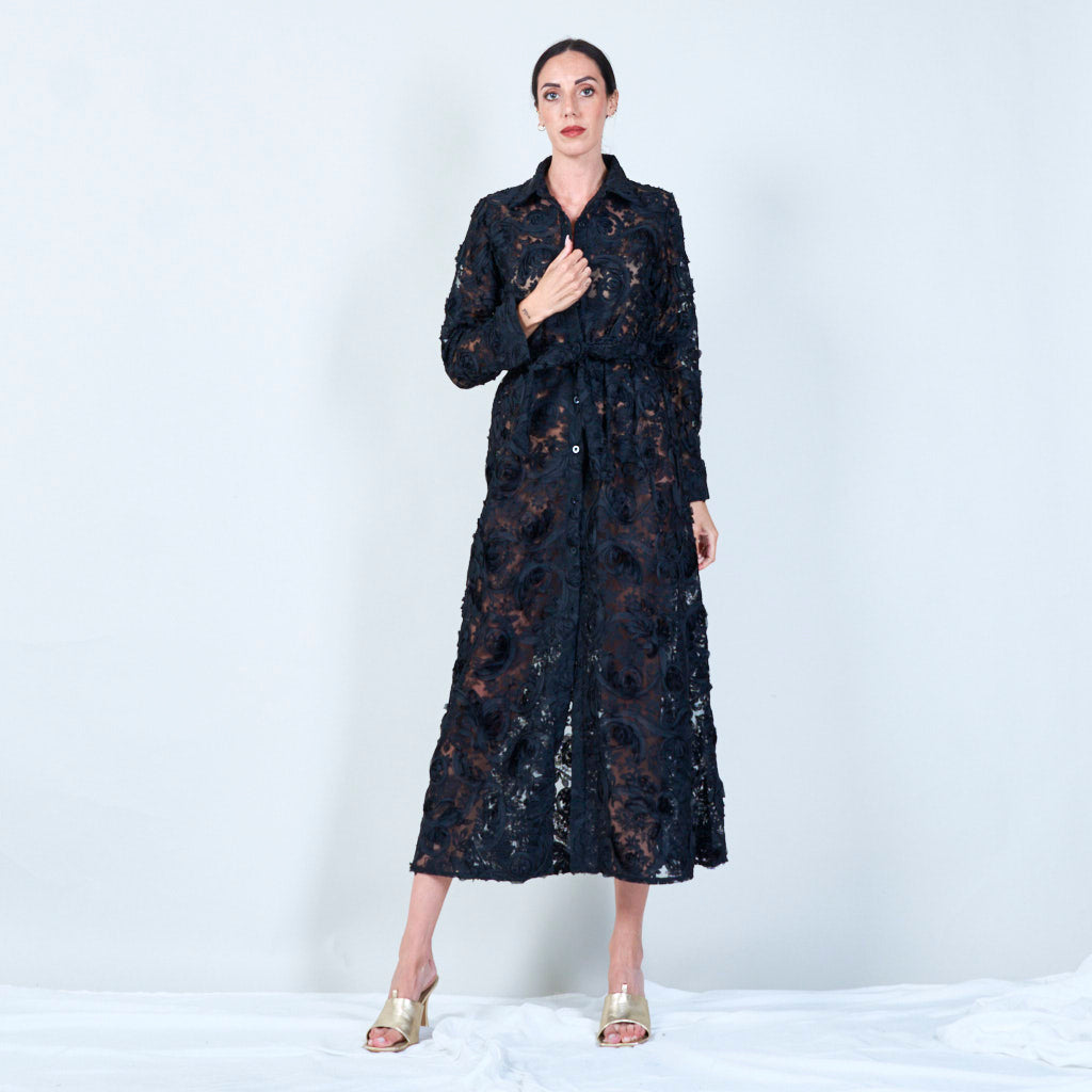 Pure jurk met lange mouwen met bloemenpatroon groothandel