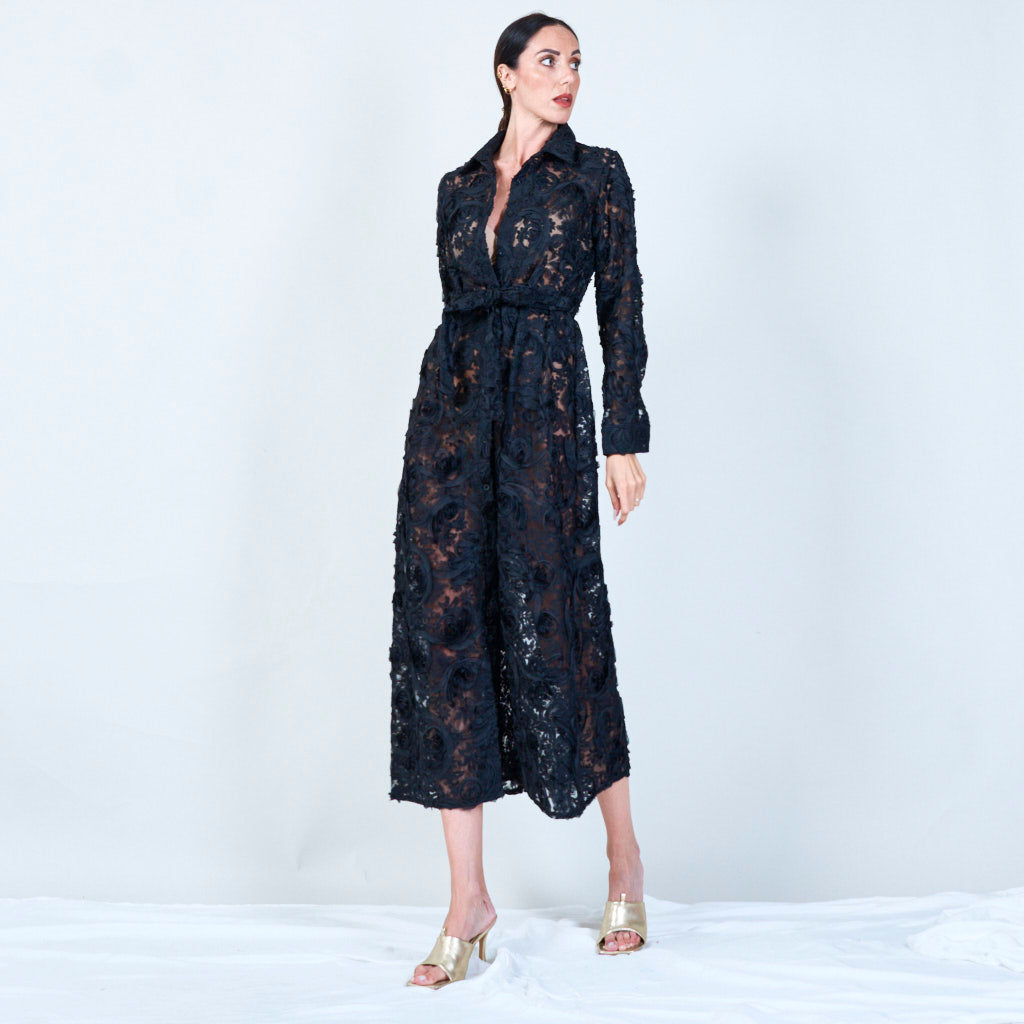 Kant-jurk met lange mouwen met bloemenpatroon groothandel