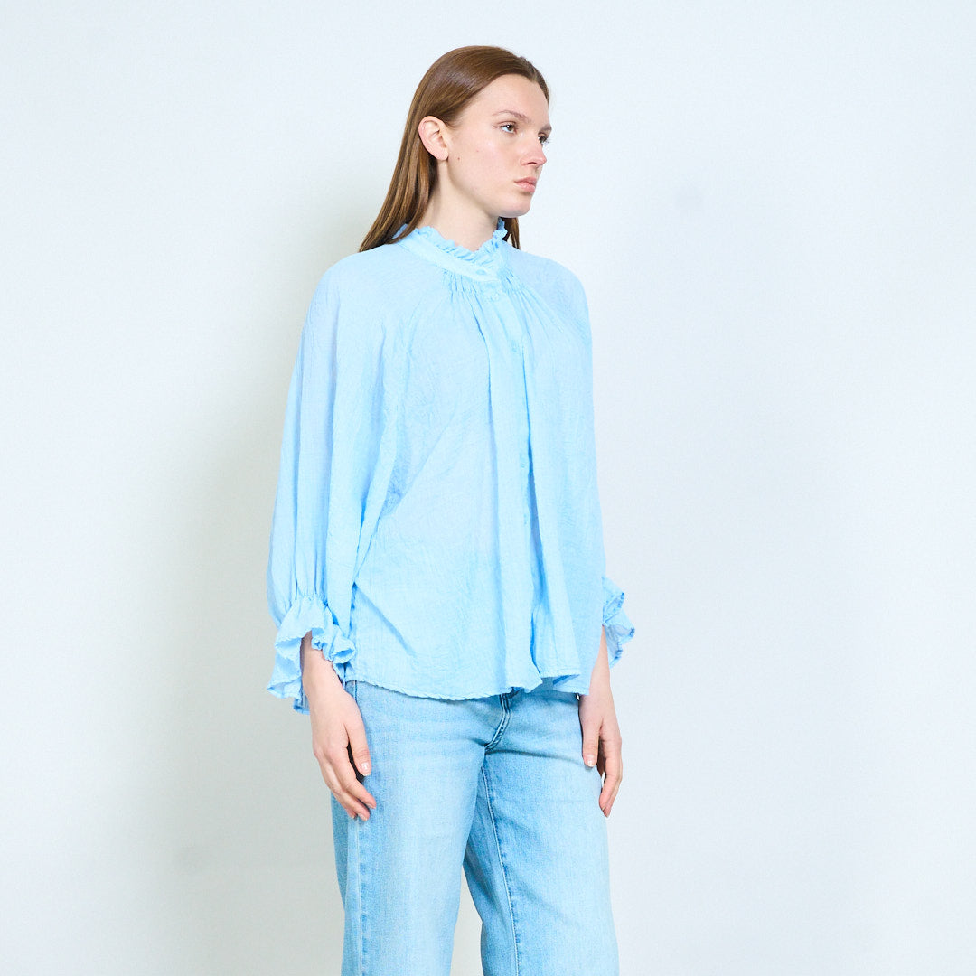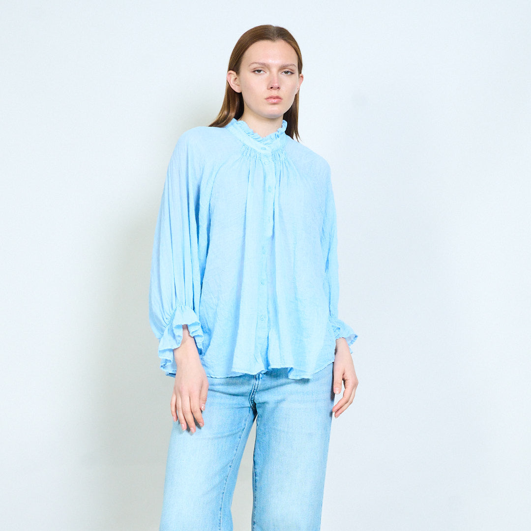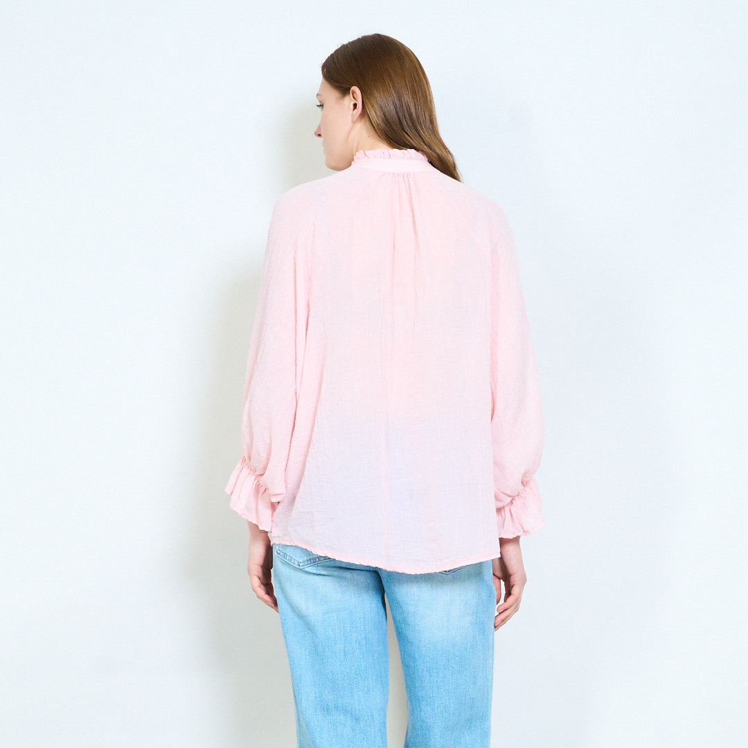 Overhemd met lichte textuur, halslijn met ruches en knoopsluiting aan de voorkant
