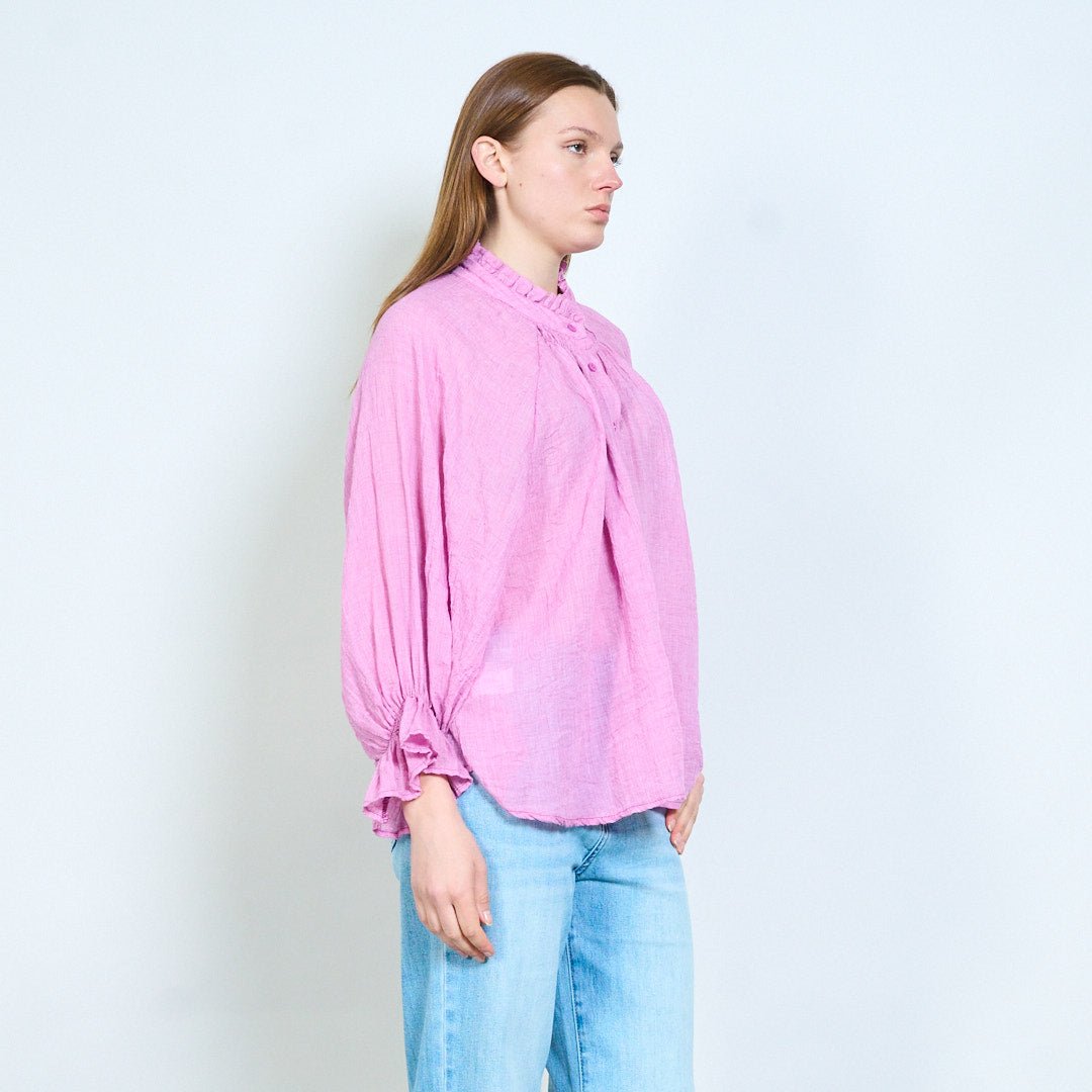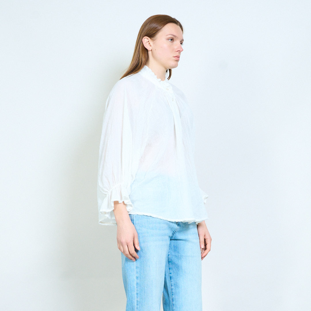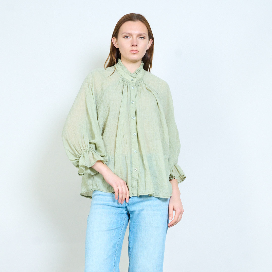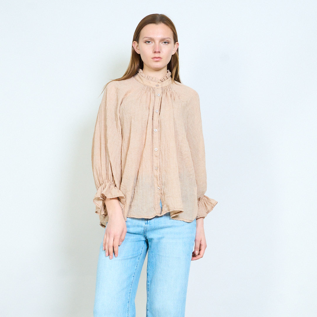 Overhemd met lichte textuur, halslijn met ruches en knoopsluiting aan de voorkant