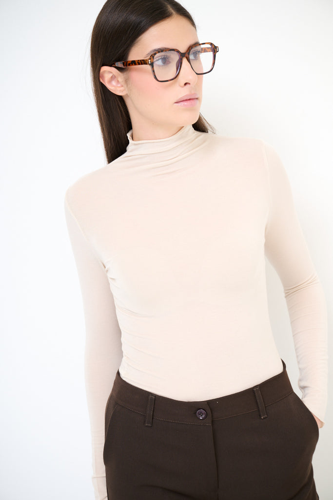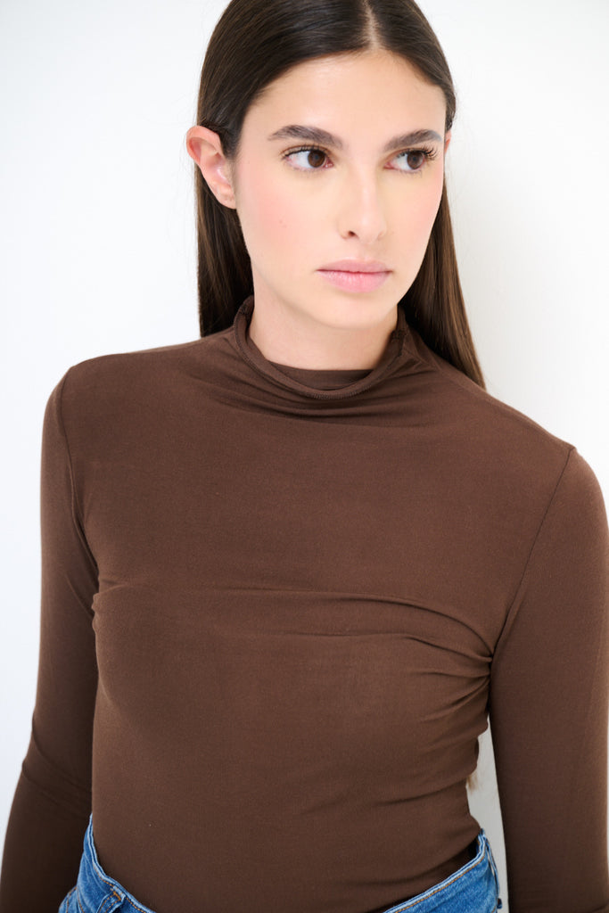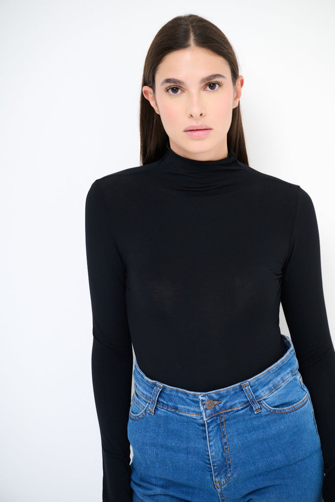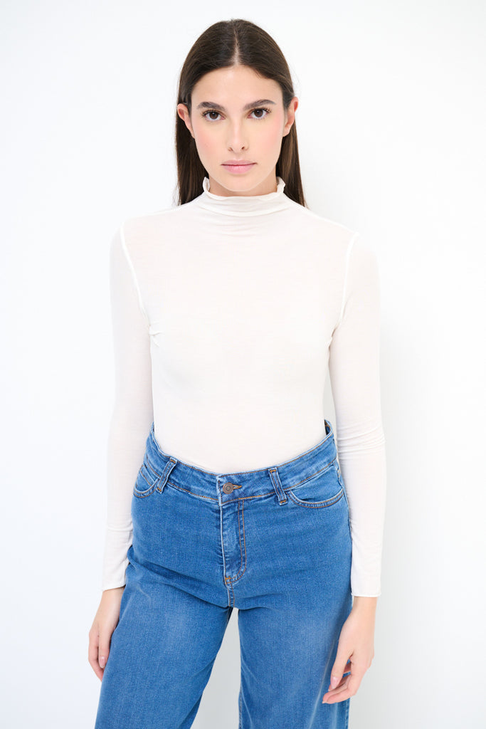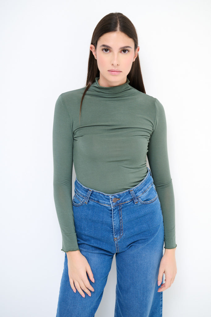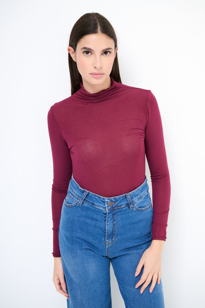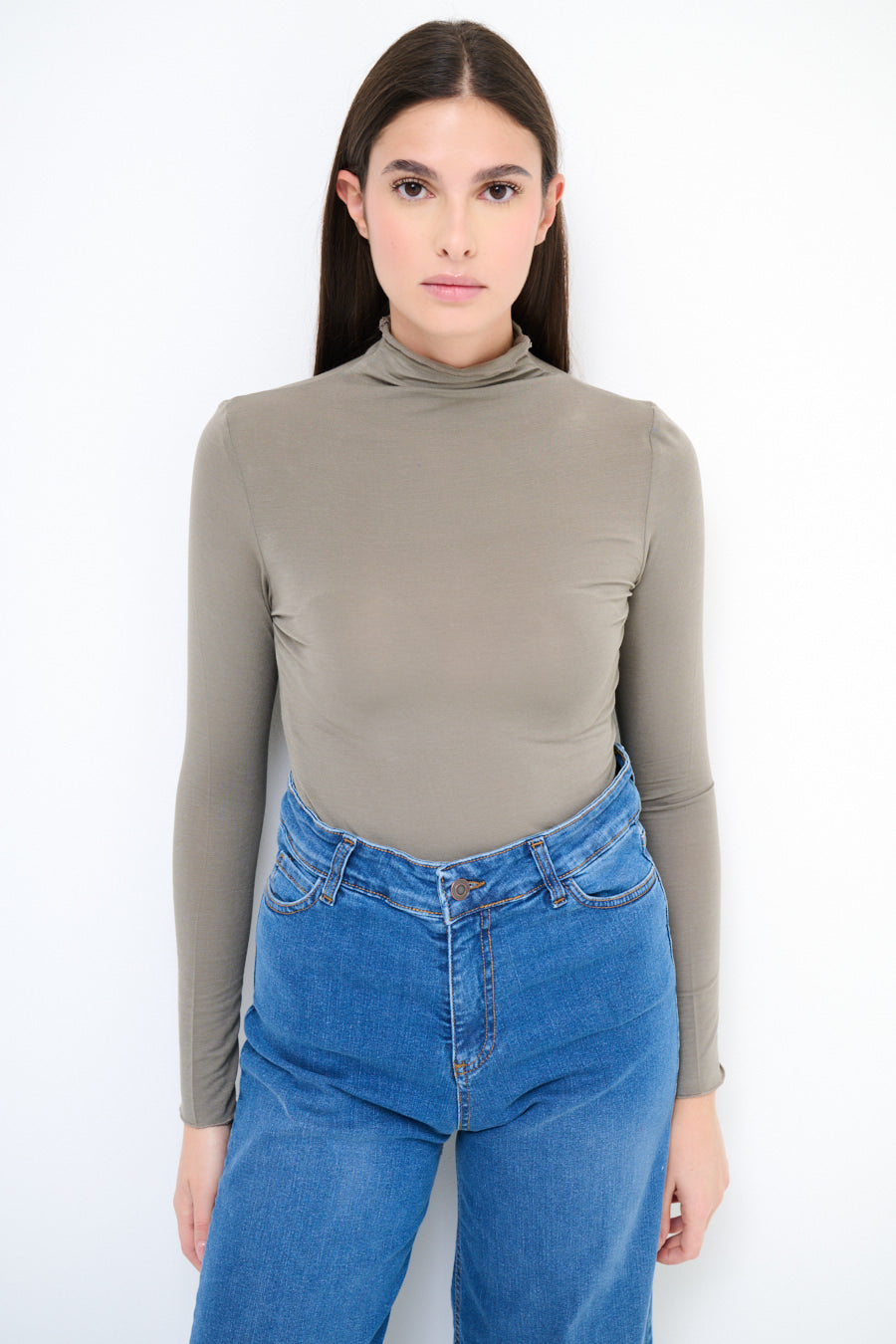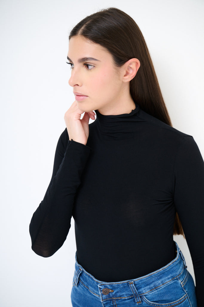 Basic stretchtop met lange mouwen en hoge hals in de groothandel
