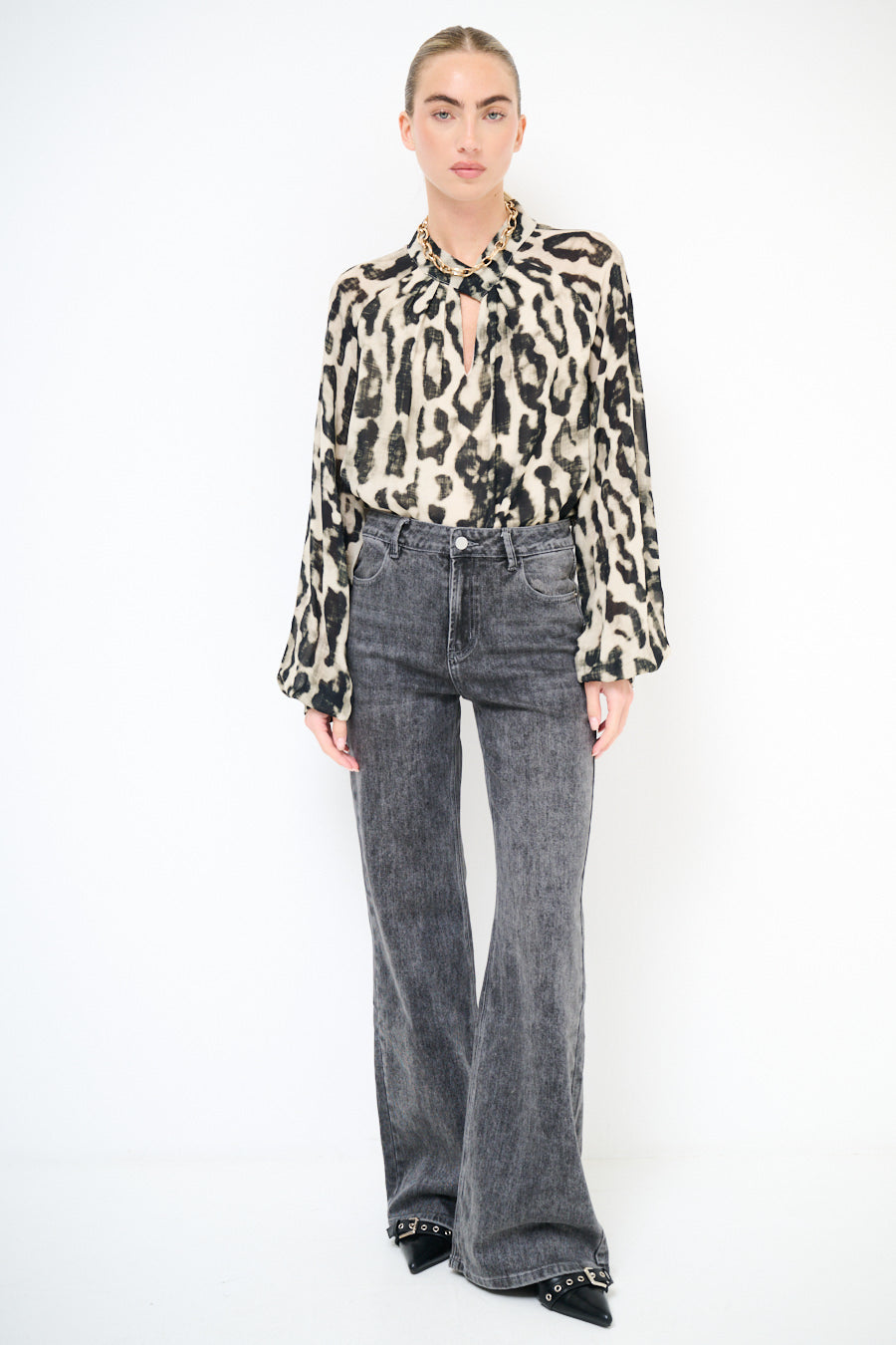 - Gestyled met een hoge taille die een flatterend en langwerpig silhouet versterkt