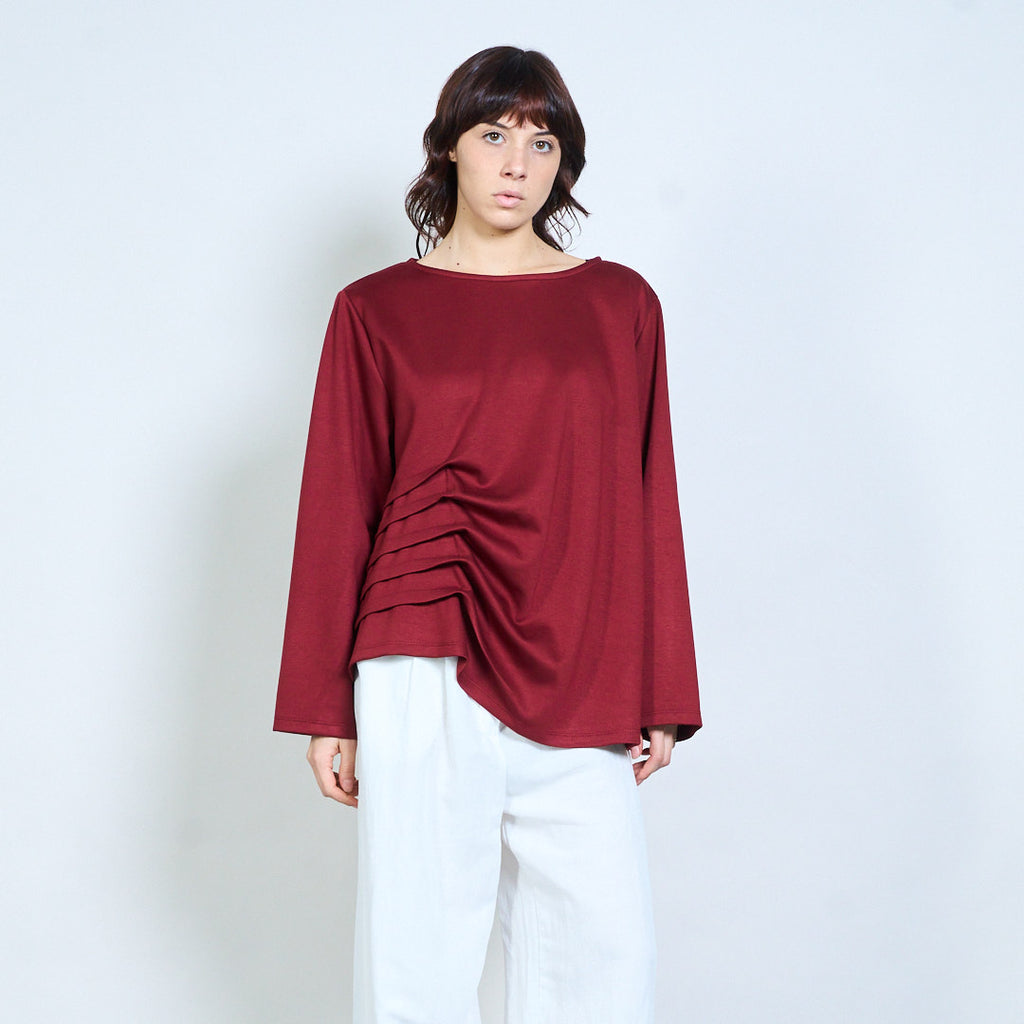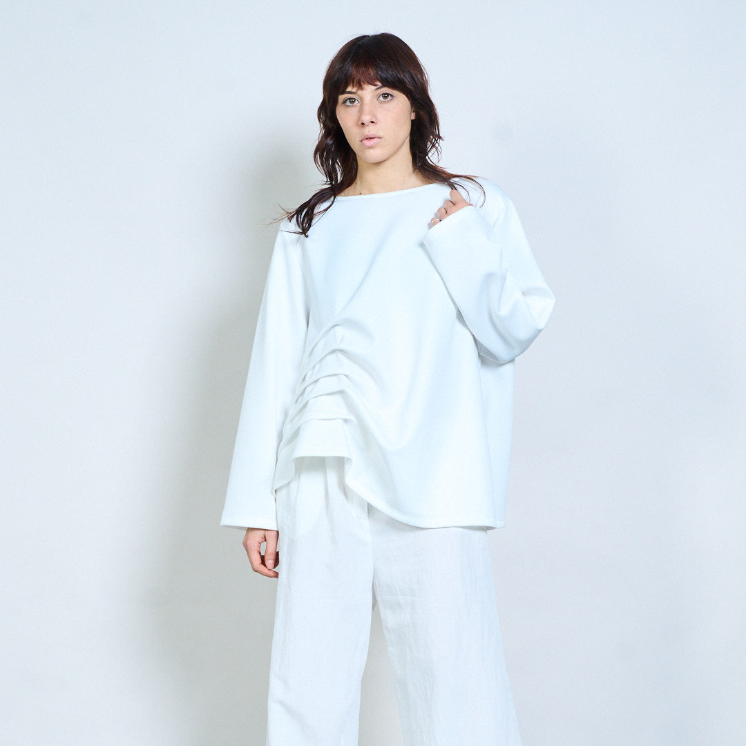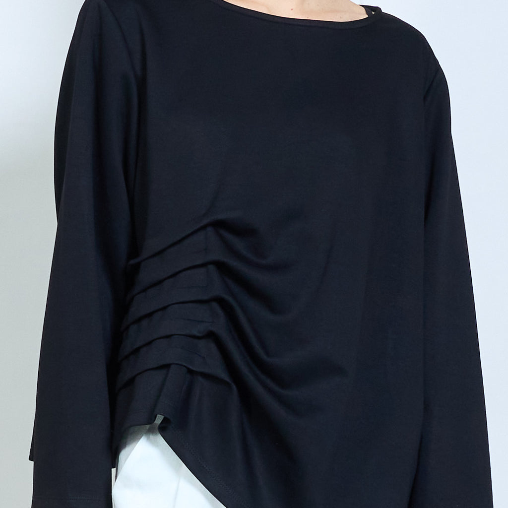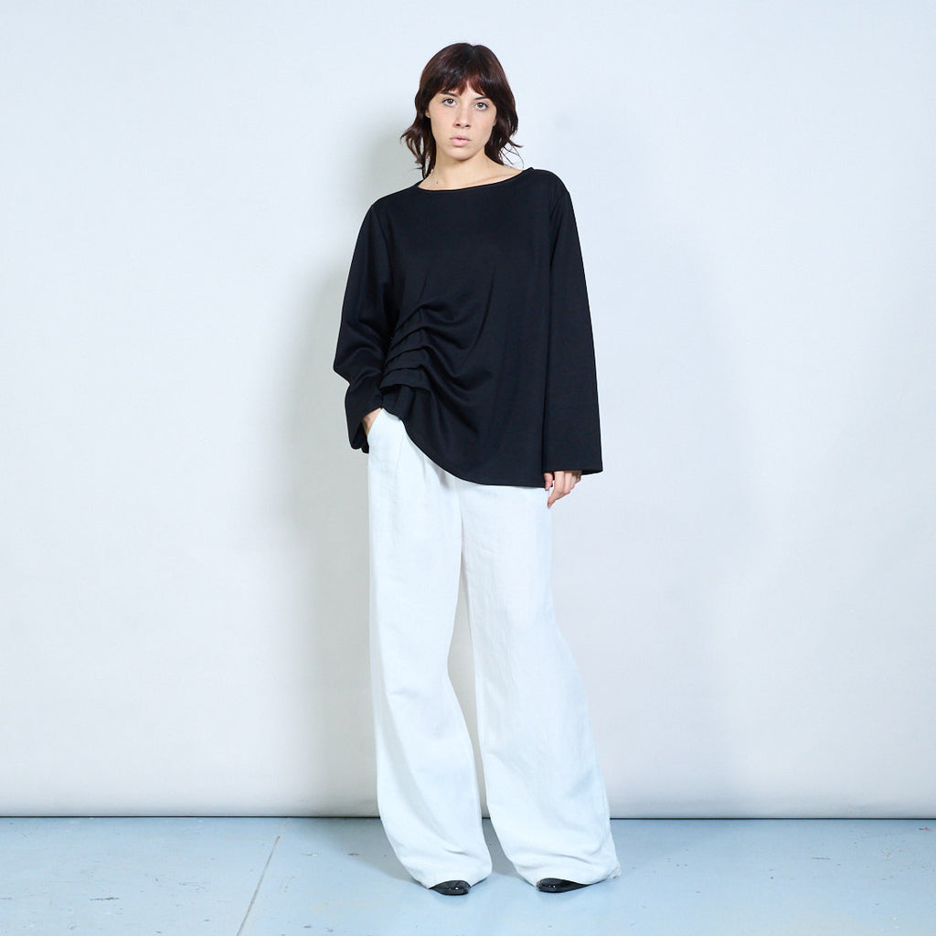 Geplooide, ontspannen gedrapeerde top met lange mouwen en plooien aan de zijkant, groothandel
