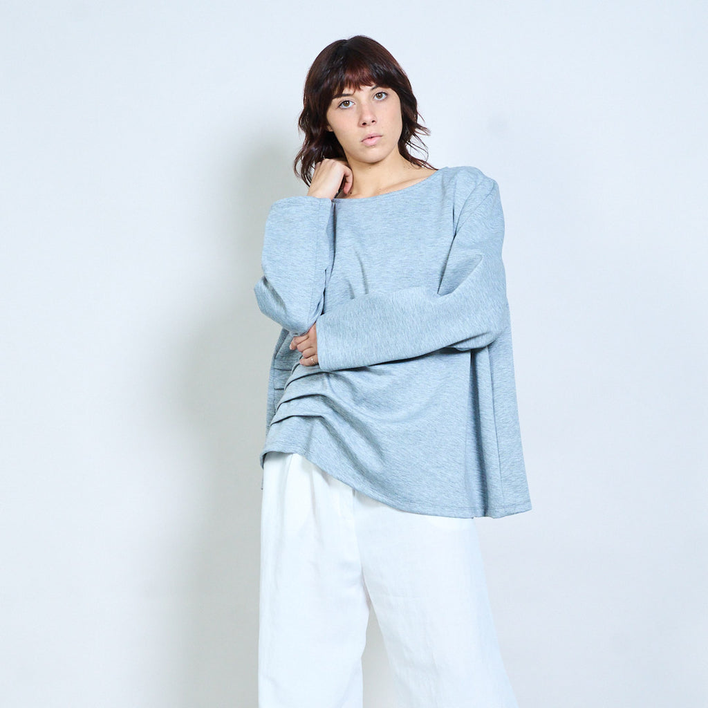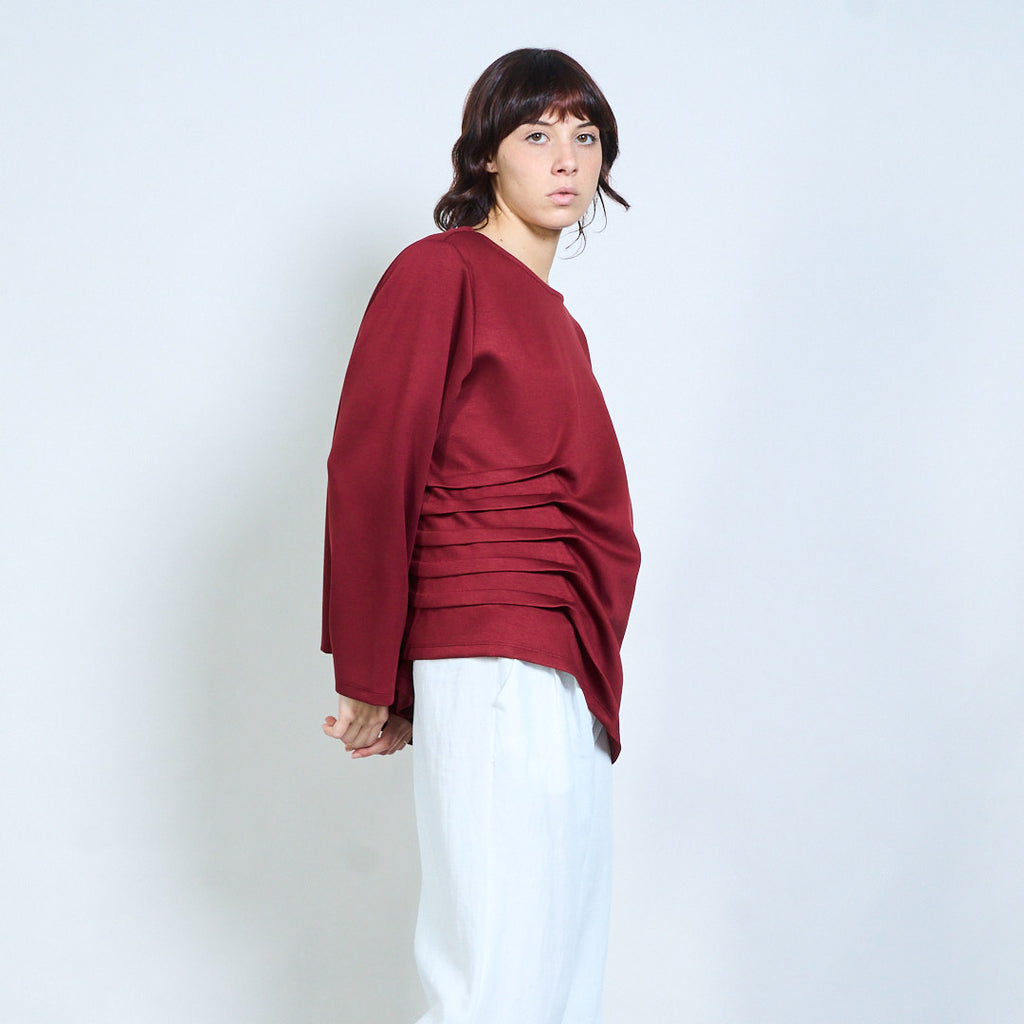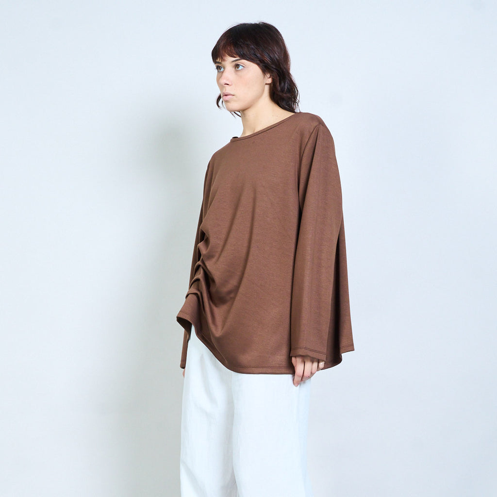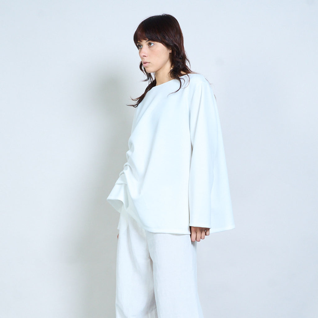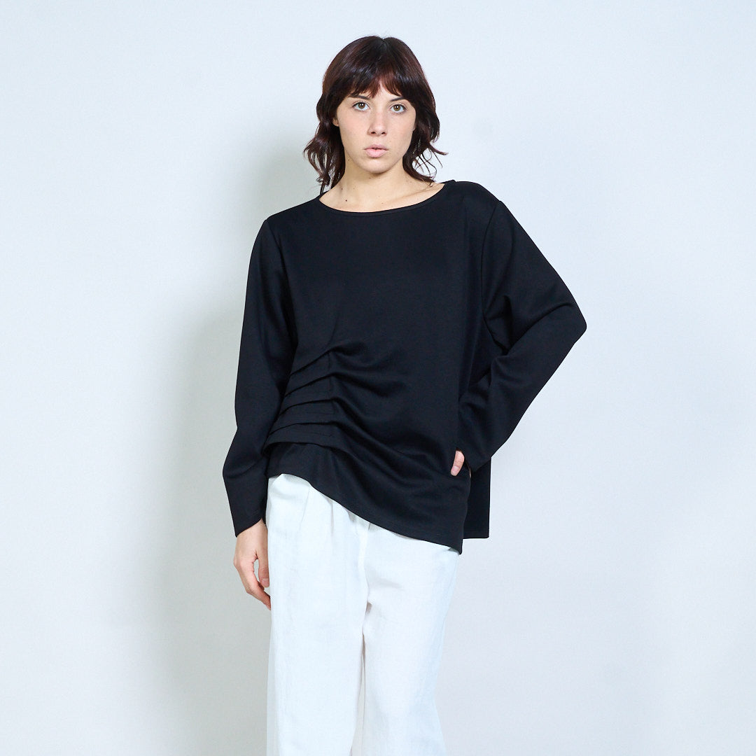 Geplooide, ontspannen gedrapeerde top met lange mouwen en plooien aan de zijkant, groothandel