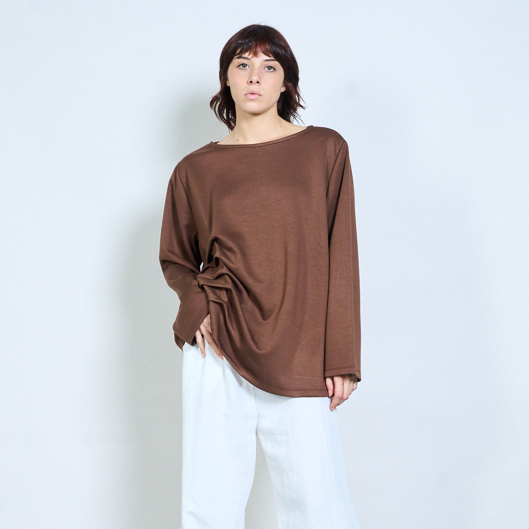 - De brede ronde halslijn houdt de look strak en veelzijdig