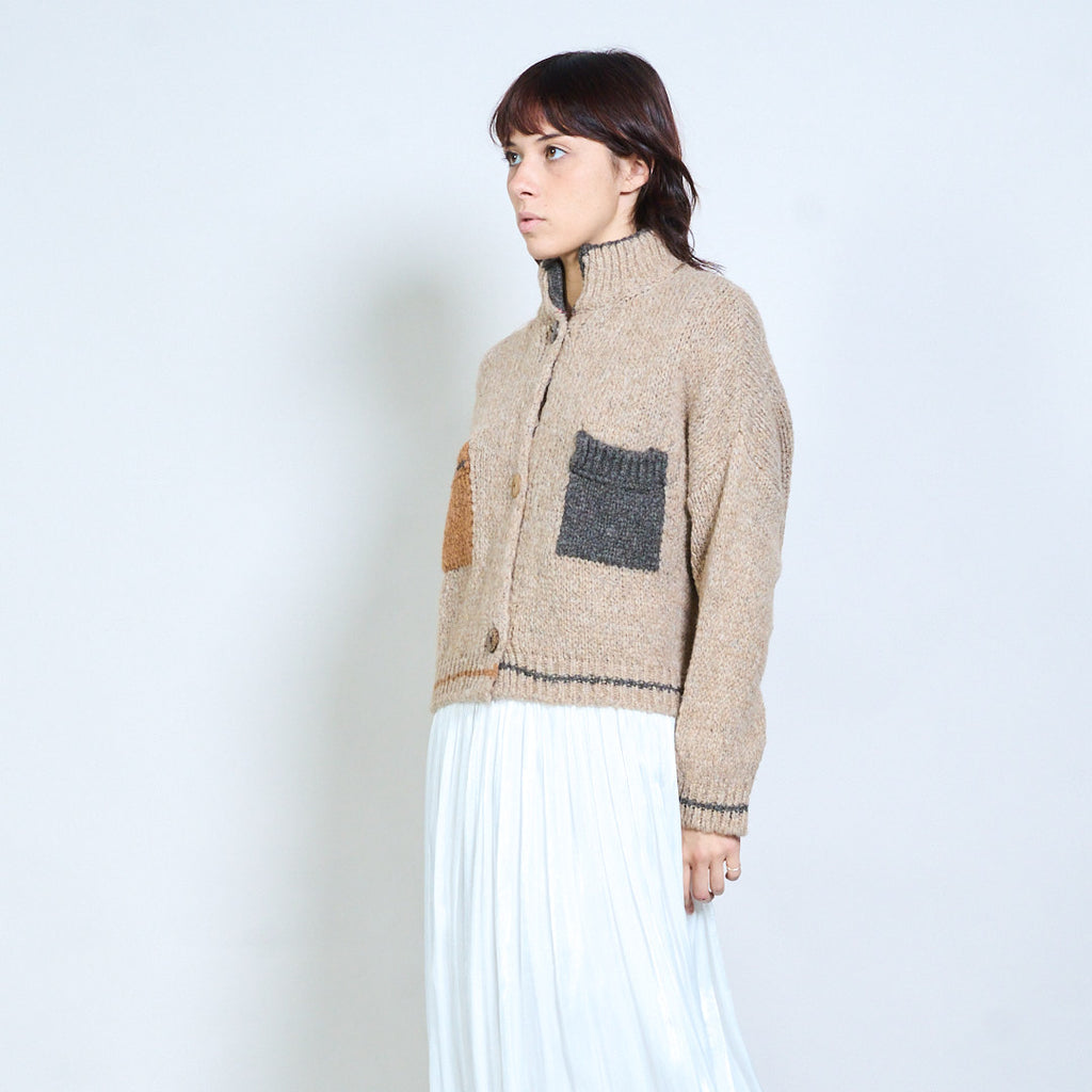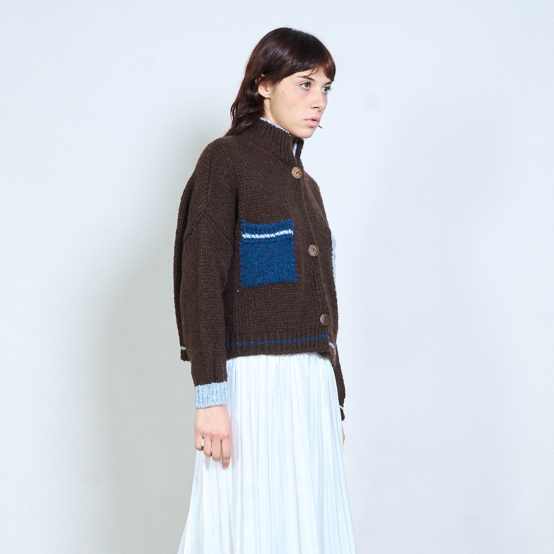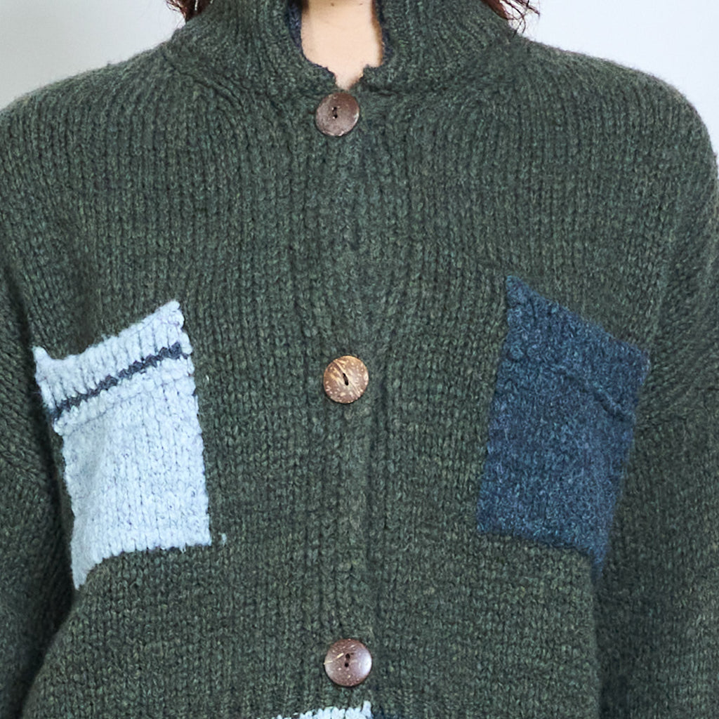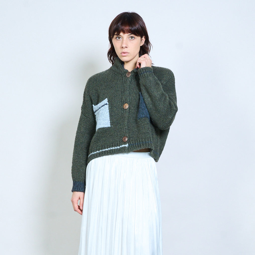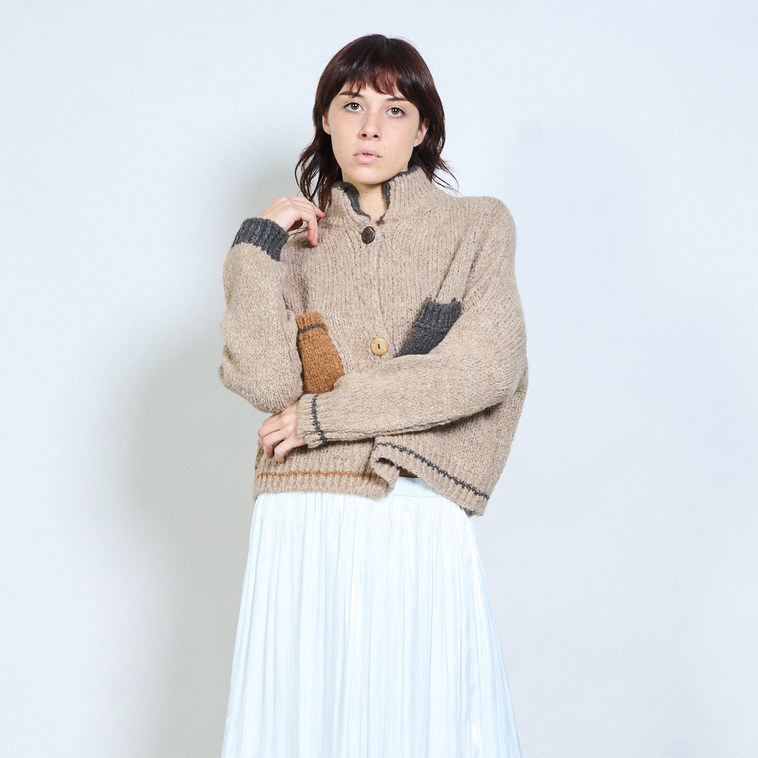 Geruit gebreid vest met blokdetail, gebreid met knopen, groothandel