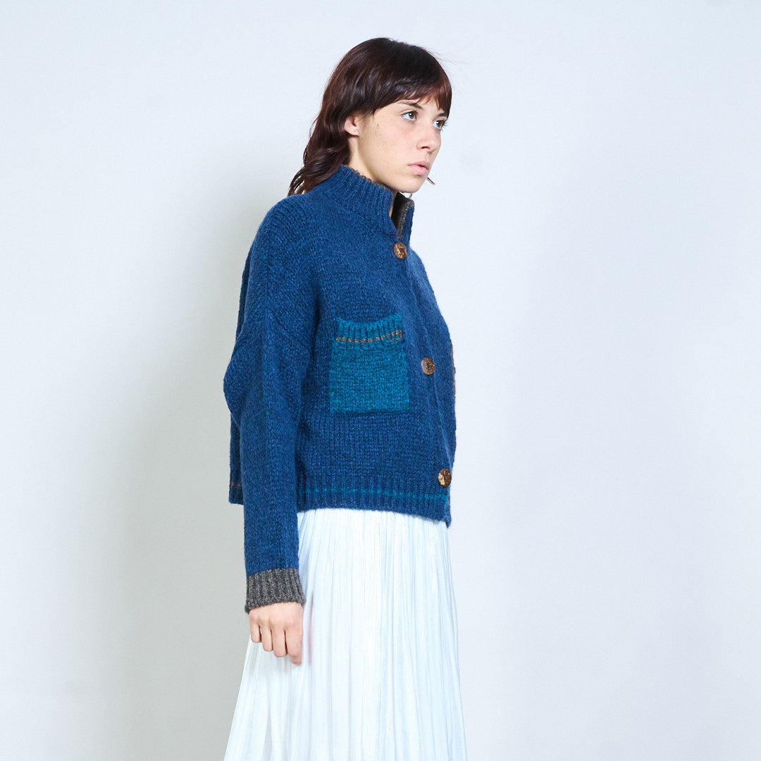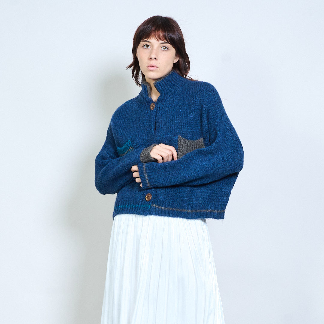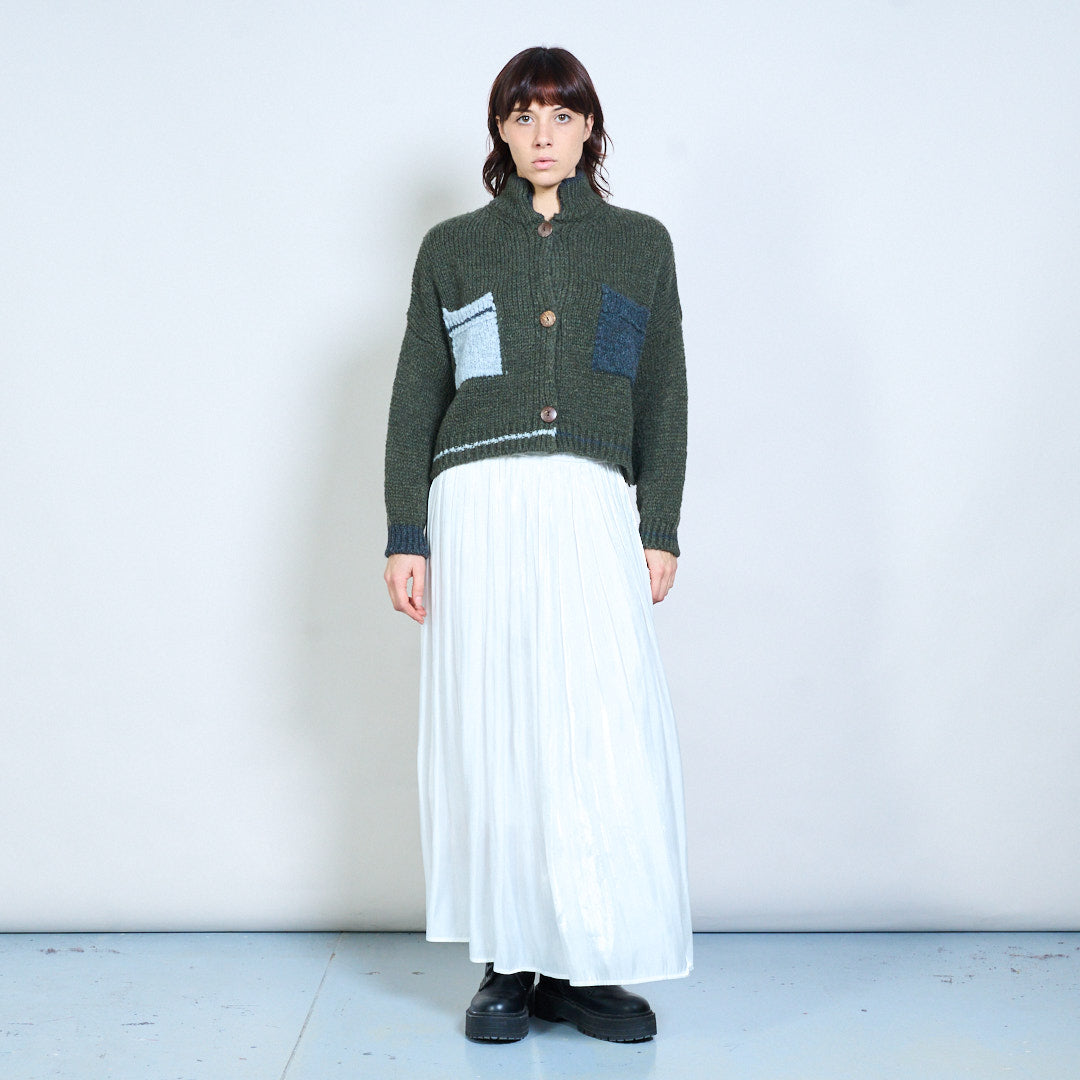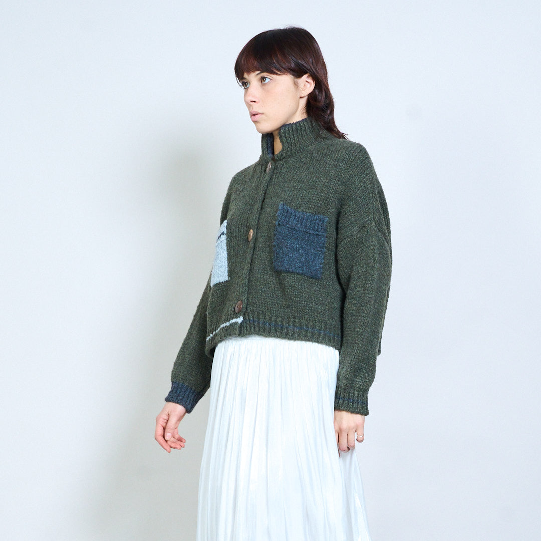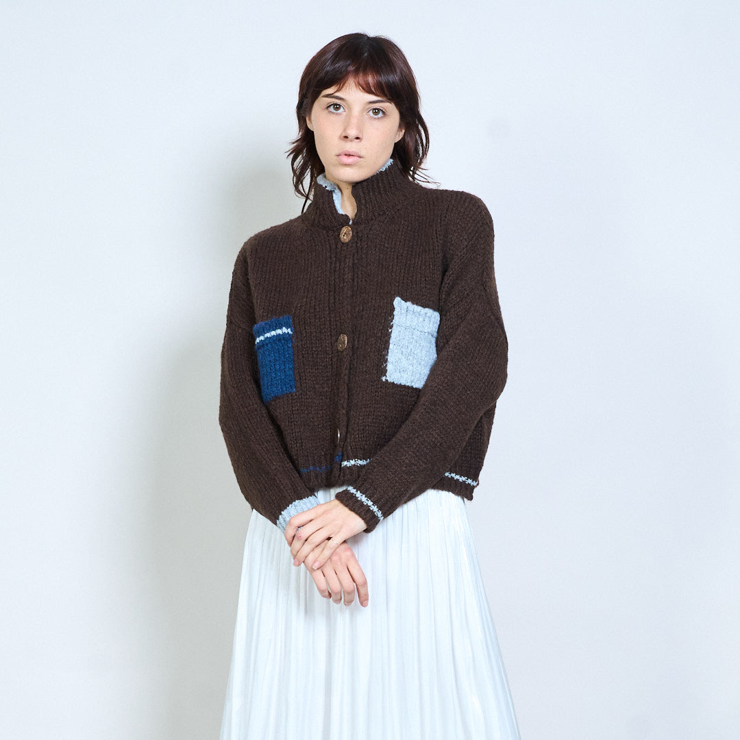 Geruit gebreid vest met blokdetail, gebreid met knopen, groothandel