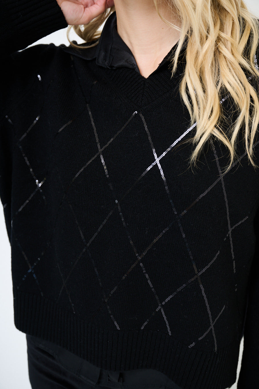 - De V-halslijn geeft een flatterend en veelzijdig tintje aan het silhouet