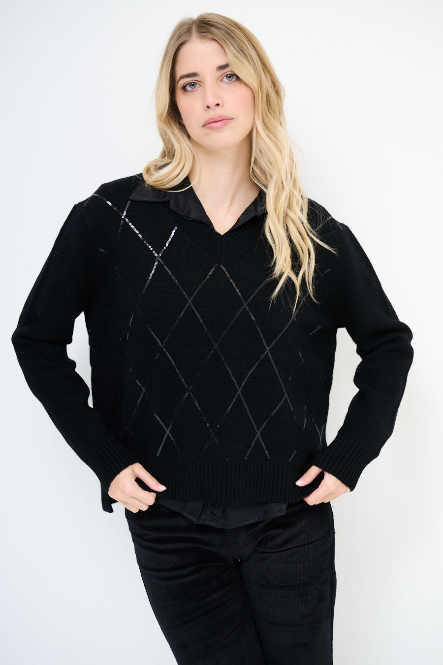 - Klassiek gebreid vest met elegant geruit gestikt patroonontwerp