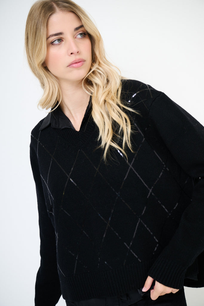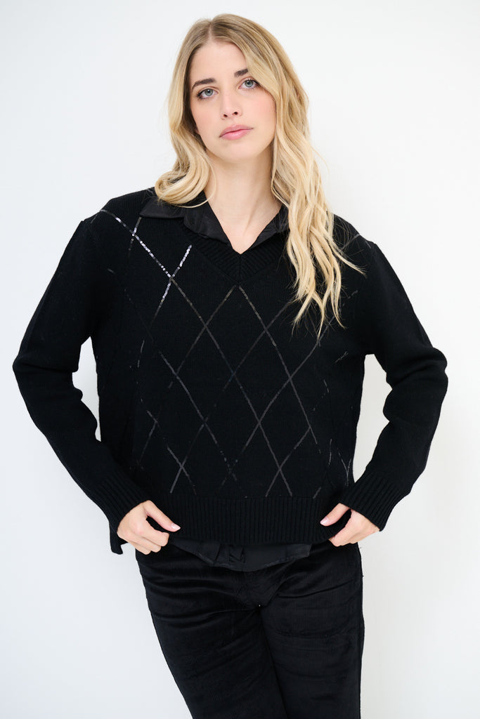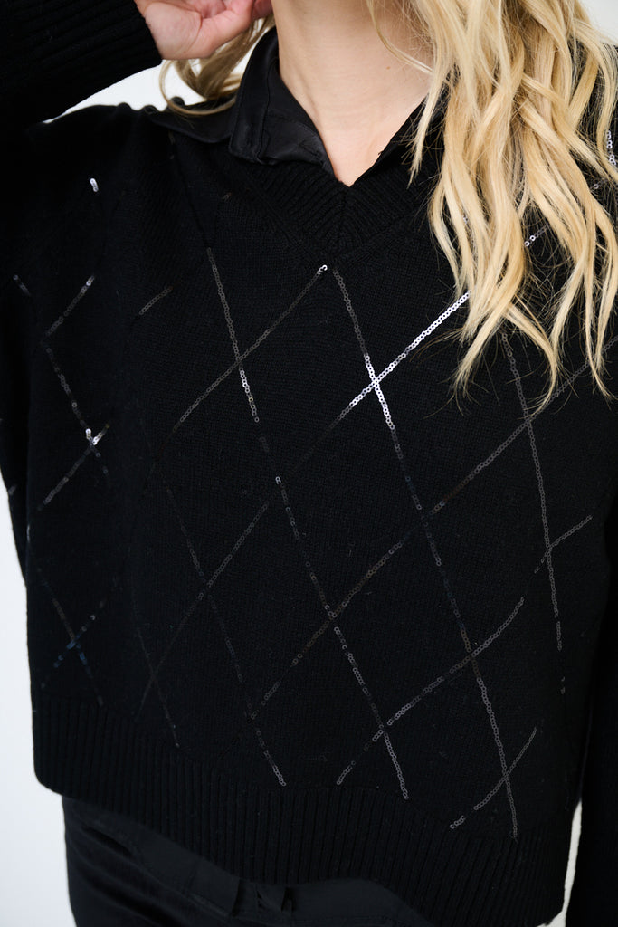 Geruite gebreide trui met v-hals, groothandel