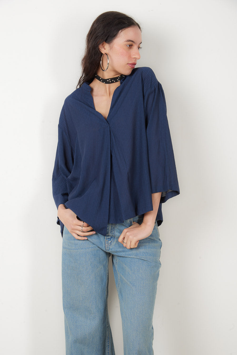 - Driekwart wijde mouwen voor een relaxed silhouet