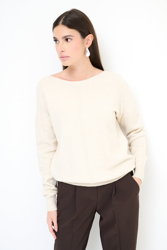 Groothandel in ontspannen gebreide trui met boothals en voornaad