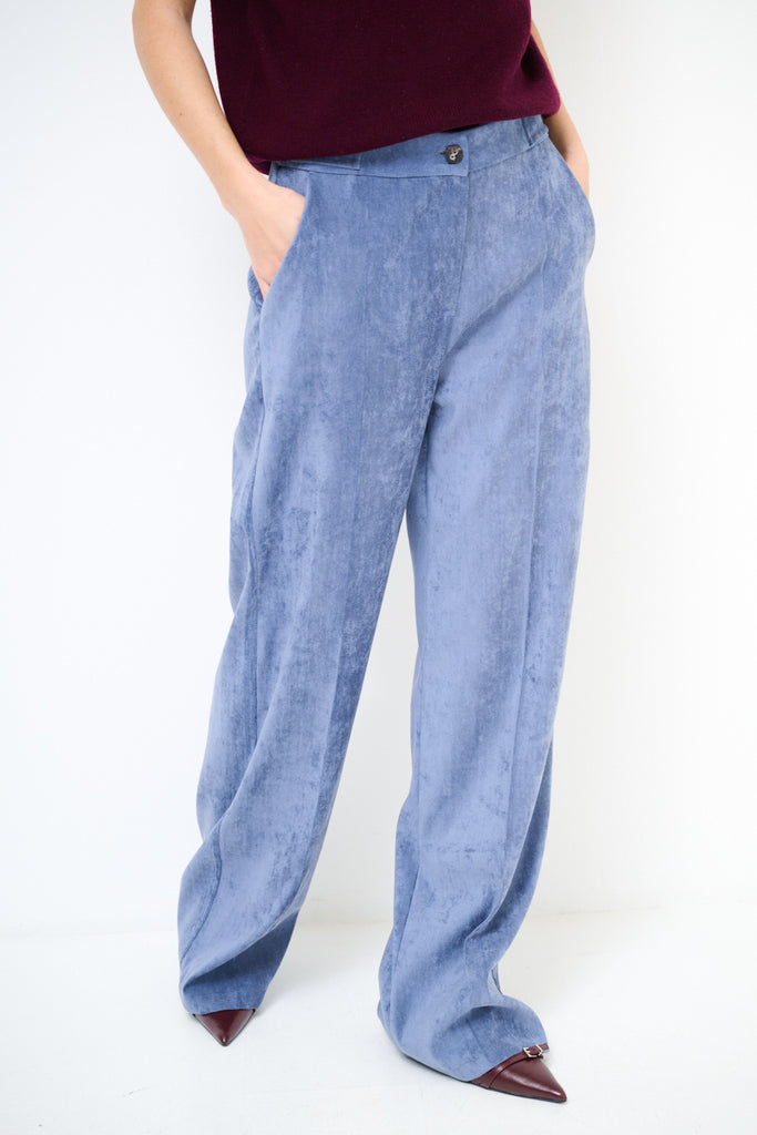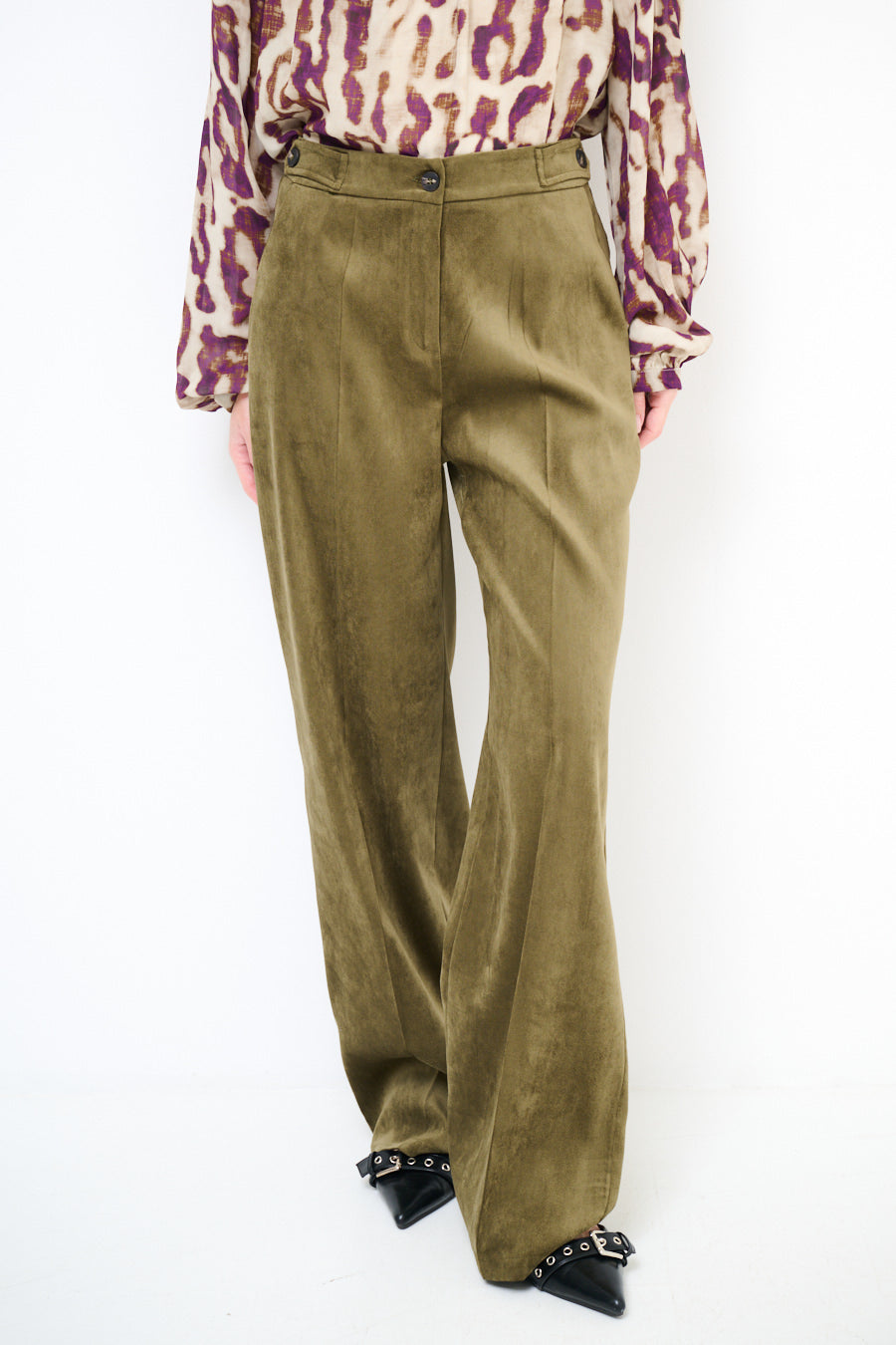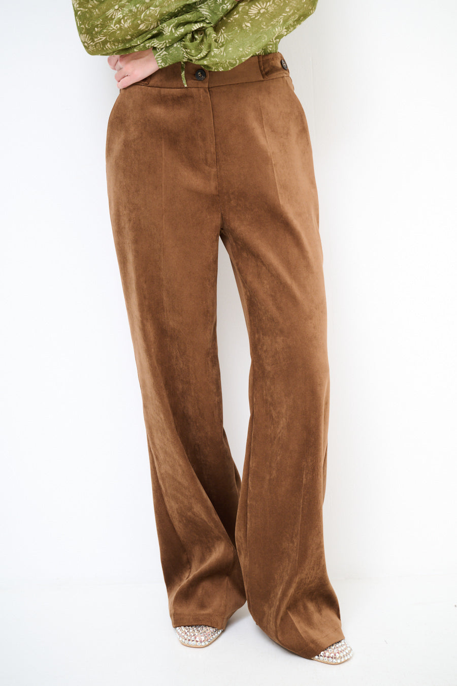 - Getailleerde broek met een gladde suède-achtige afwerking